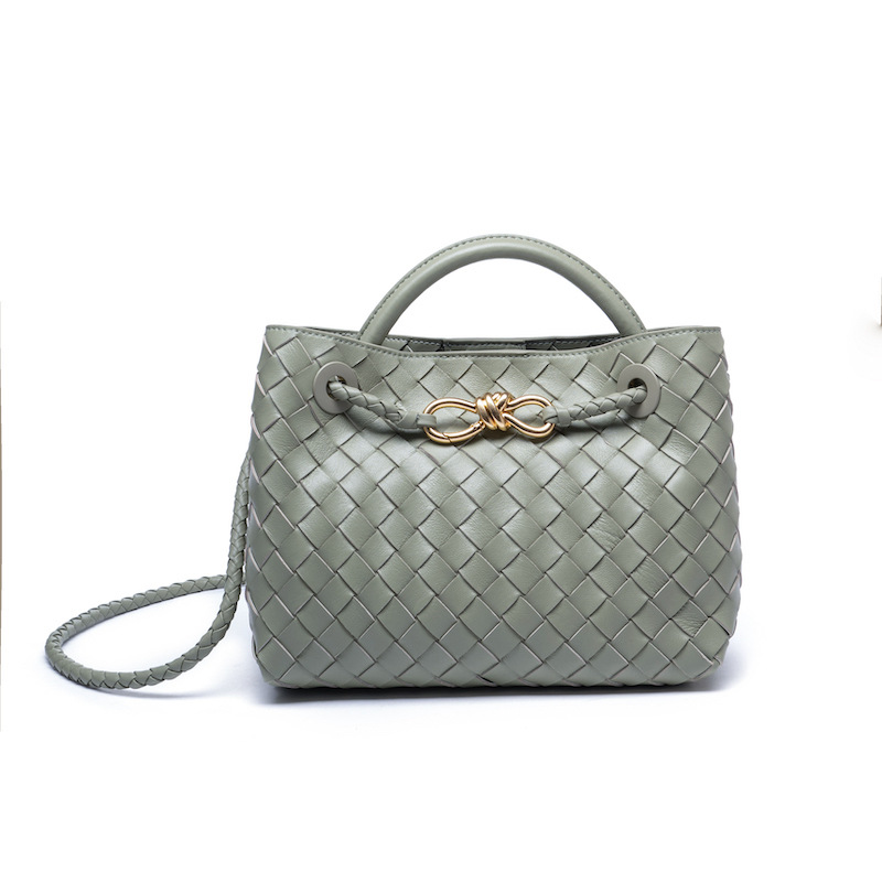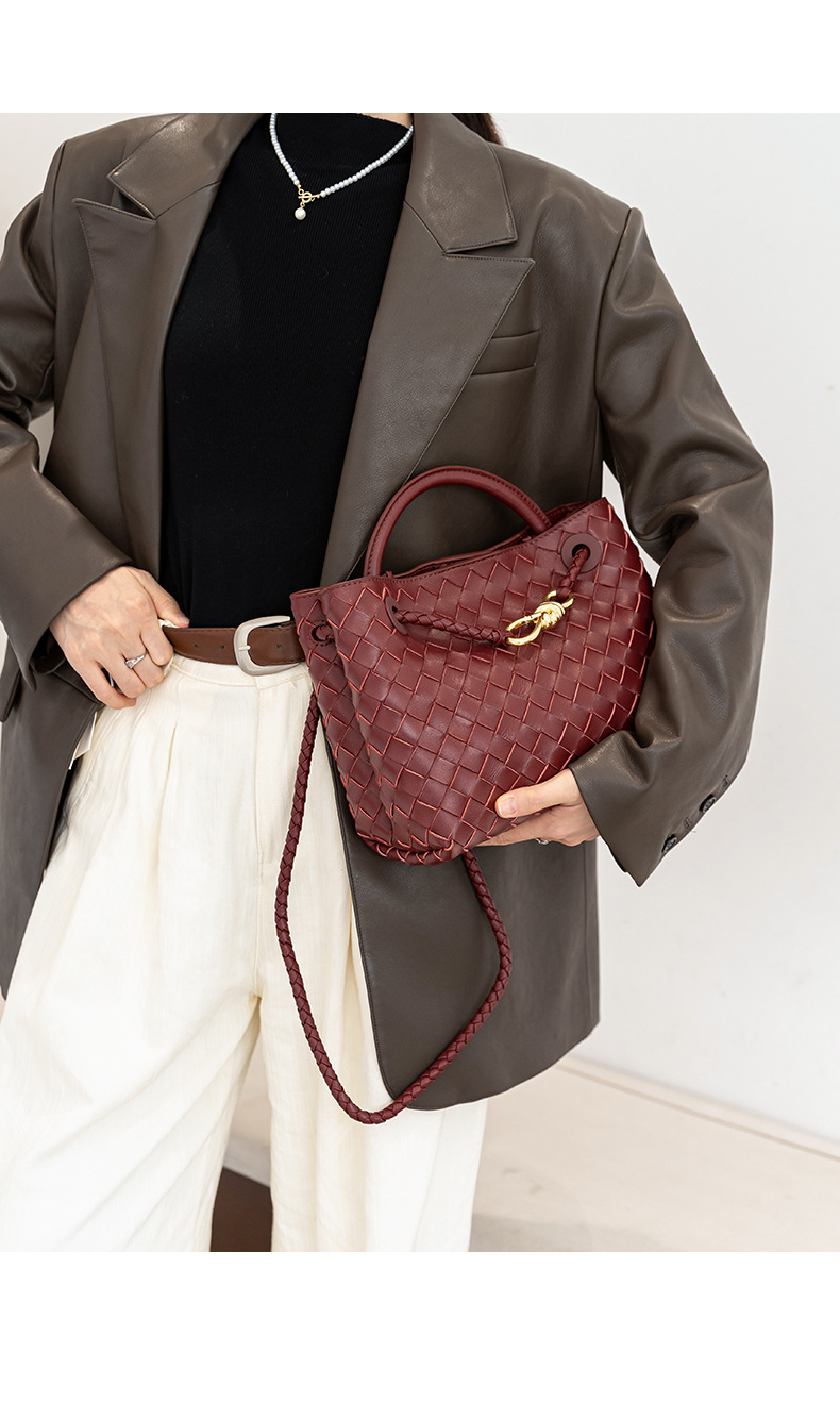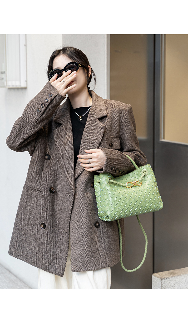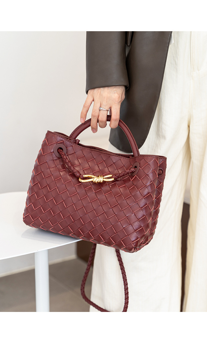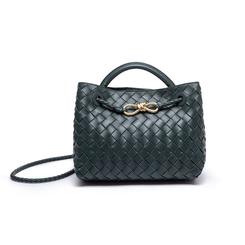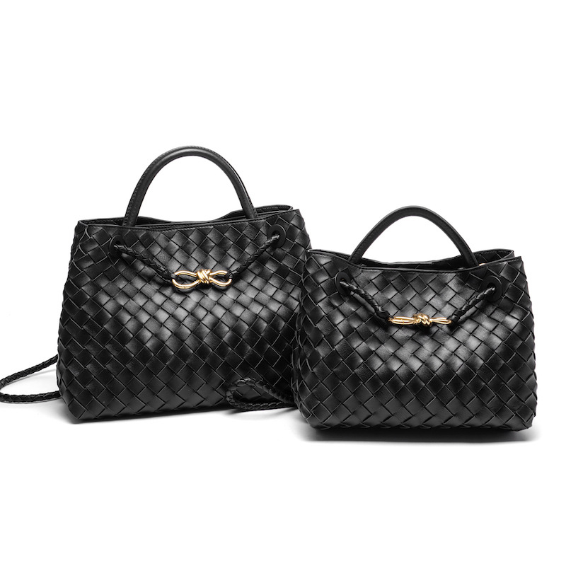 風潮新款編織女包手工雙層編織製作女士手提斜後背包質感編織包