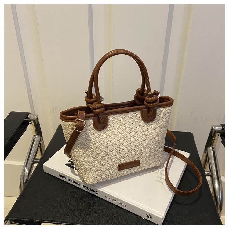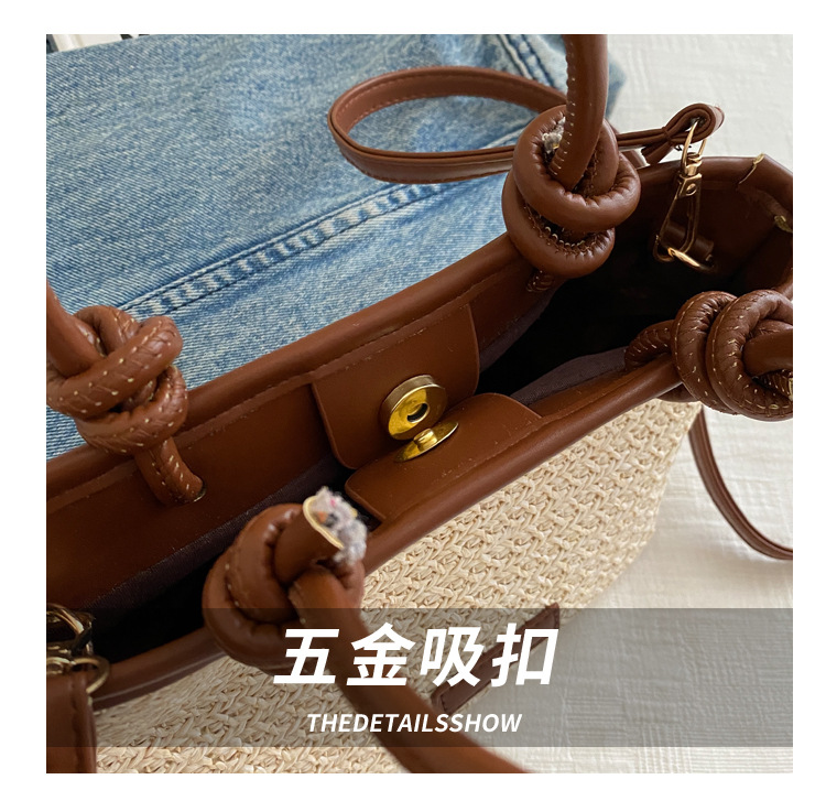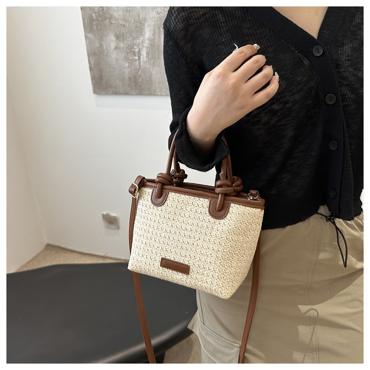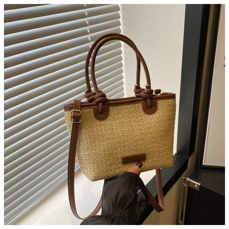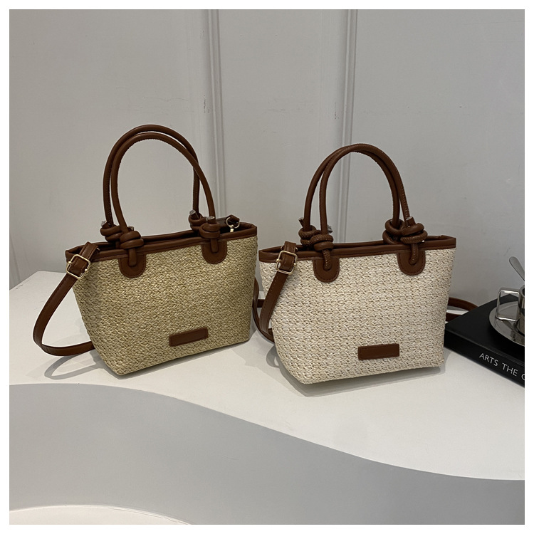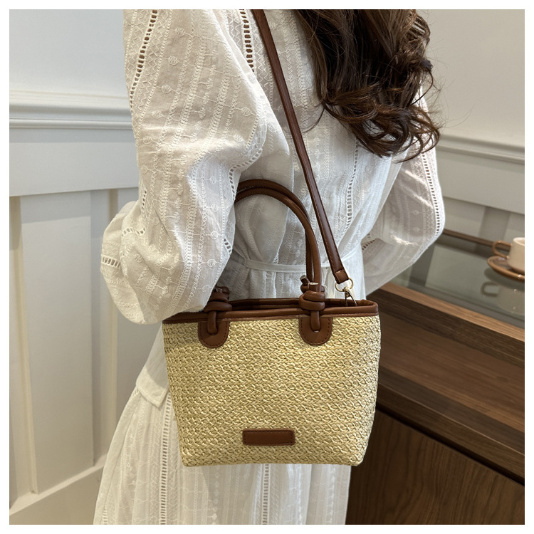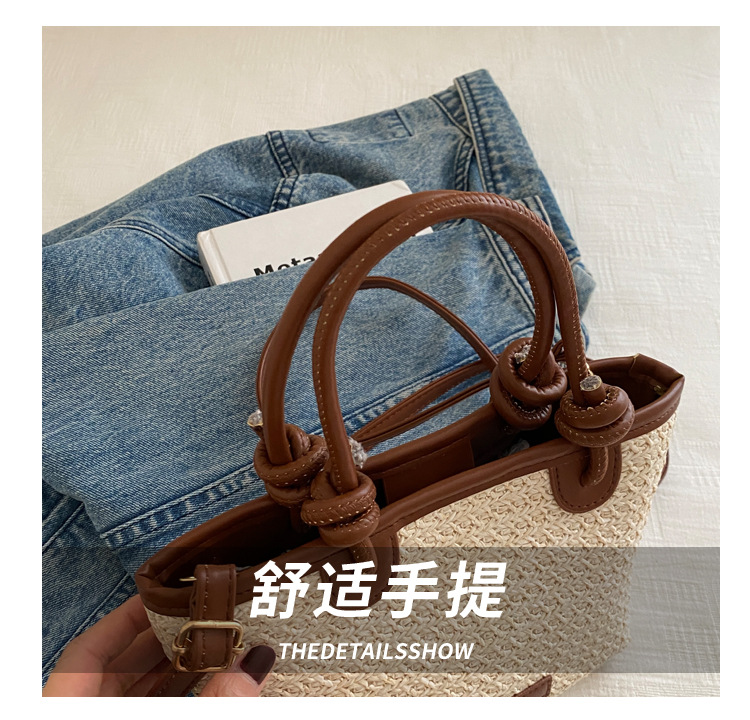夏天度假沙灘風草編包手提斜後背包2024新款洋氣繩結菜籃子包編織包