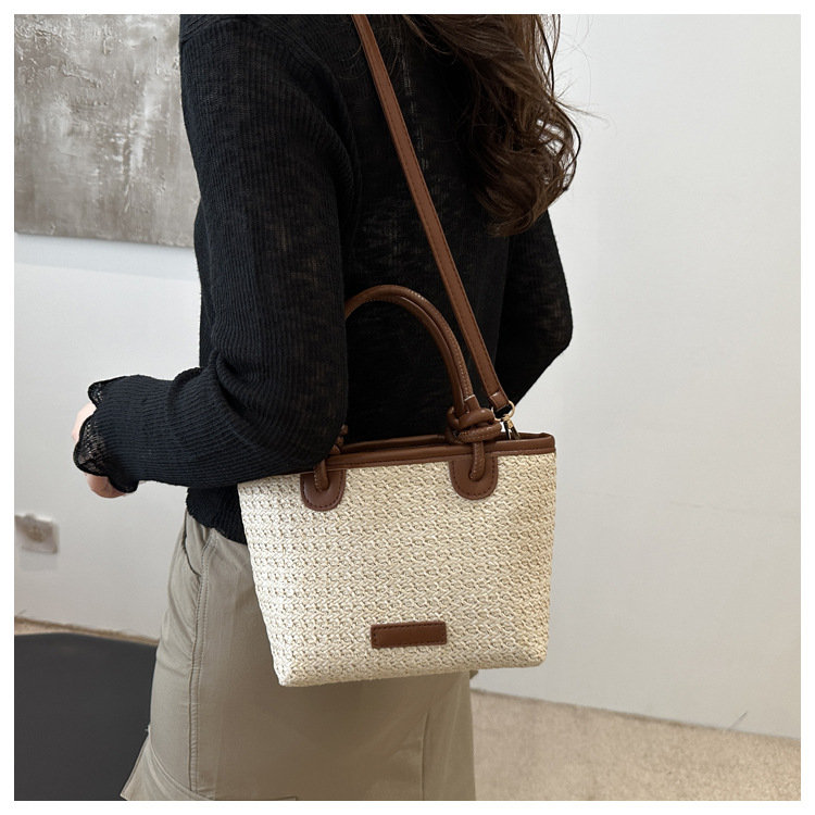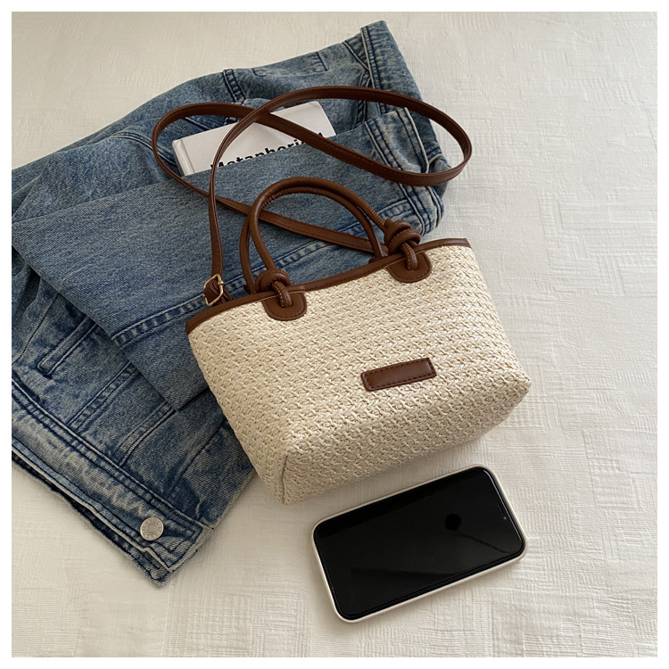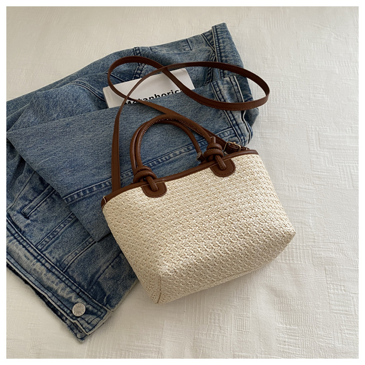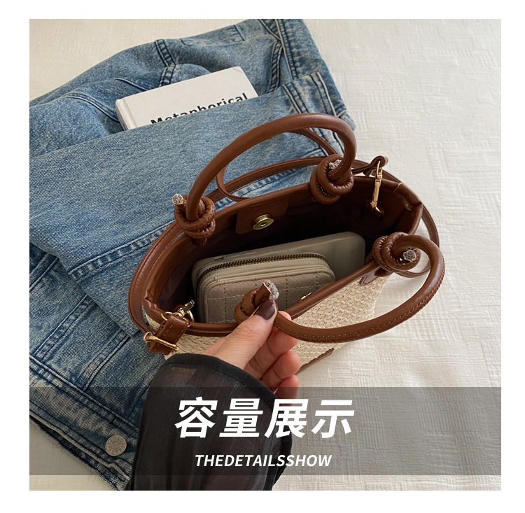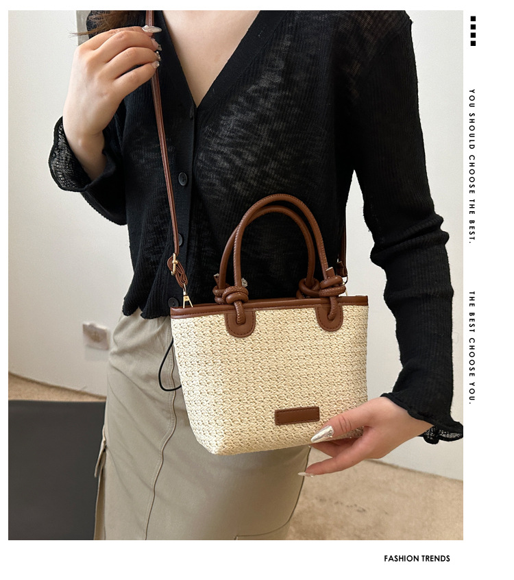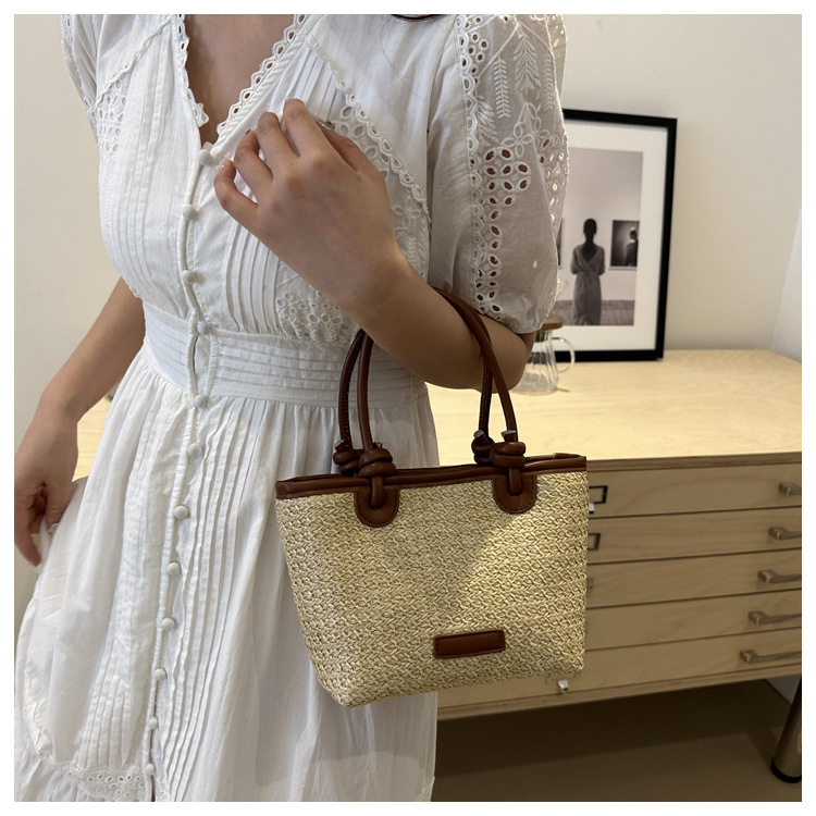 夏天度假沙灘風草編包手提斜後背包2024新款洋氣繩結菜籃子包編織包