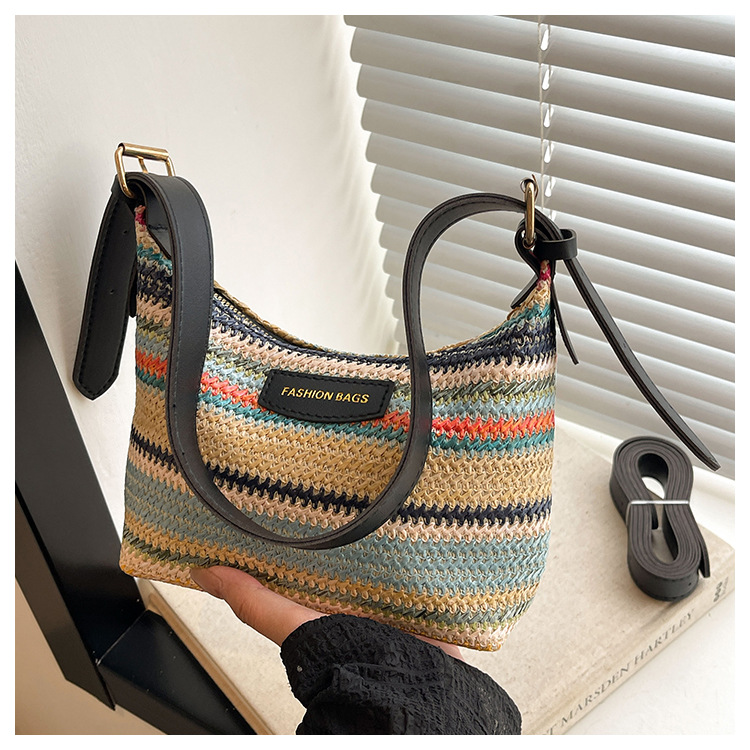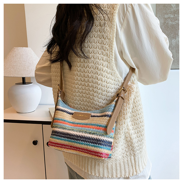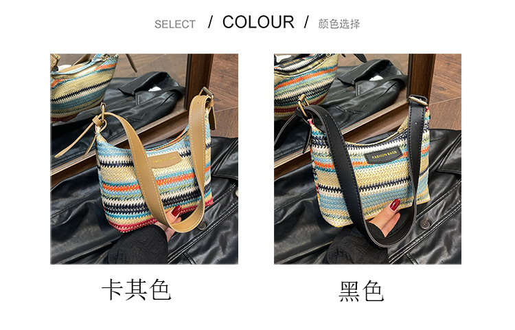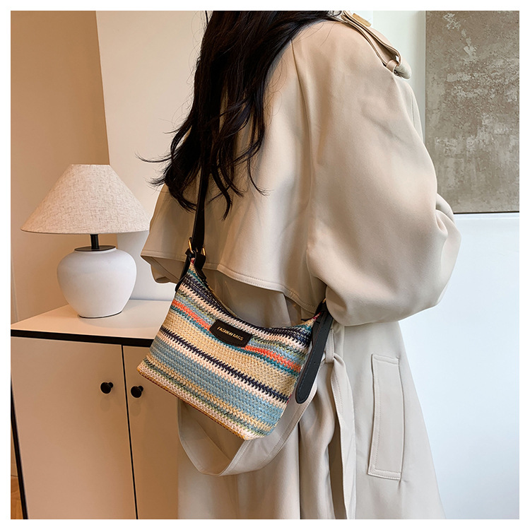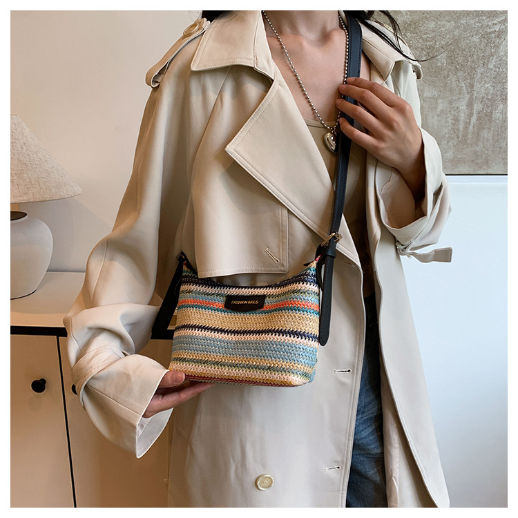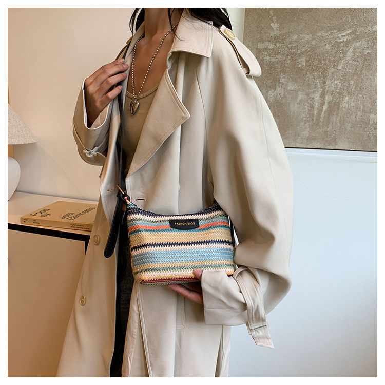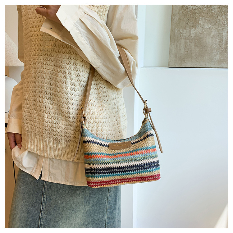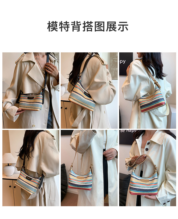 潮流時尚撞色編織包女2024夏季新款ins簡約休閒餃子包百搭單肩包
