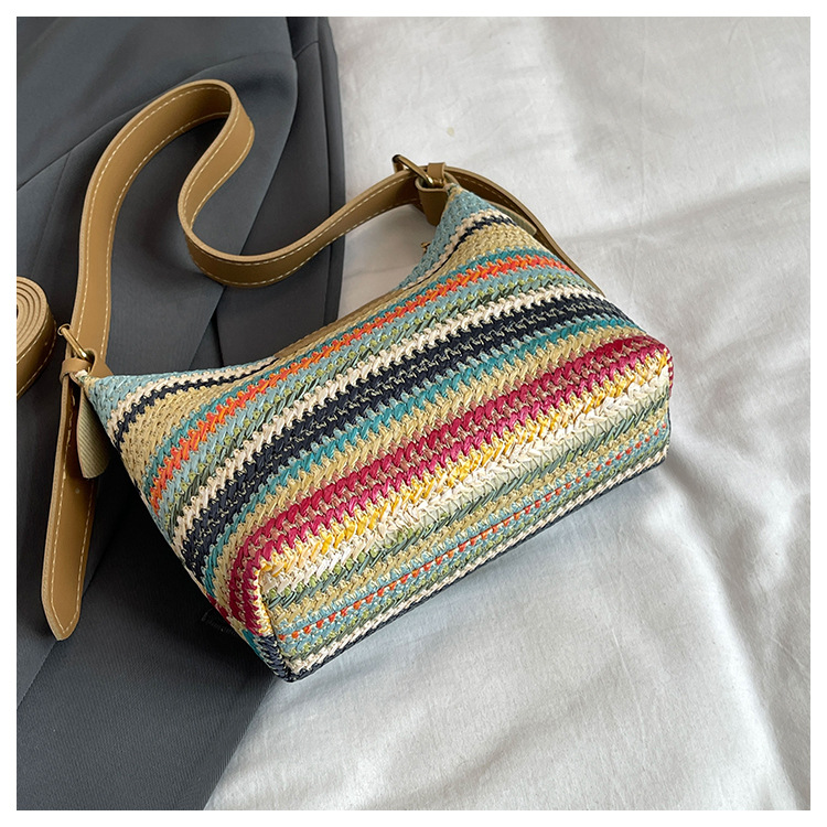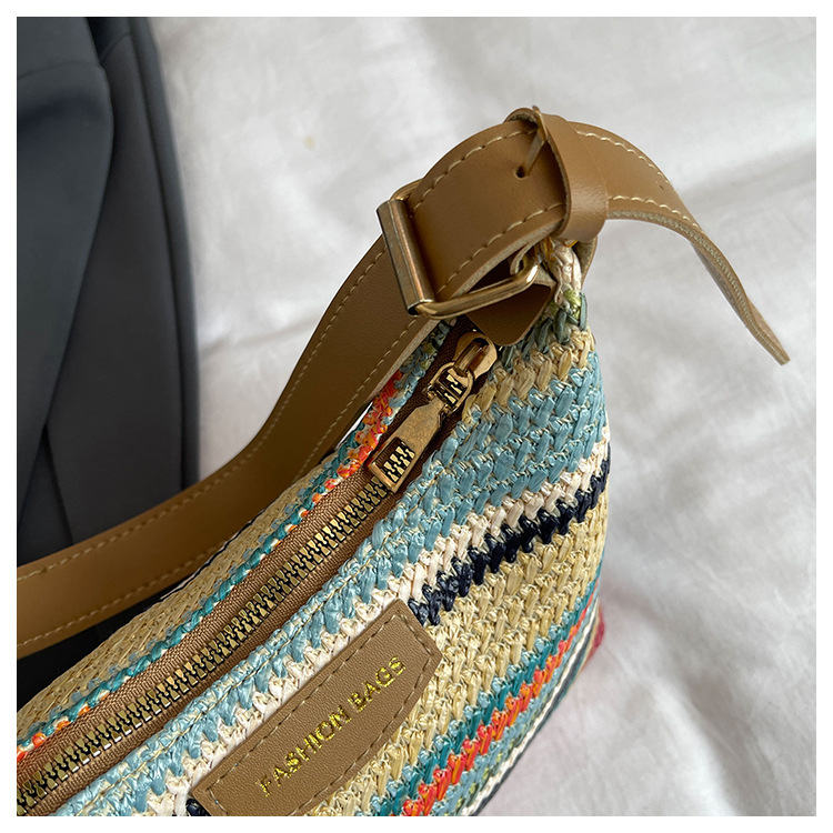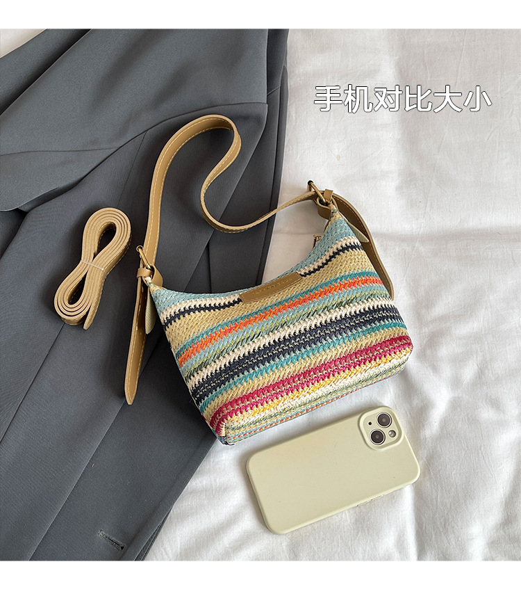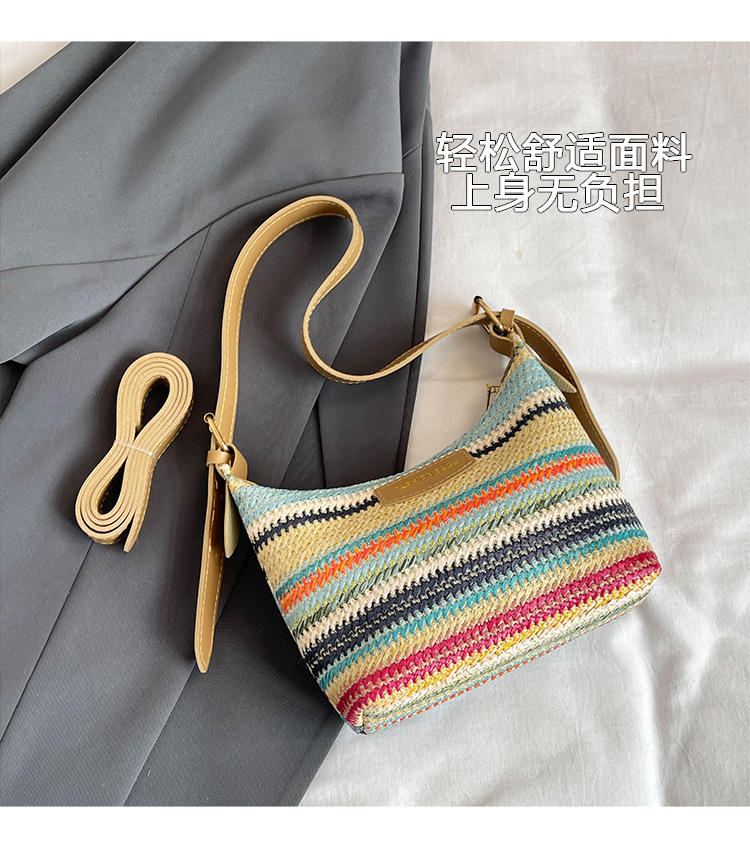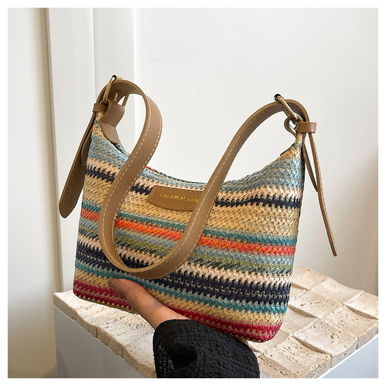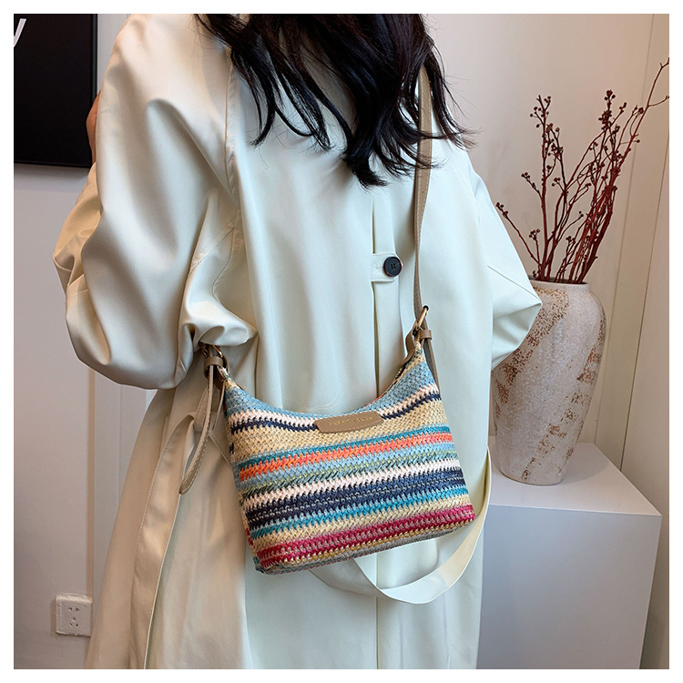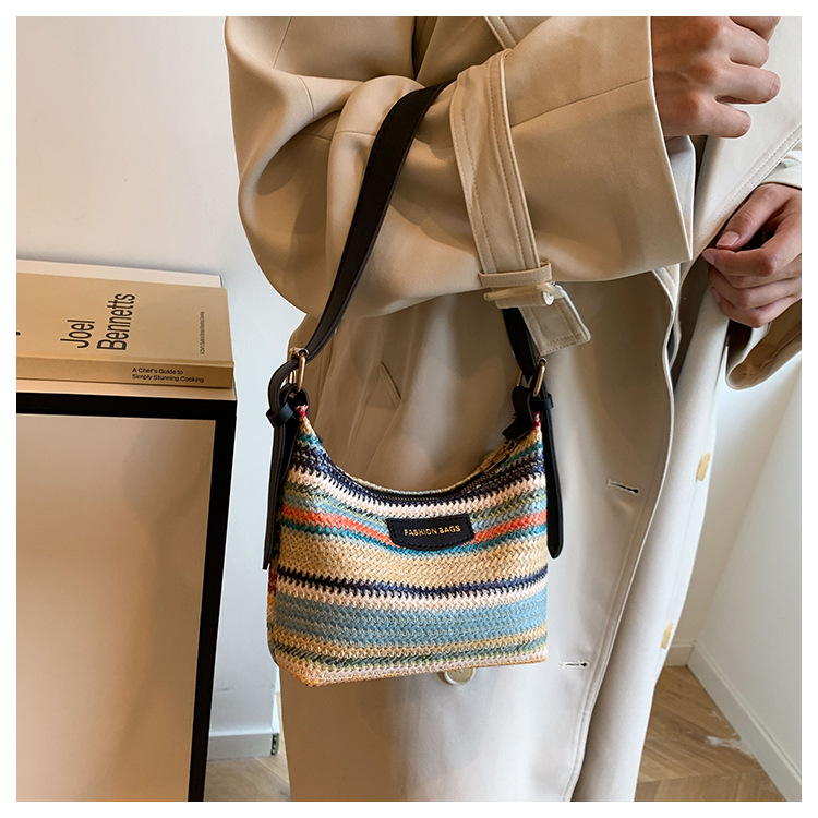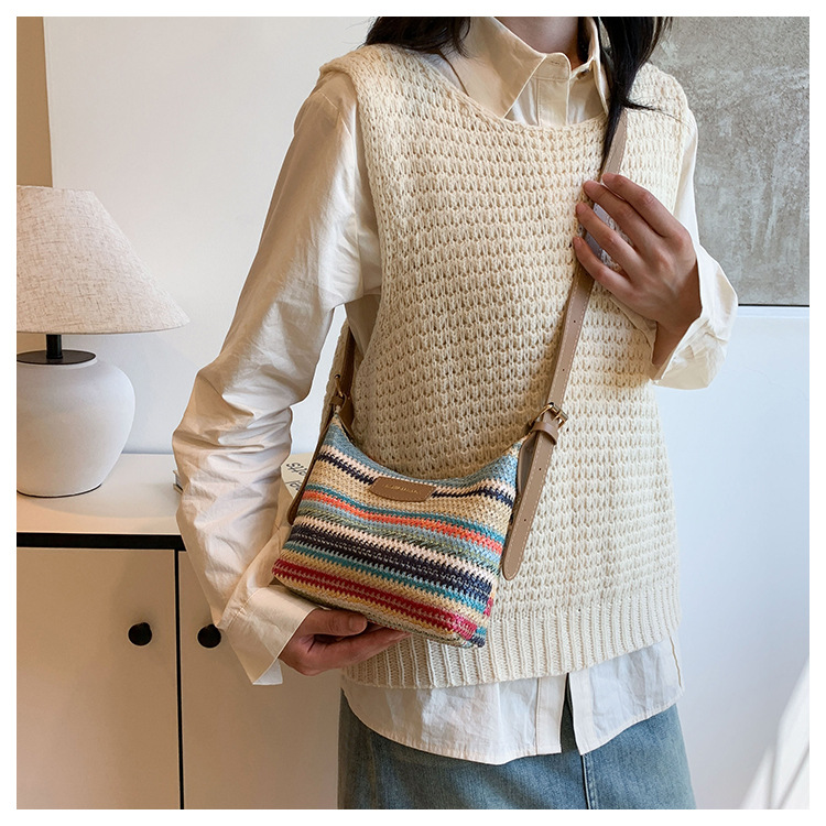 潮流時尚撞色編織包女2024夏季新款ins簡約休閒餃子包百搭單肩包