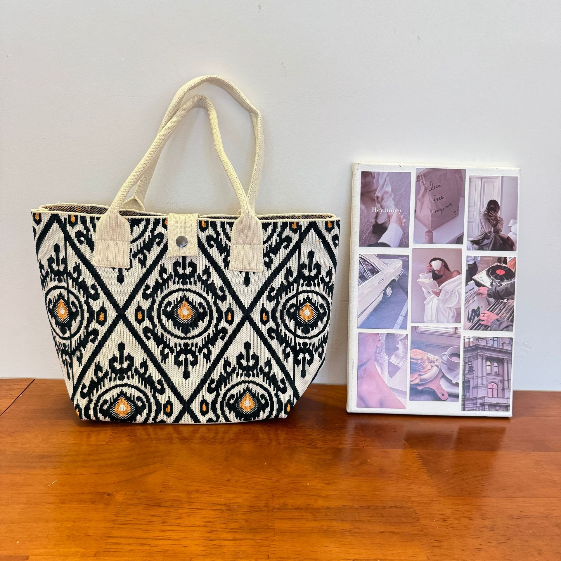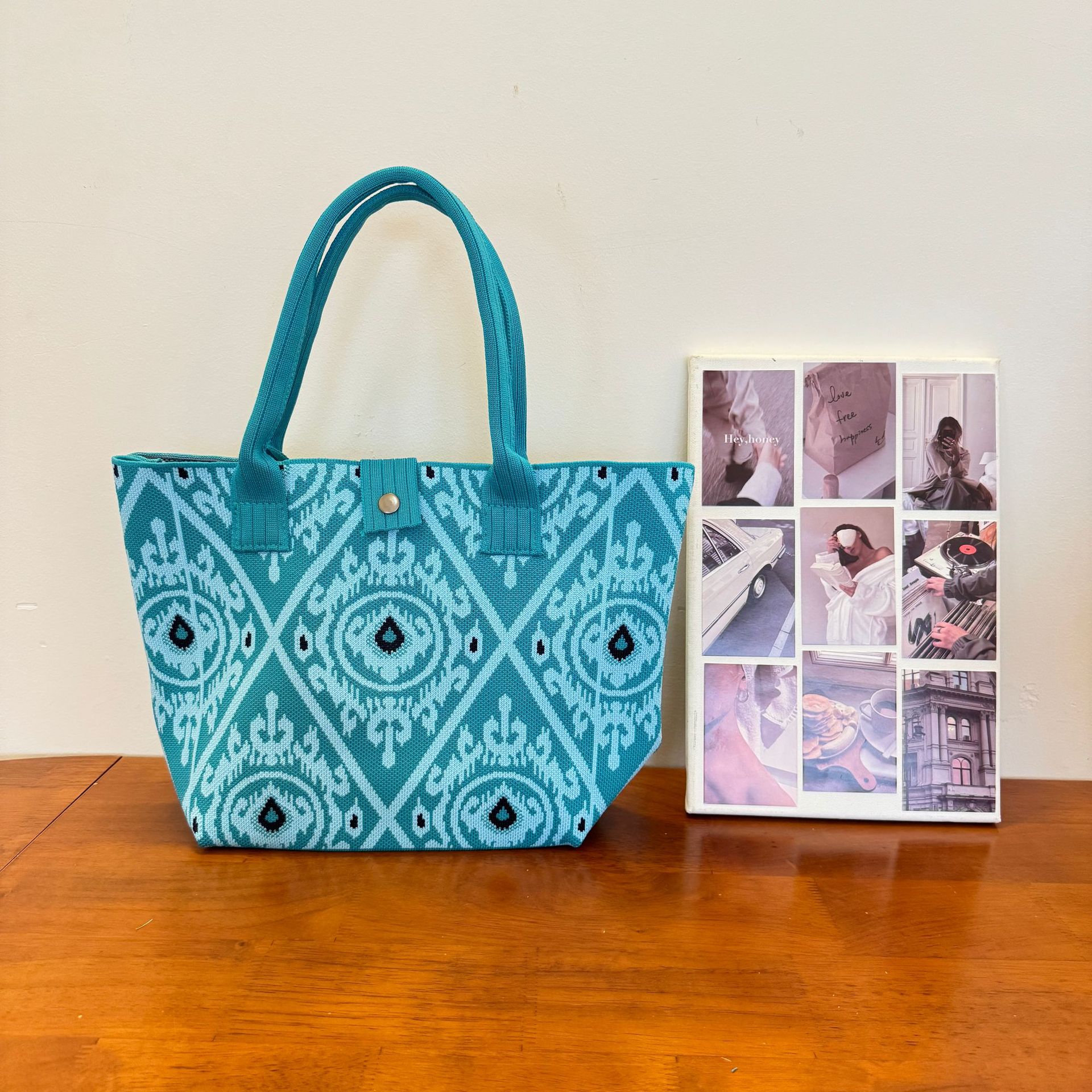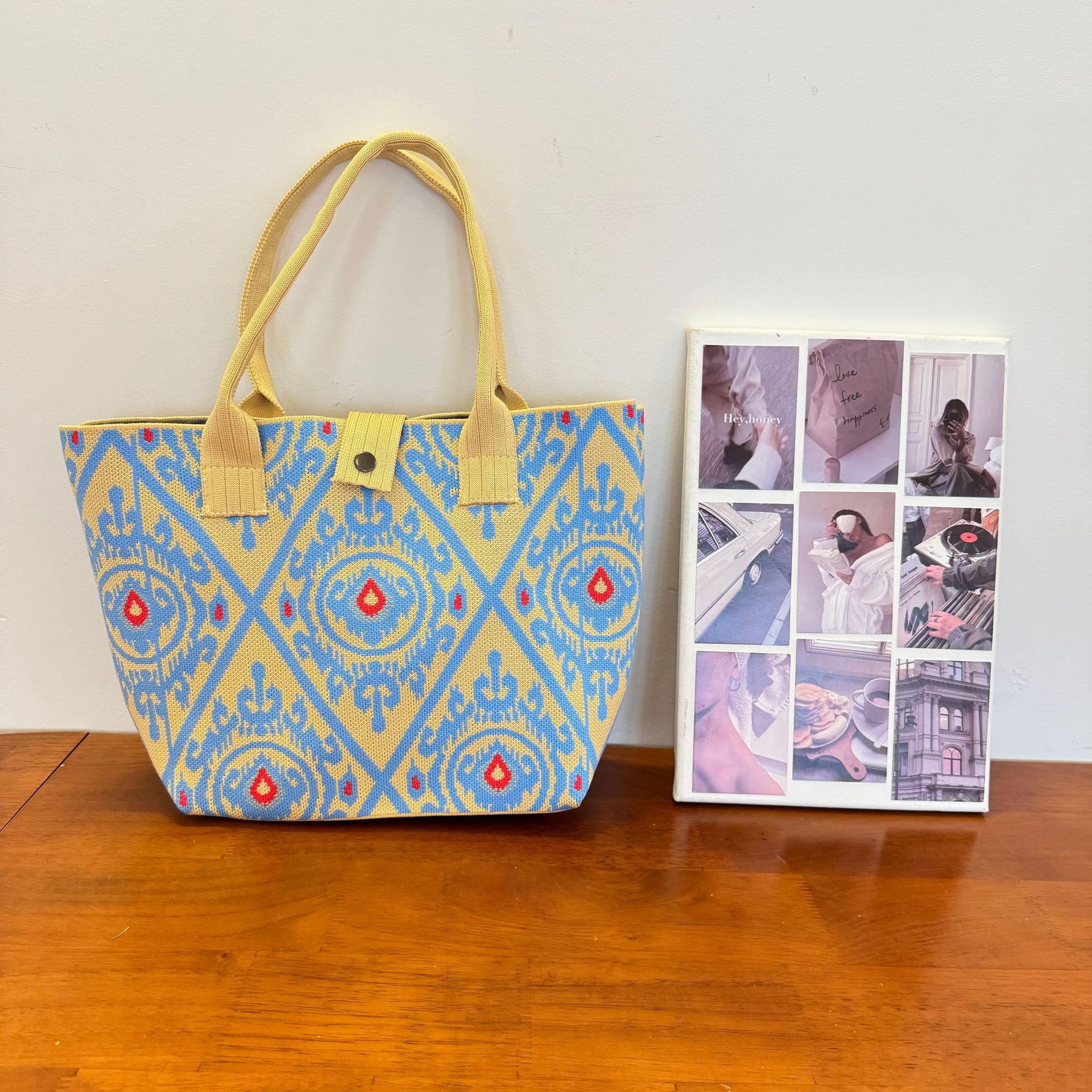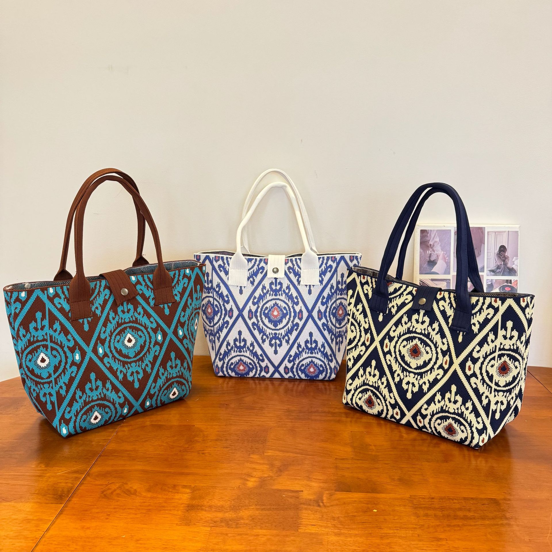 2025新款針織包新疆艾德萊斯花紋手提包包旅遊大容量民族風編織包