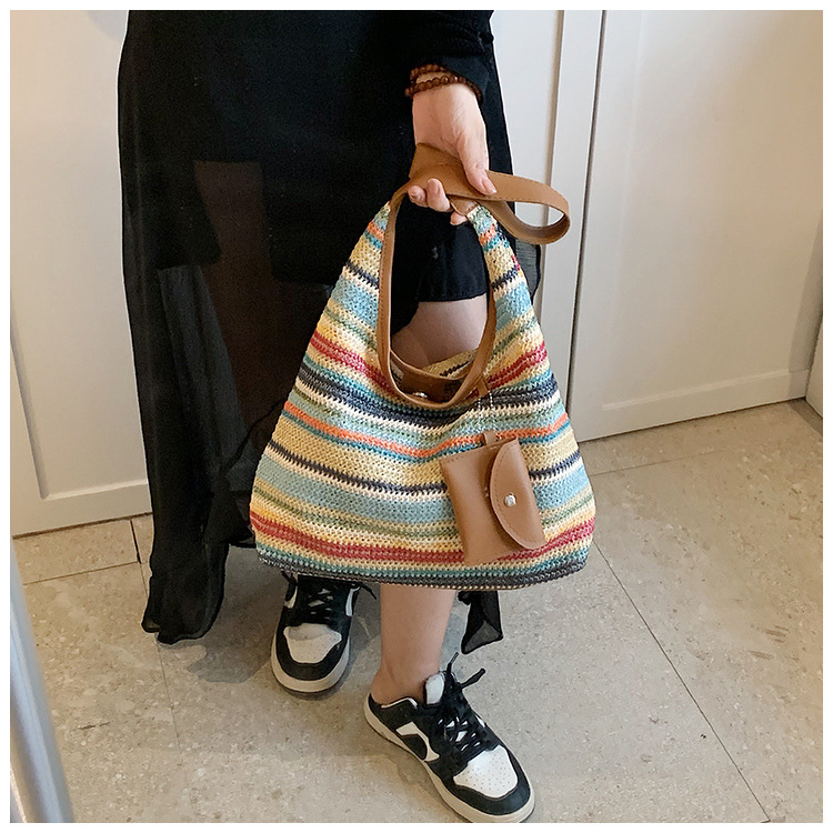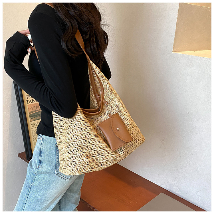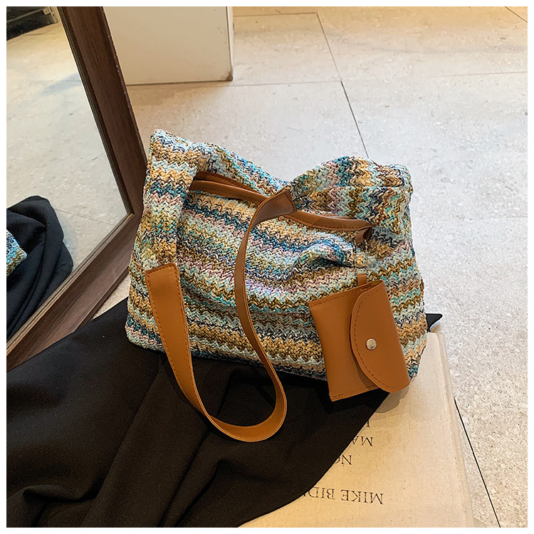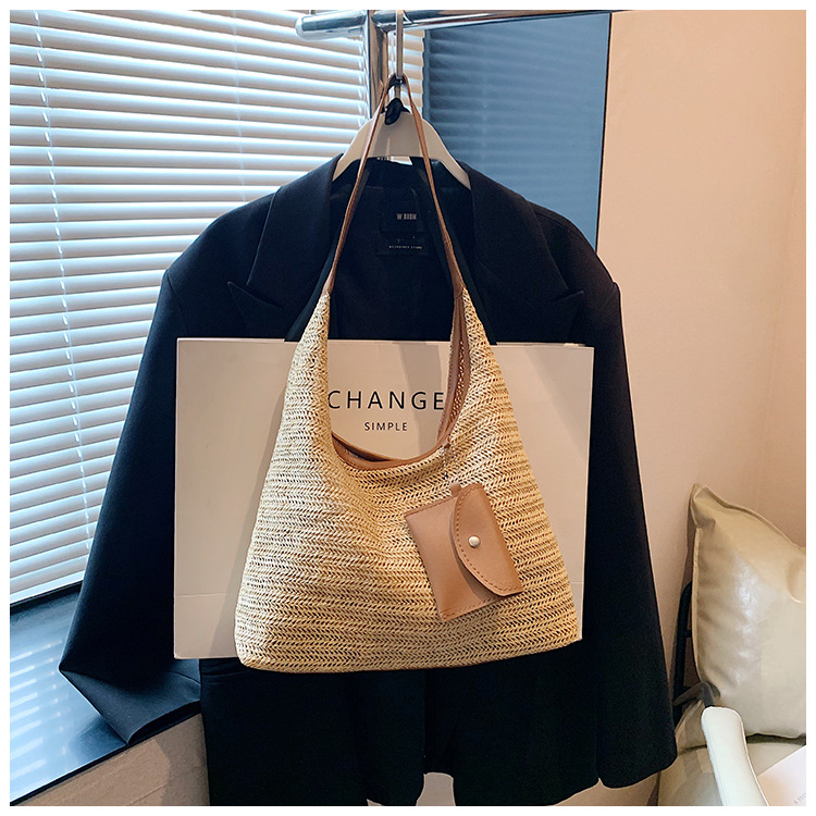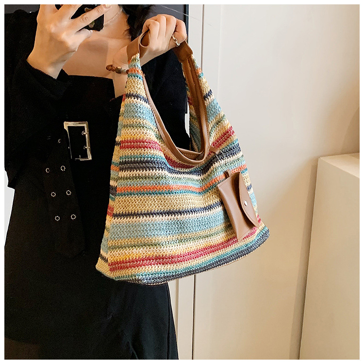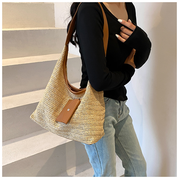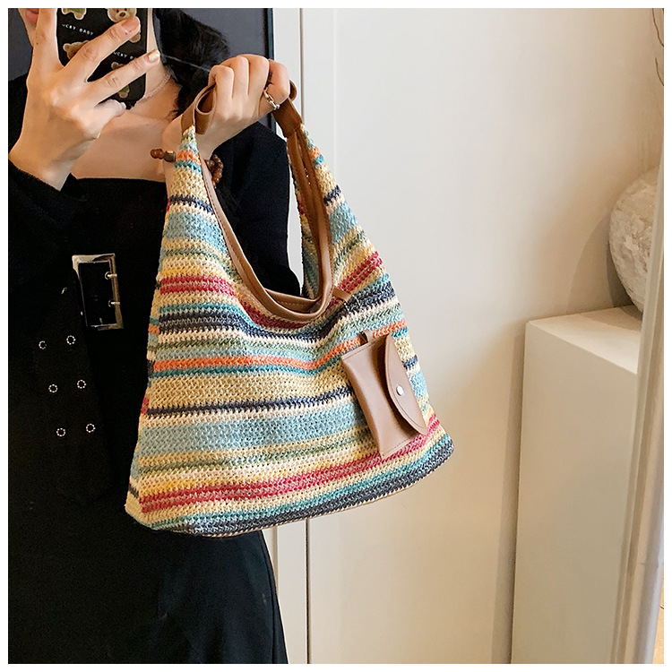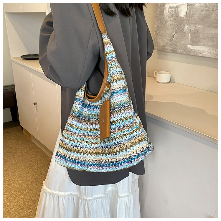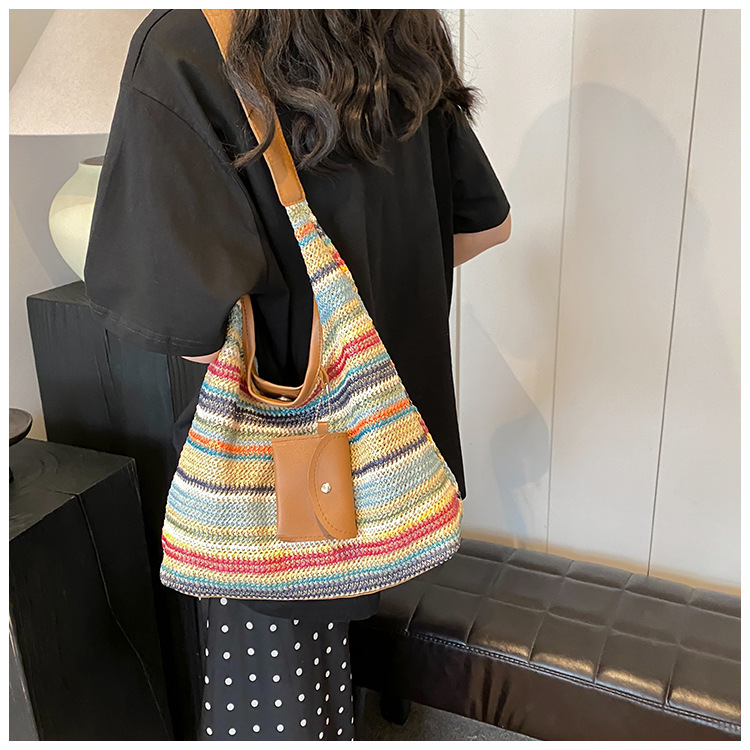大容量手工編織包包女2024新款時尚通勤托特包女ins度假沙灘包女