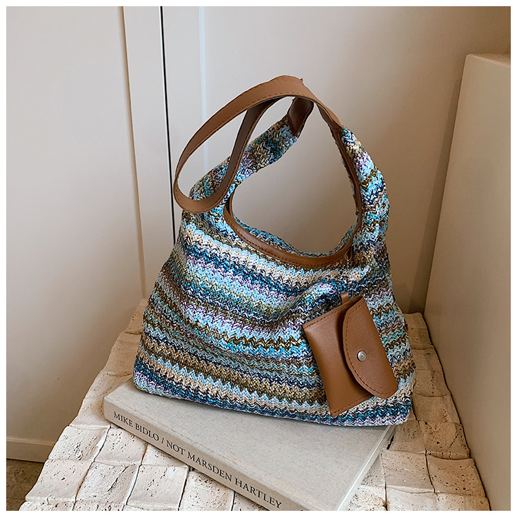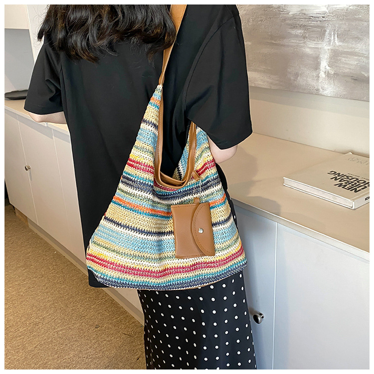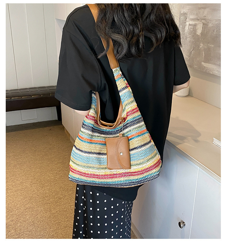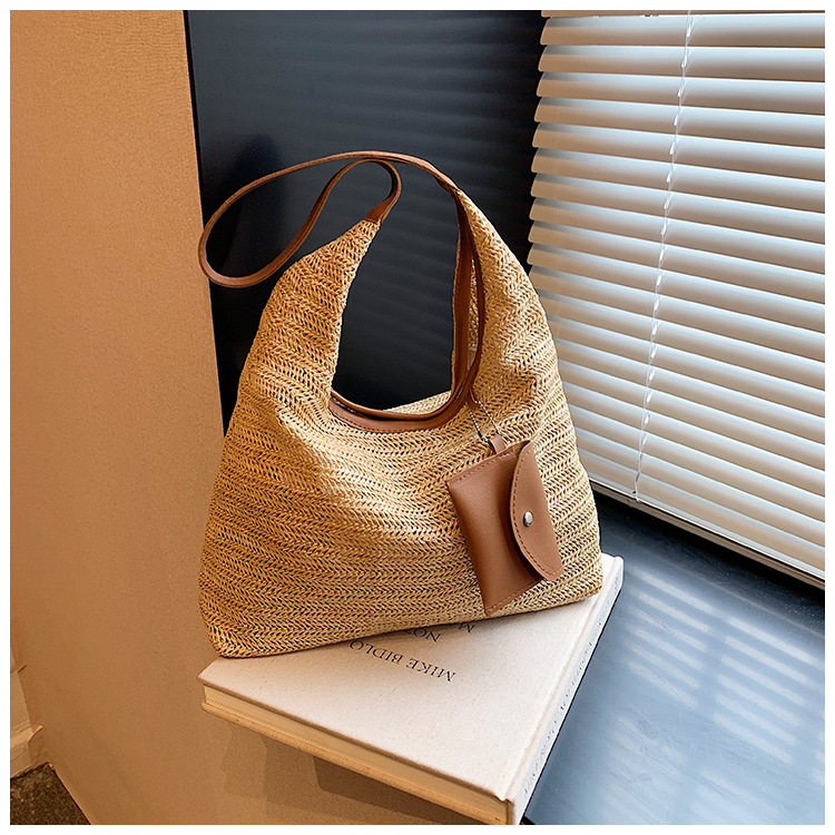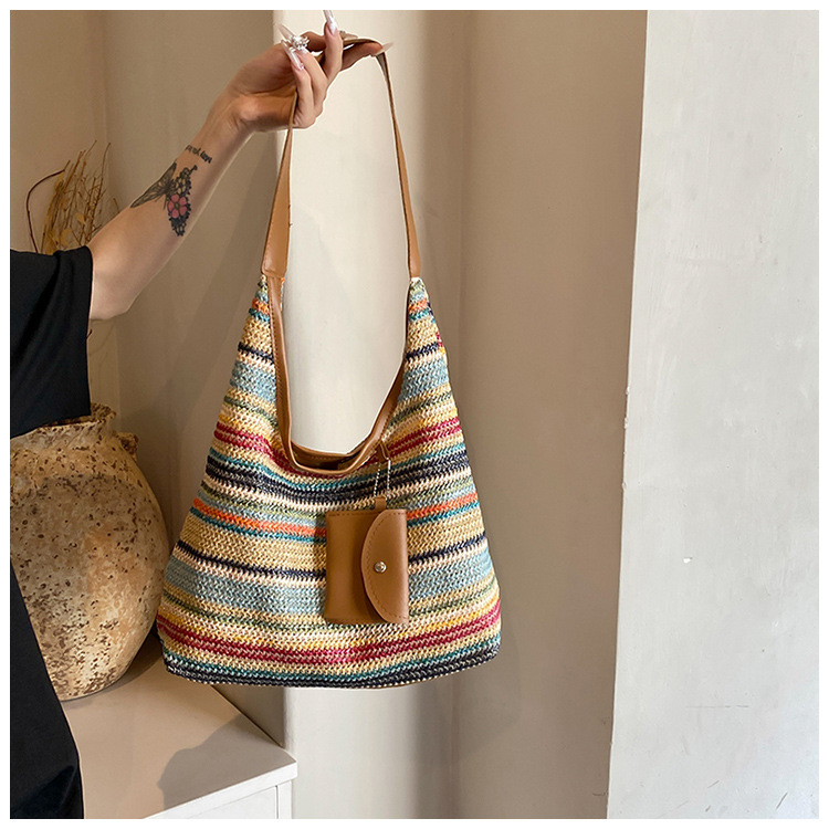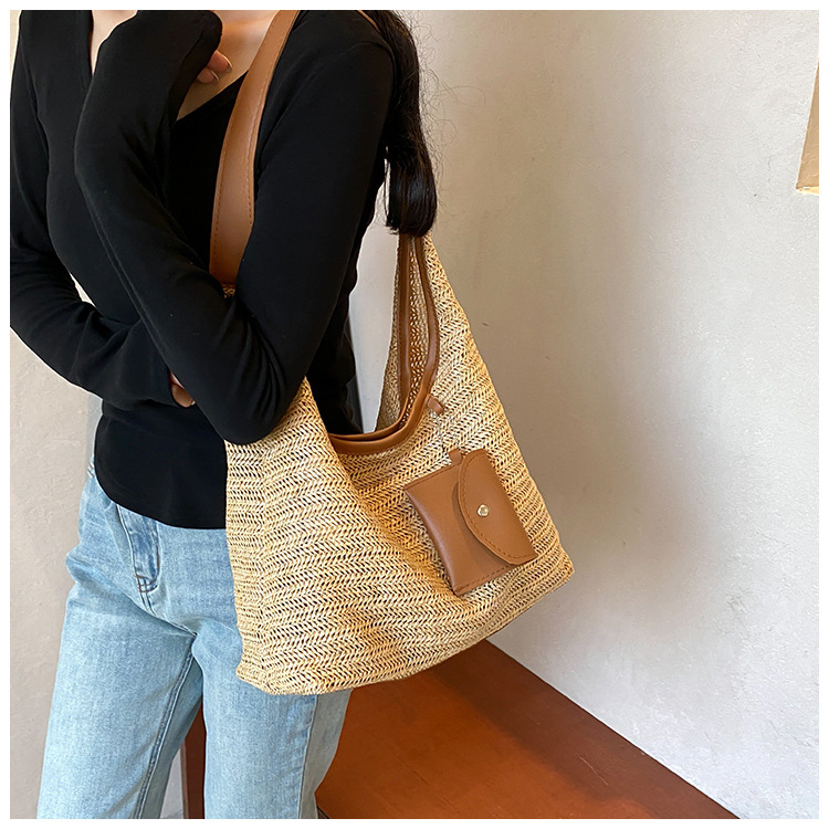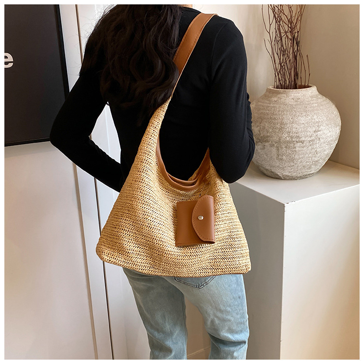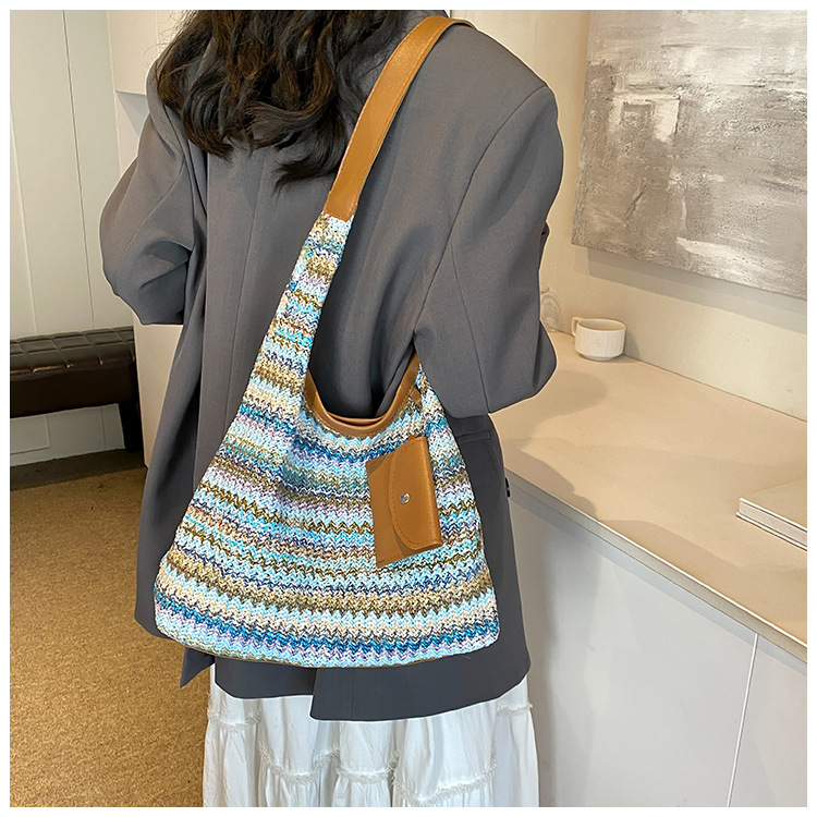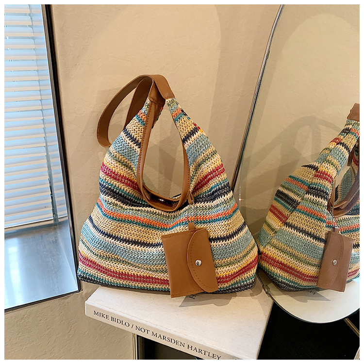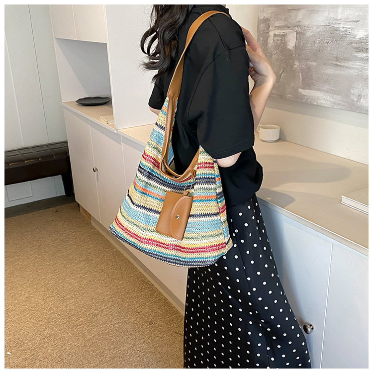大容量手工編織包包女2024新款時尚通勤托特包女ins度假沙灘包女