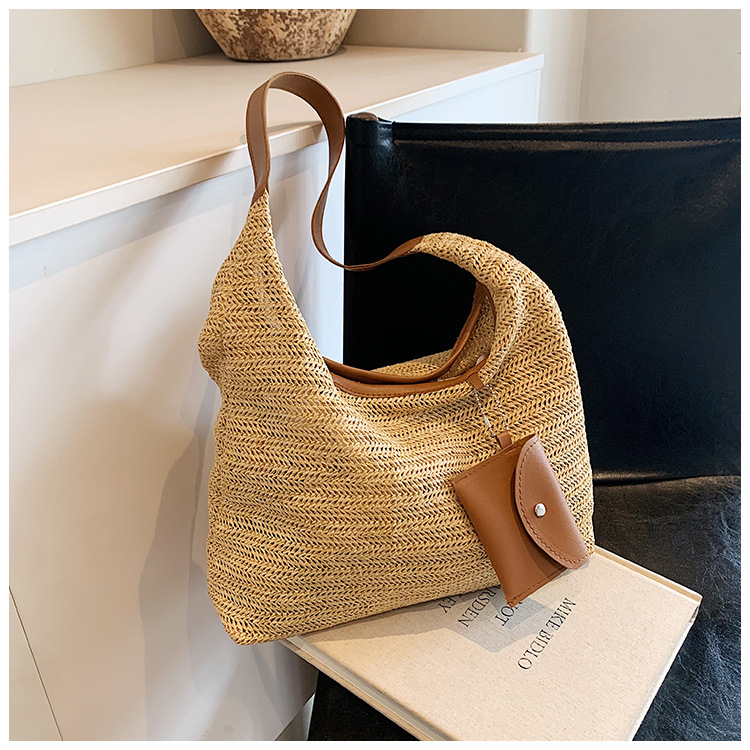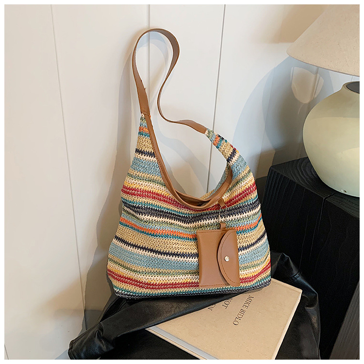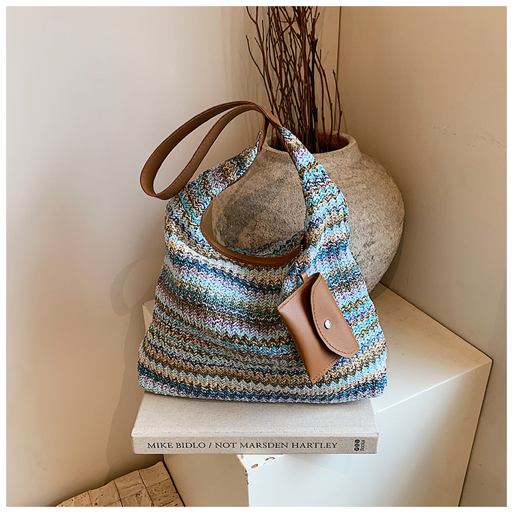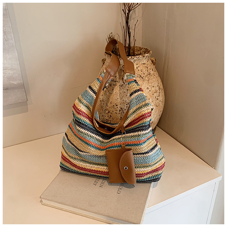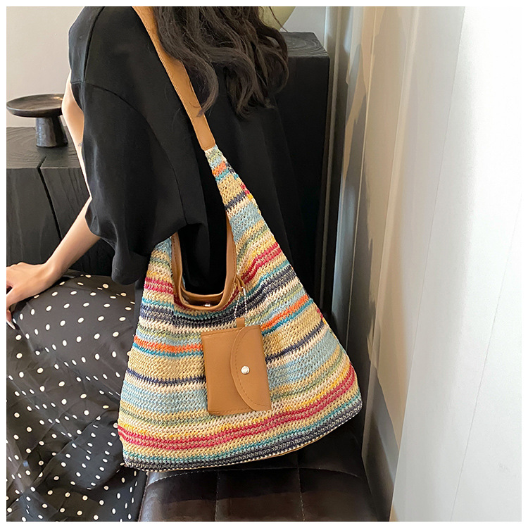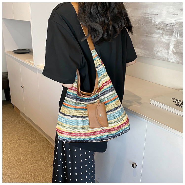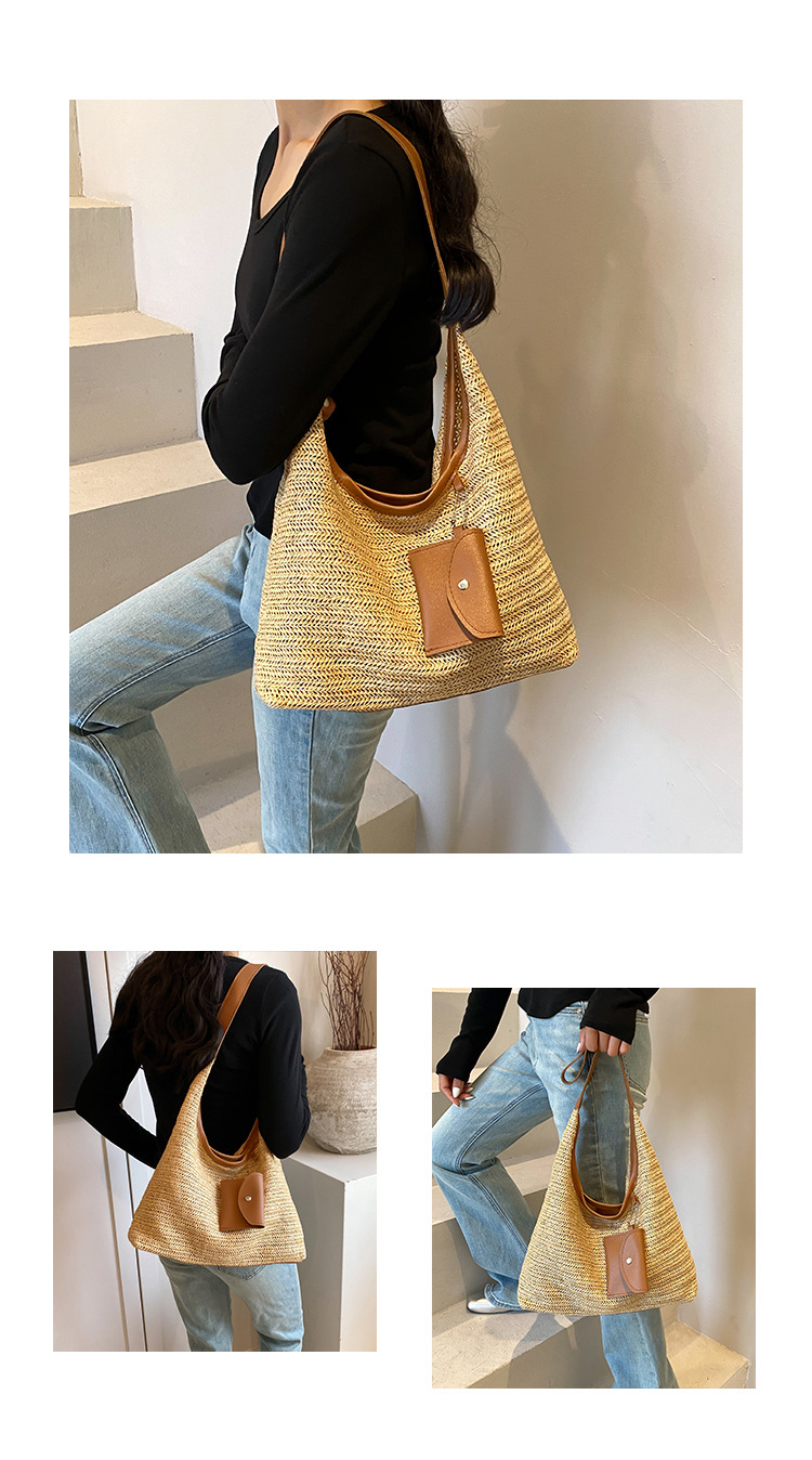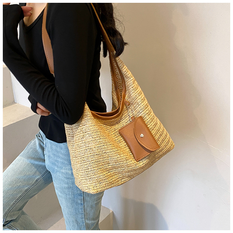 大容量手工編織包包女2024新款時尚通勤托特包女ins度假沙灘包女