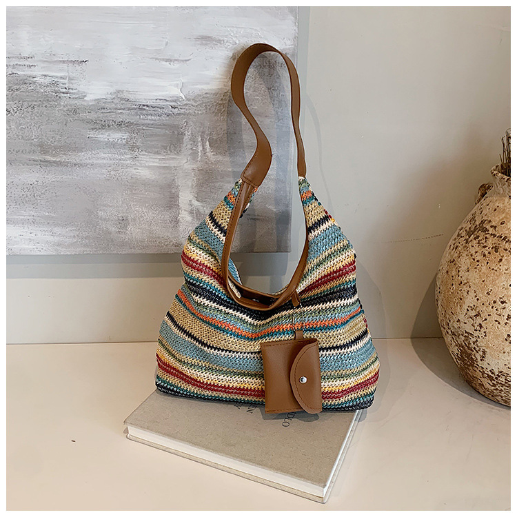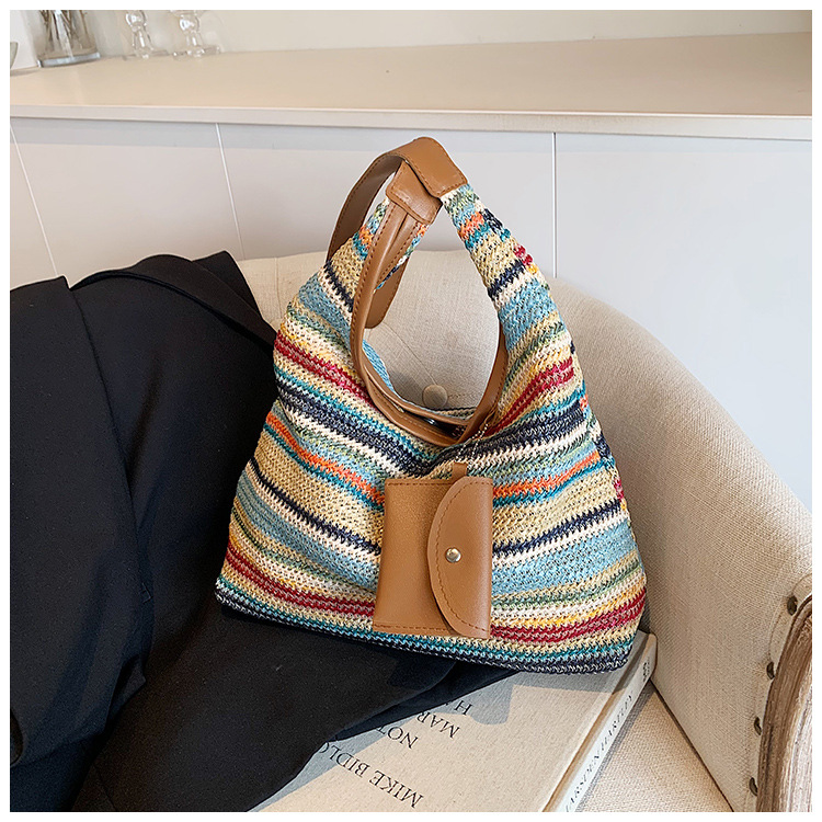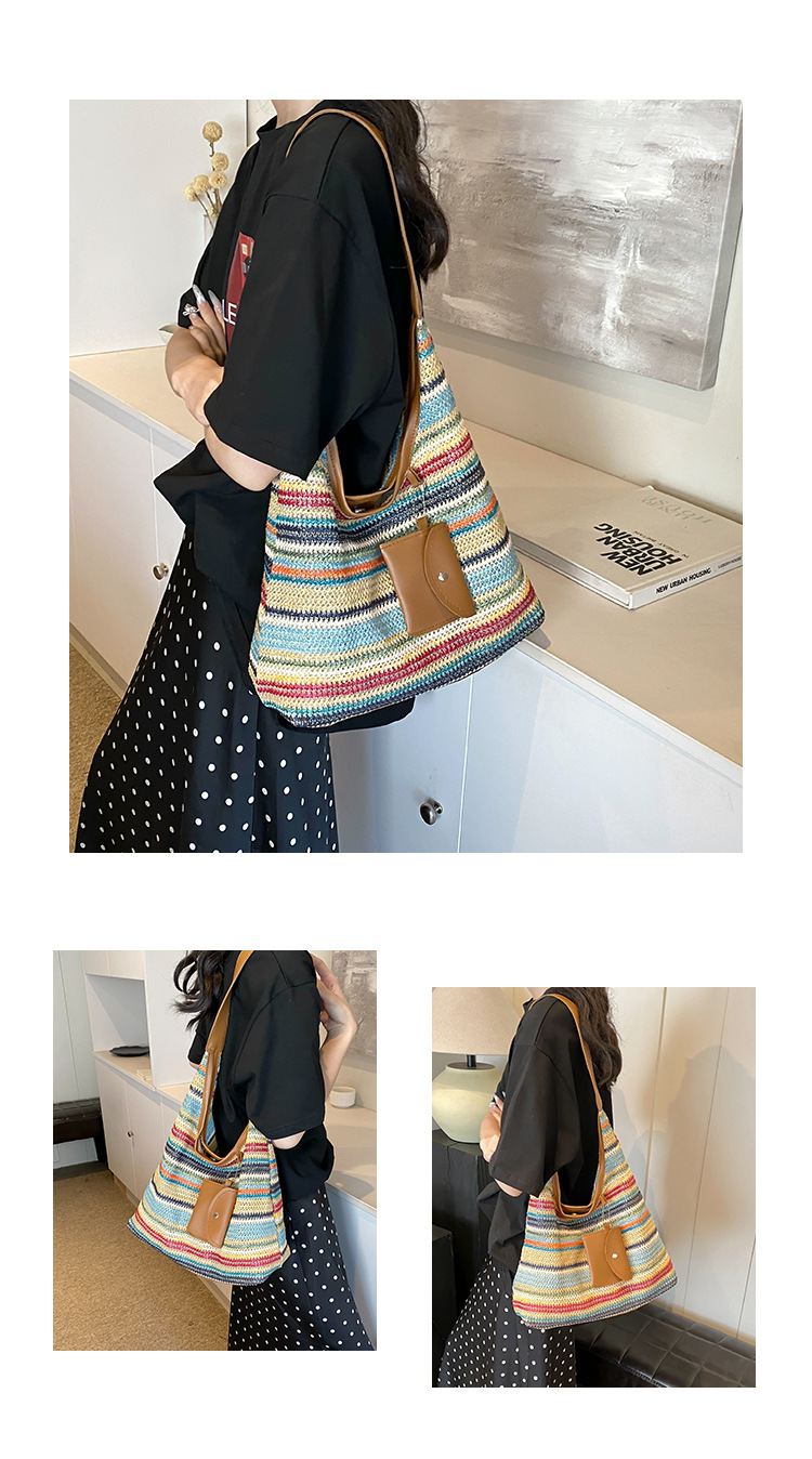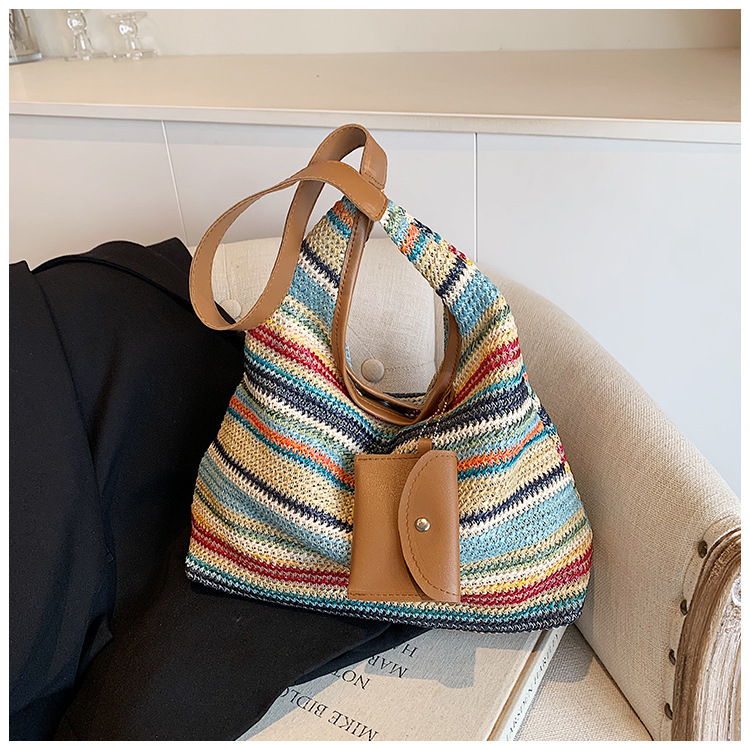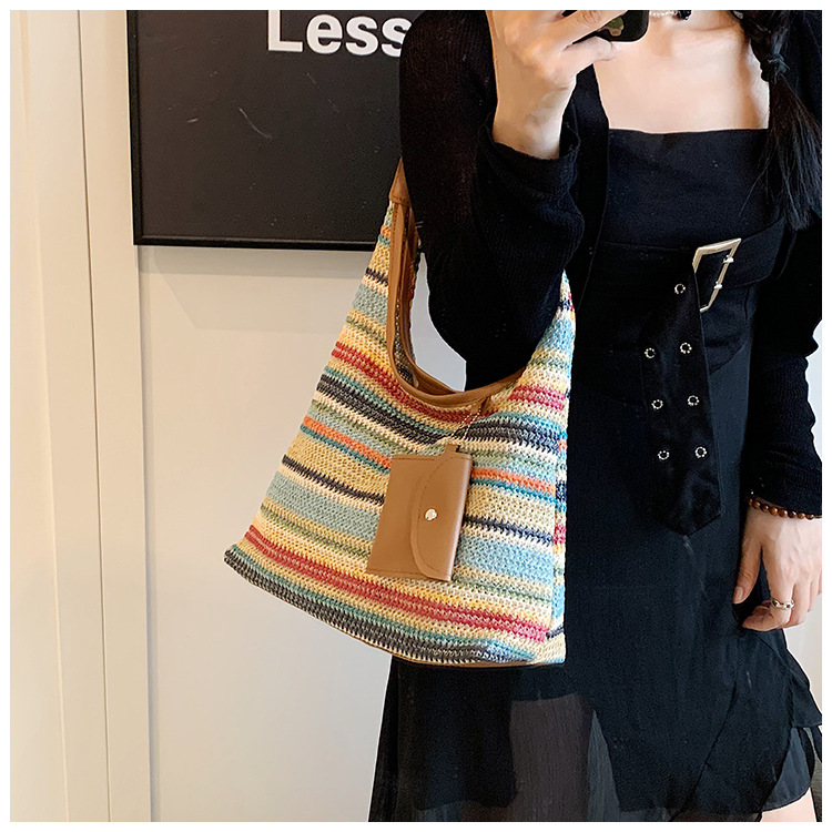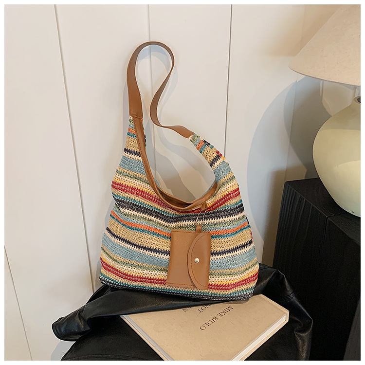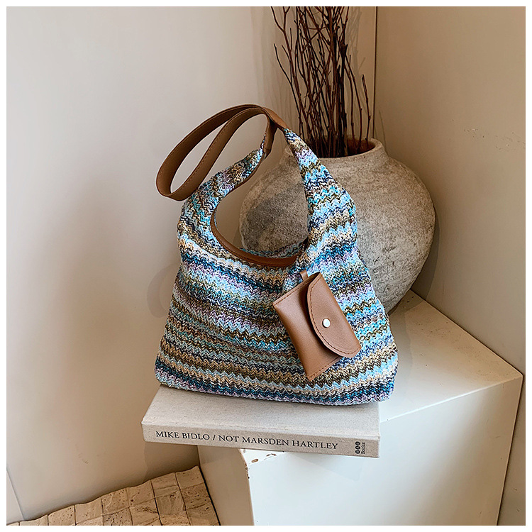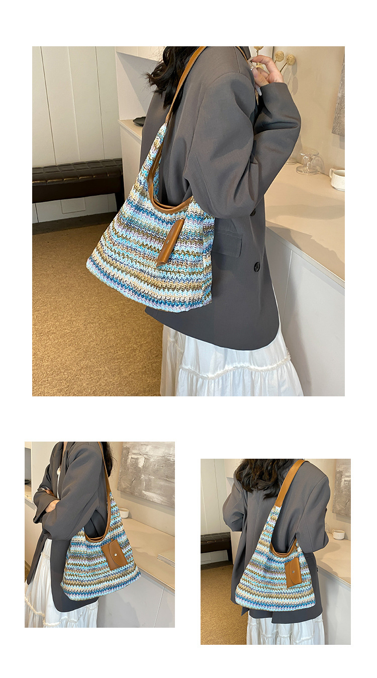 大容量手工編織包包女2024新款時尚通勤托特包女ins度假沙灘包女