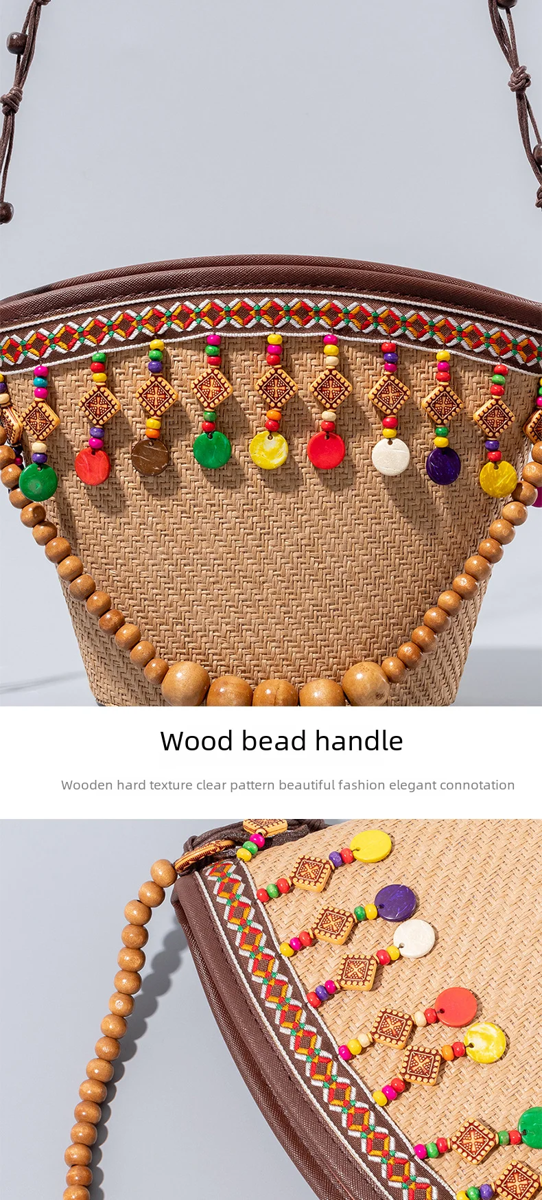 - Handmade Beaded Design :The ENSPT raffia handmade beaded woven bag features a unique handmade beaded design, making it a standout piece in any collection.