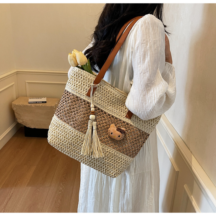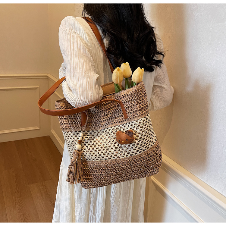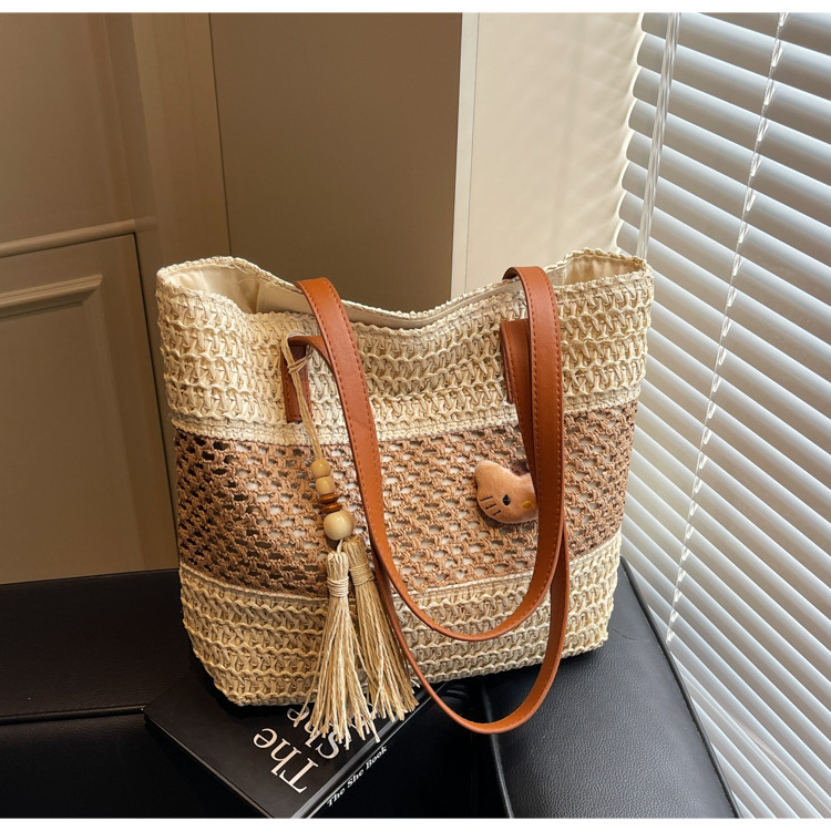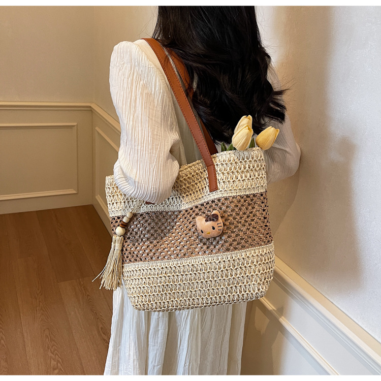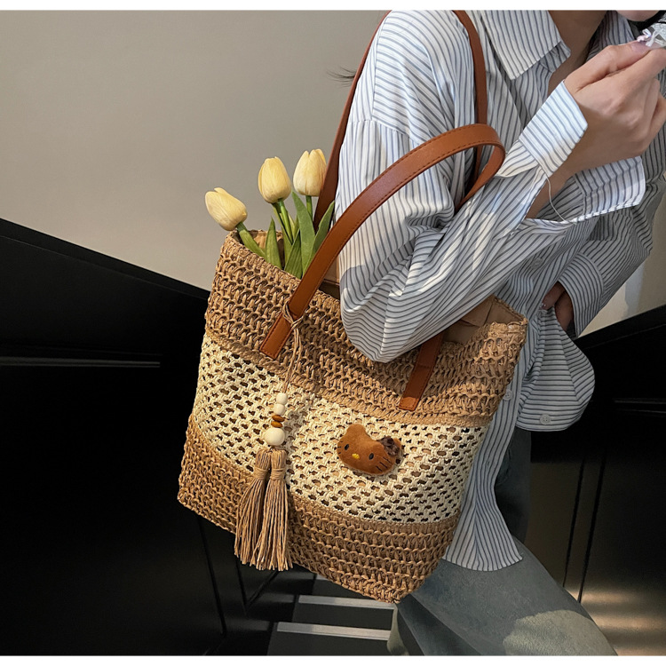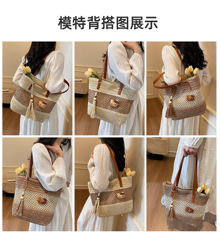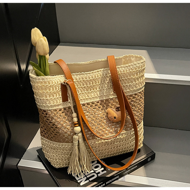 度假風沙灘草編包包女2025夏新款鏤空編織包大容量通勤單肩腋下包