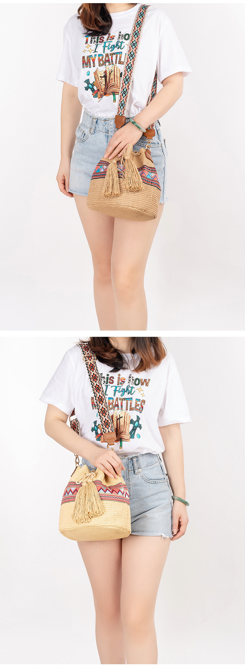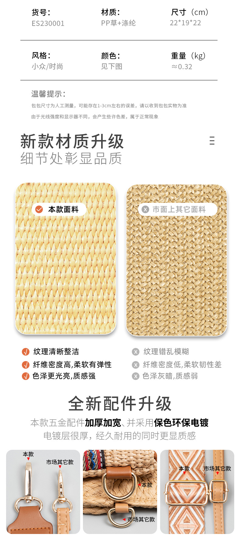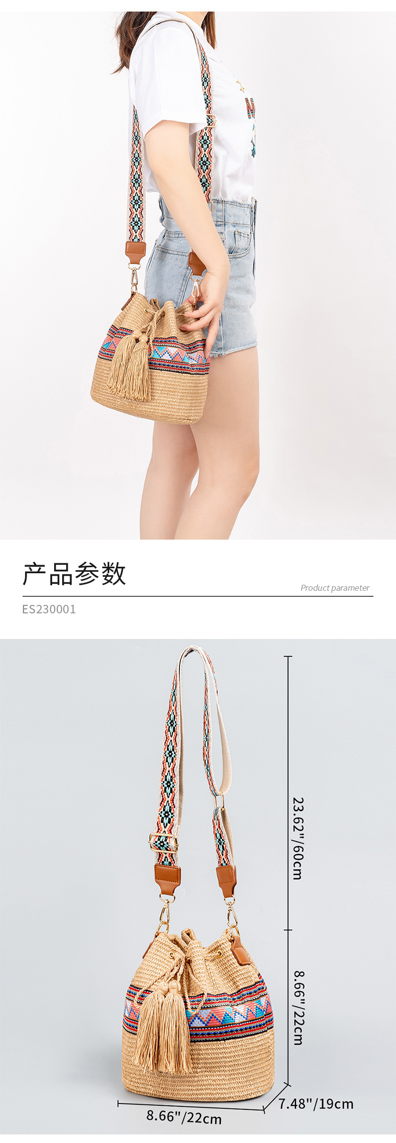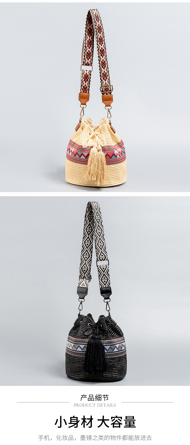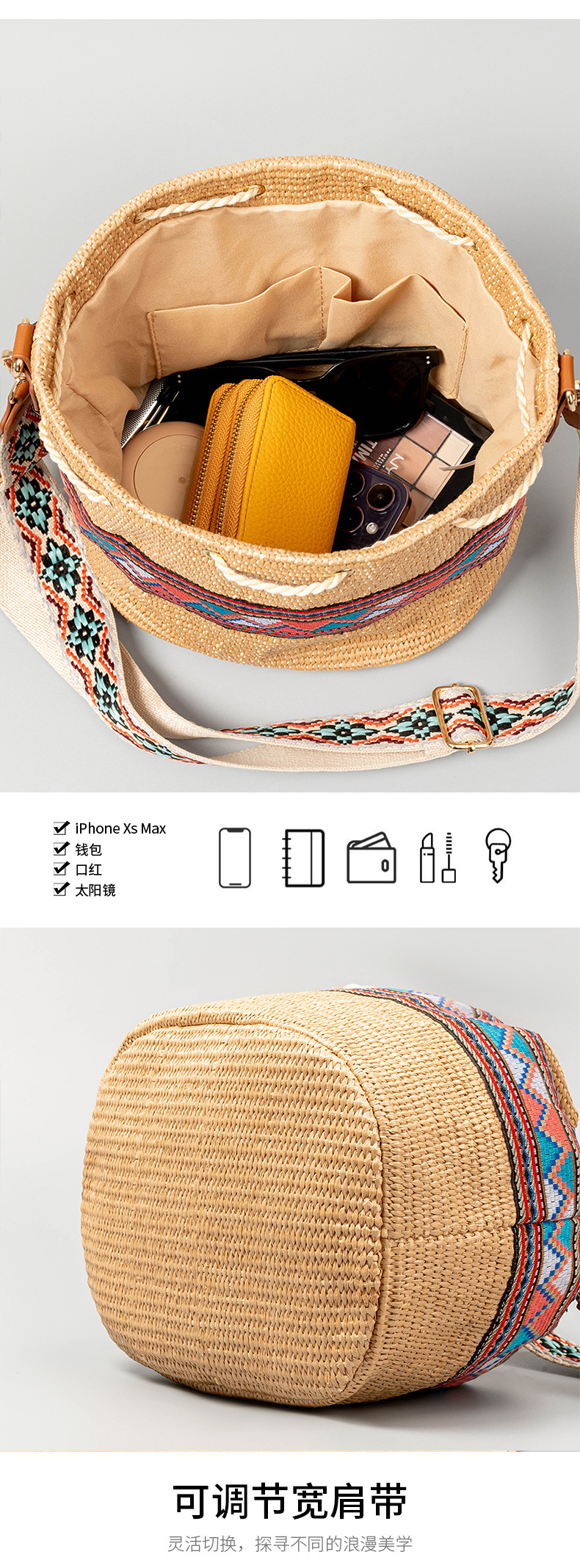 度假草編包沙灘水桶包包女士高級感精緻單肩包海邊斜背編織包
