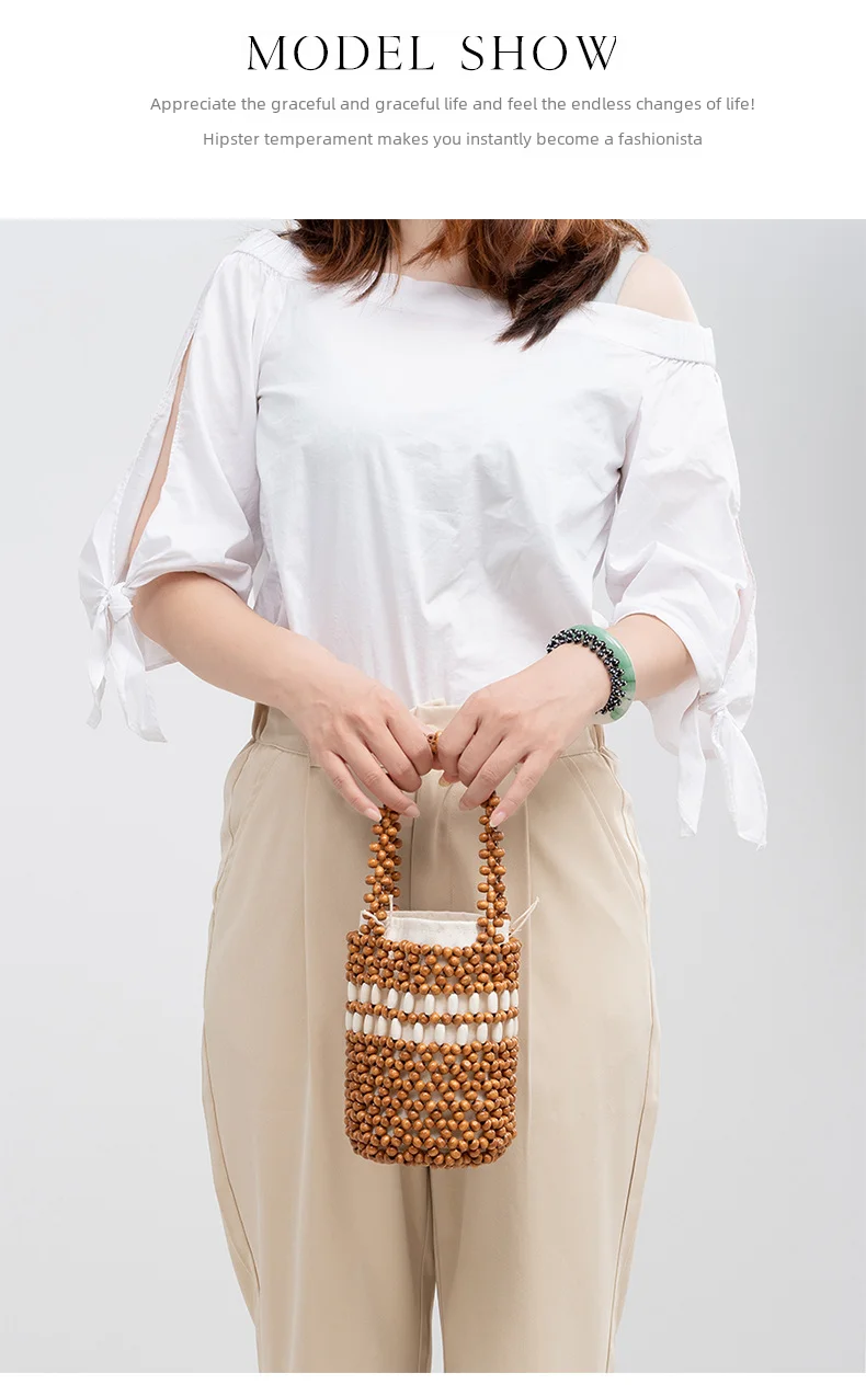 - Durable Material :Made from high-quality wood beads, this handbag is not only stylish but also durable and long-lasting, ensuring it can withstand daily use.