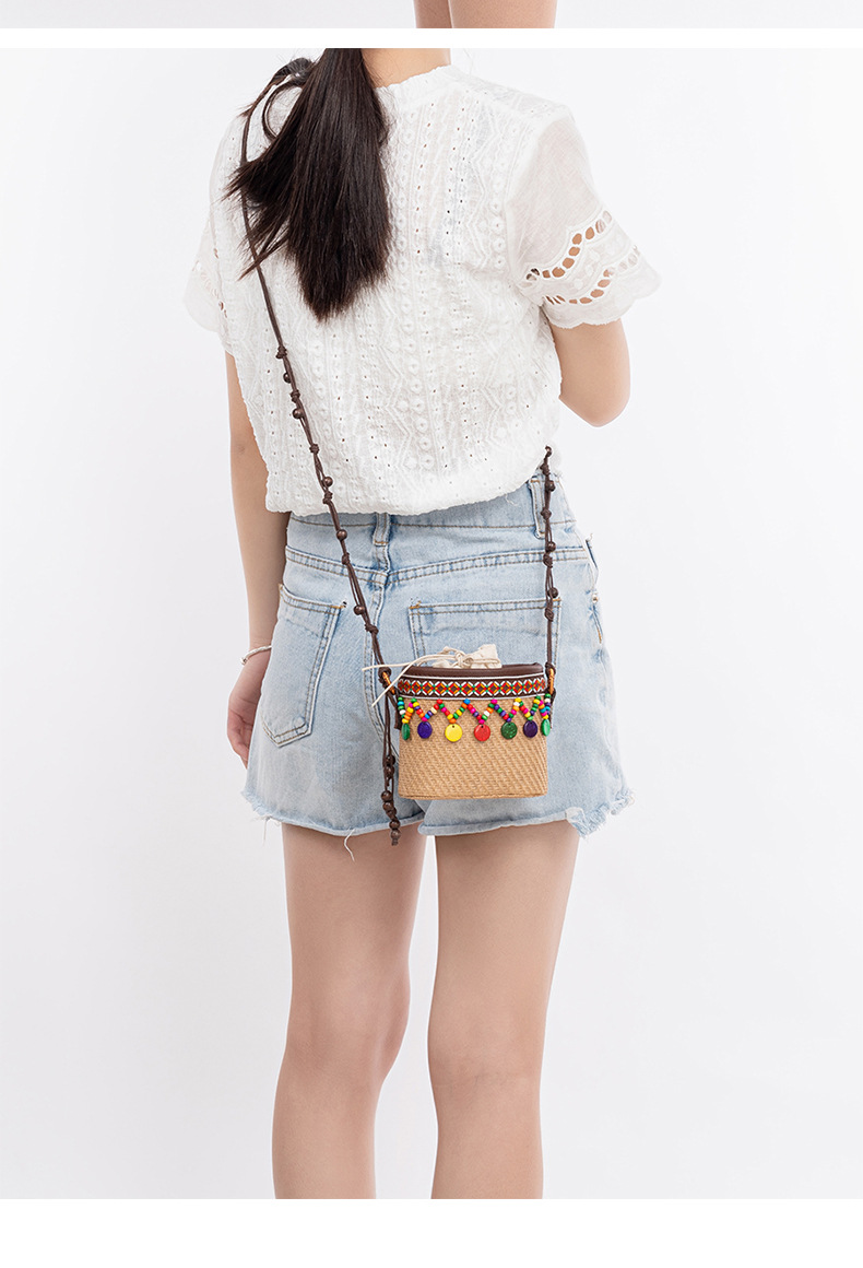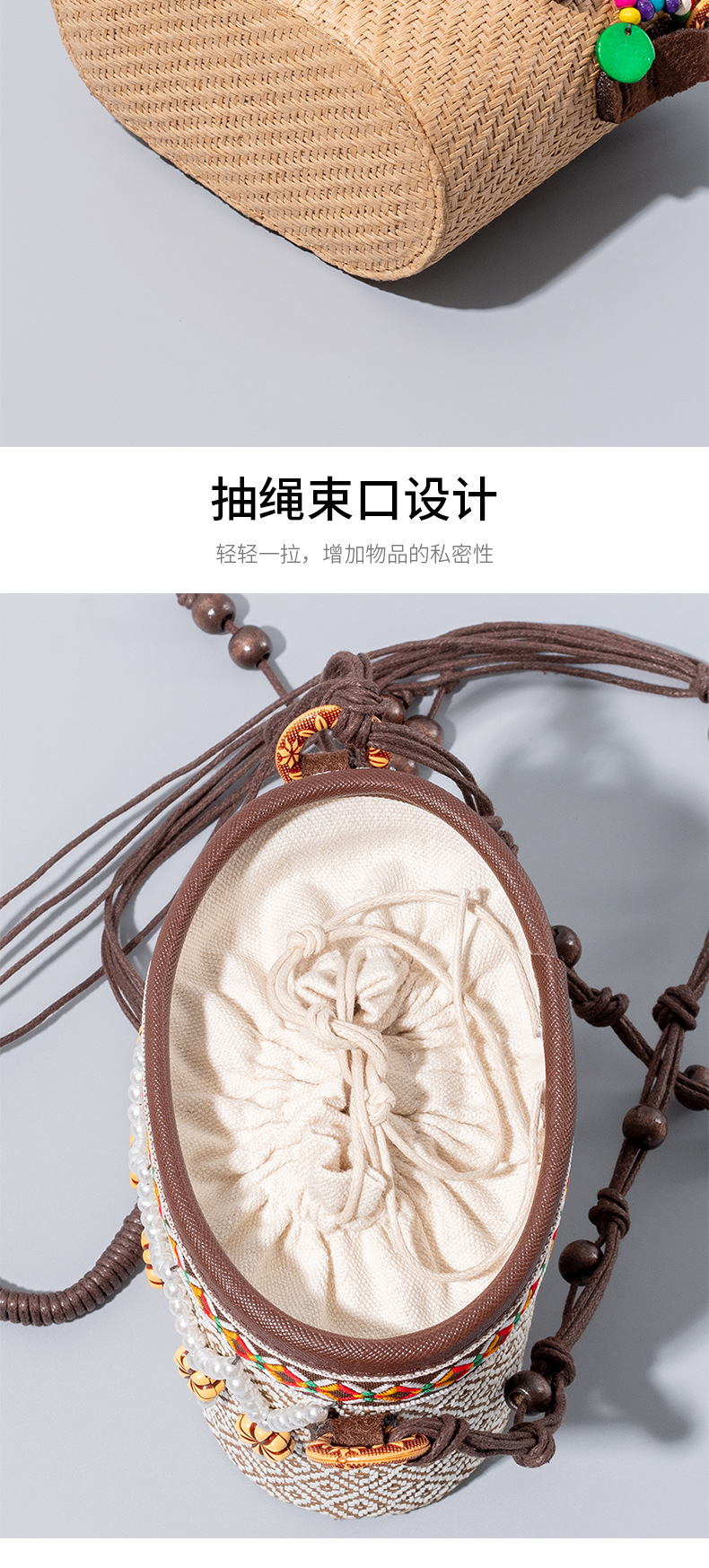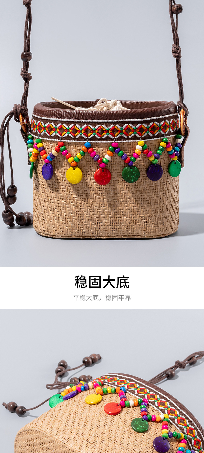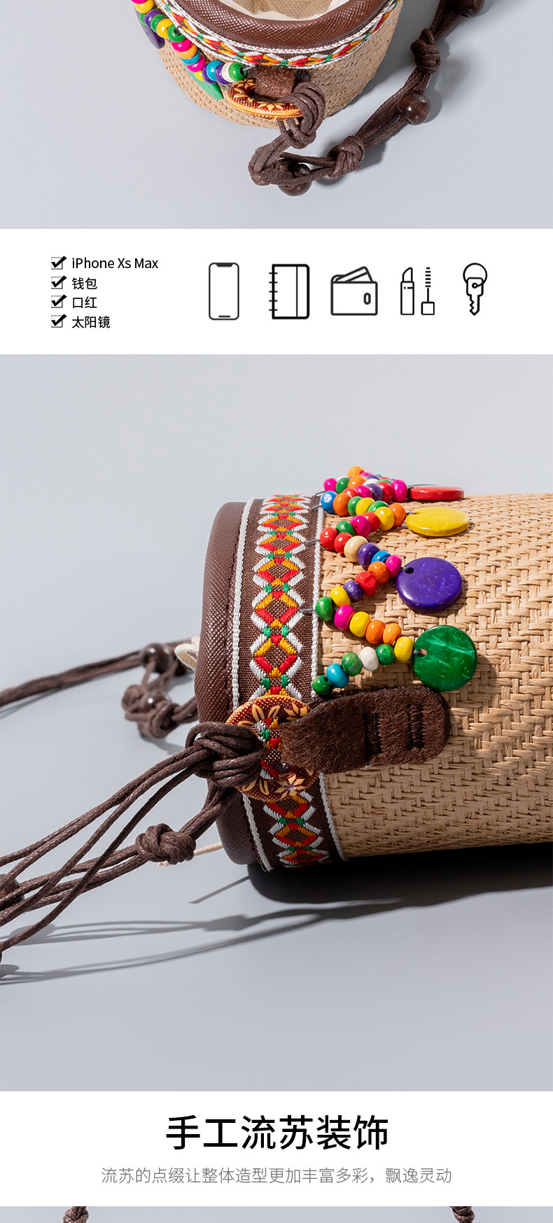 ENSPT手工編織包 歐美串珠草編包海邊沙灘度假斜背單肩包包女