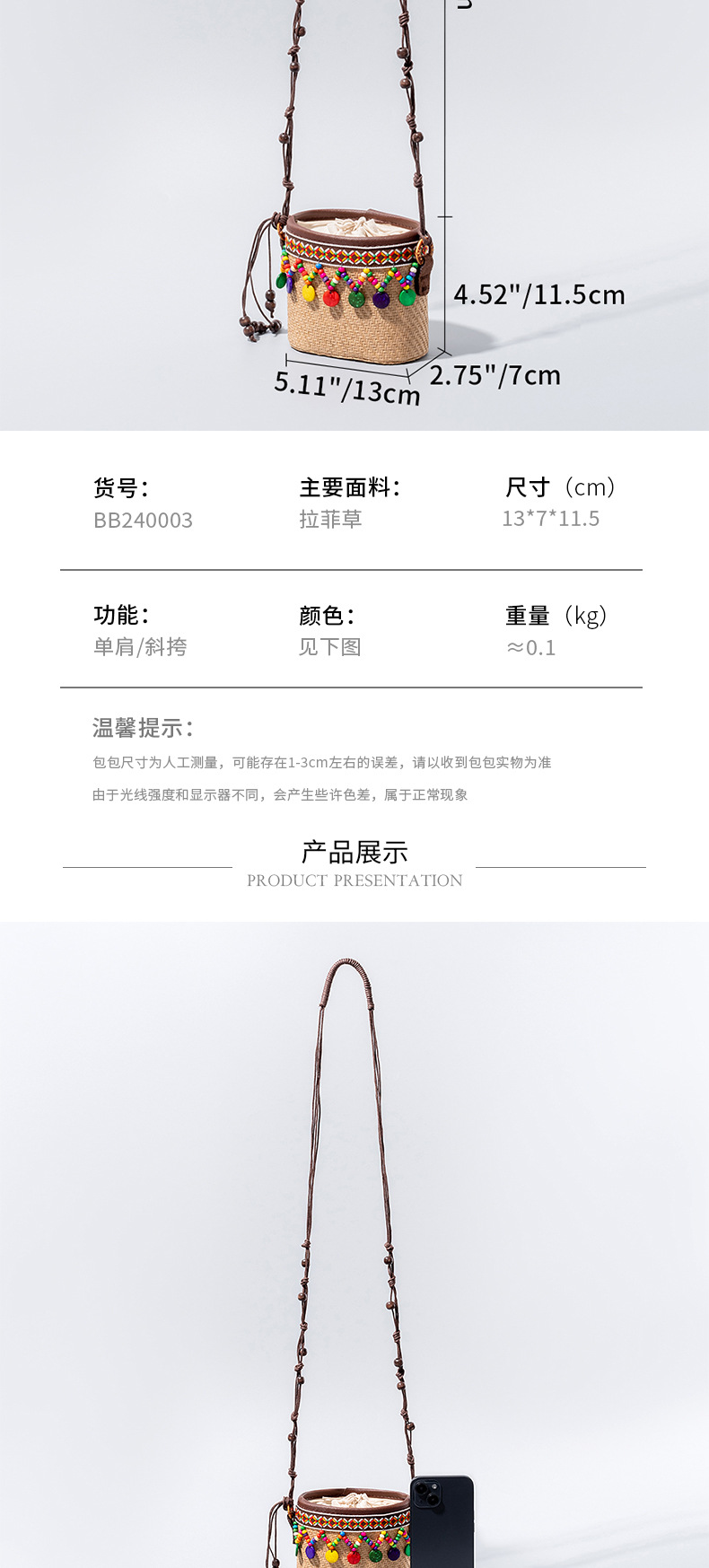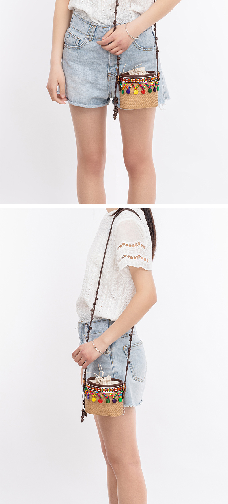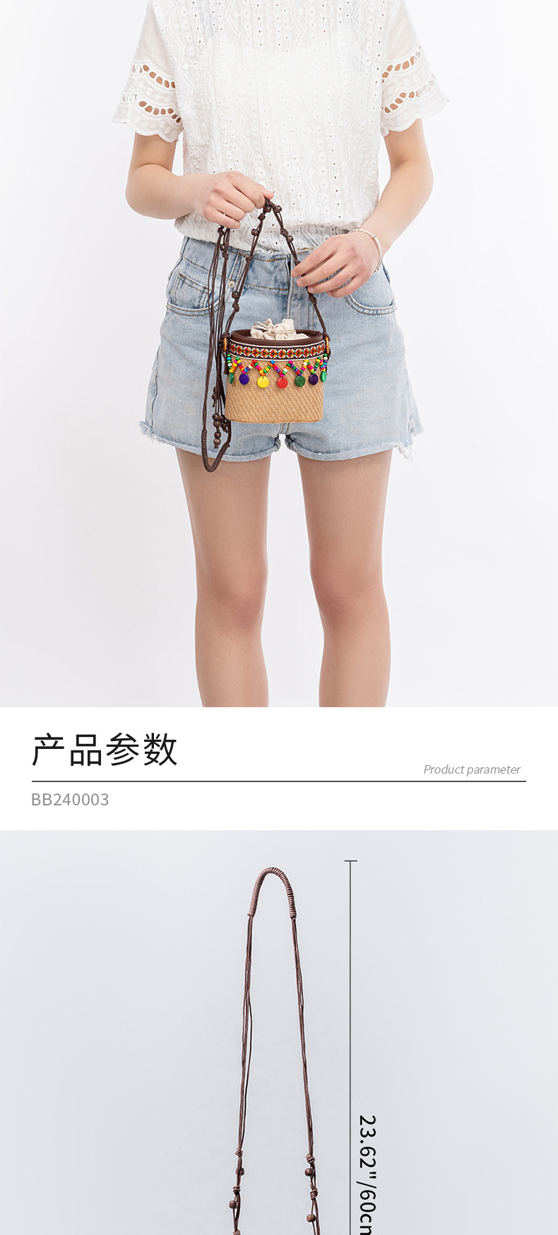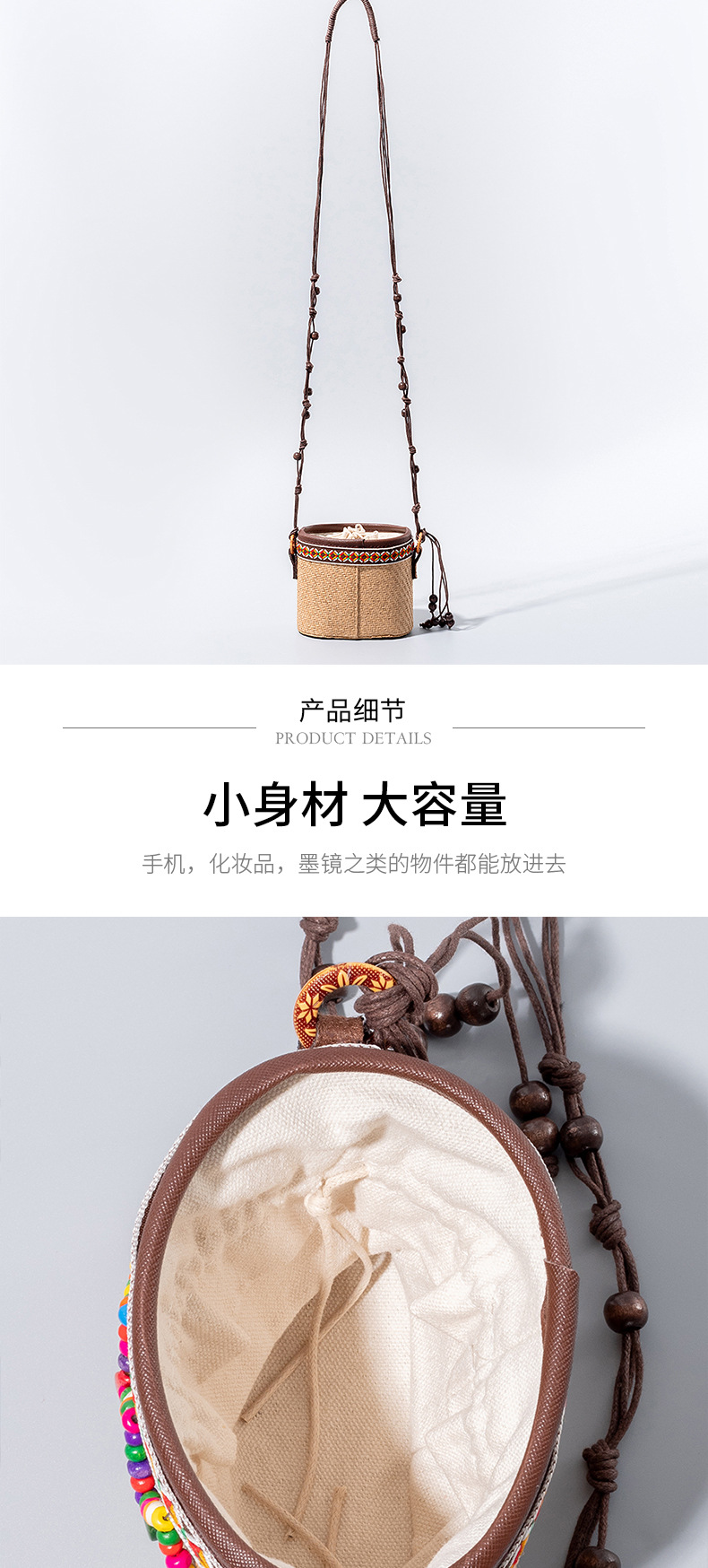 ENSPT手工編織包 歐美串珠草編包海邊沙灘度假斜背單肩包包女