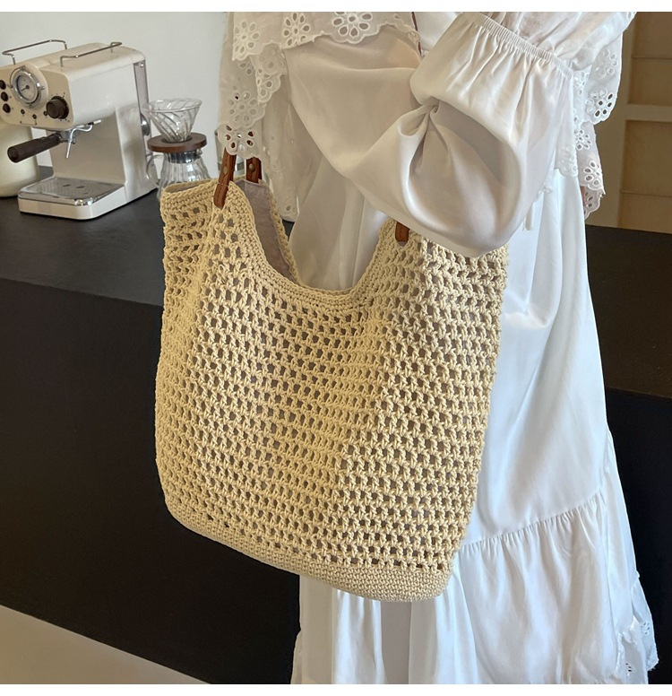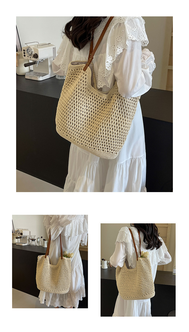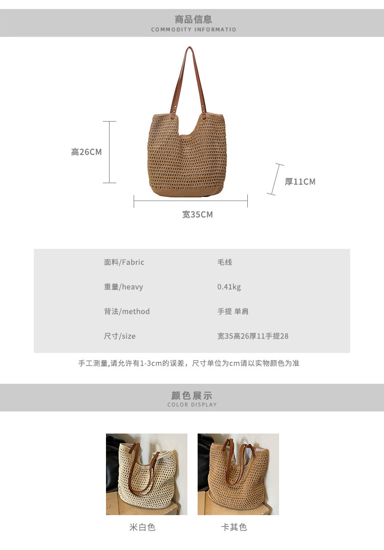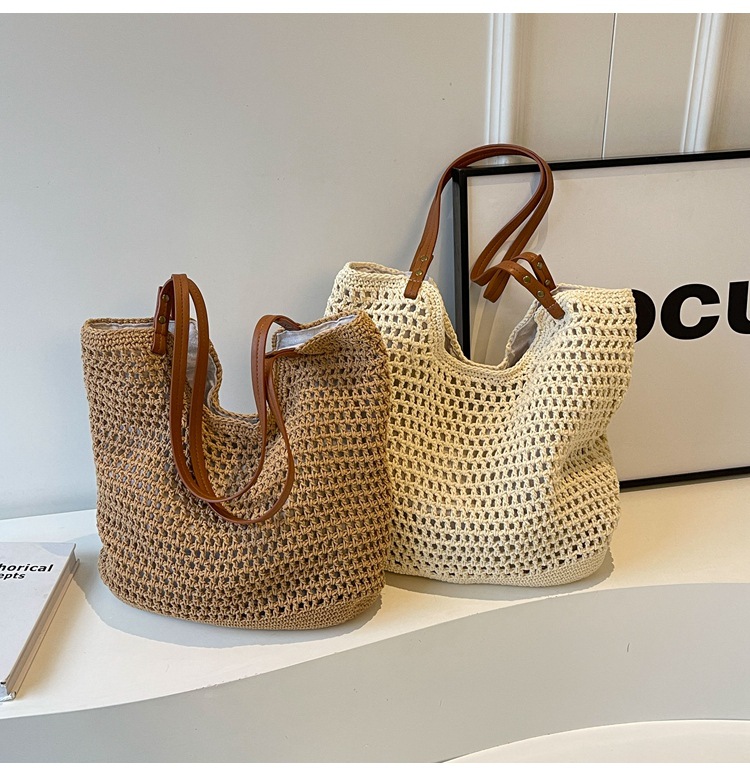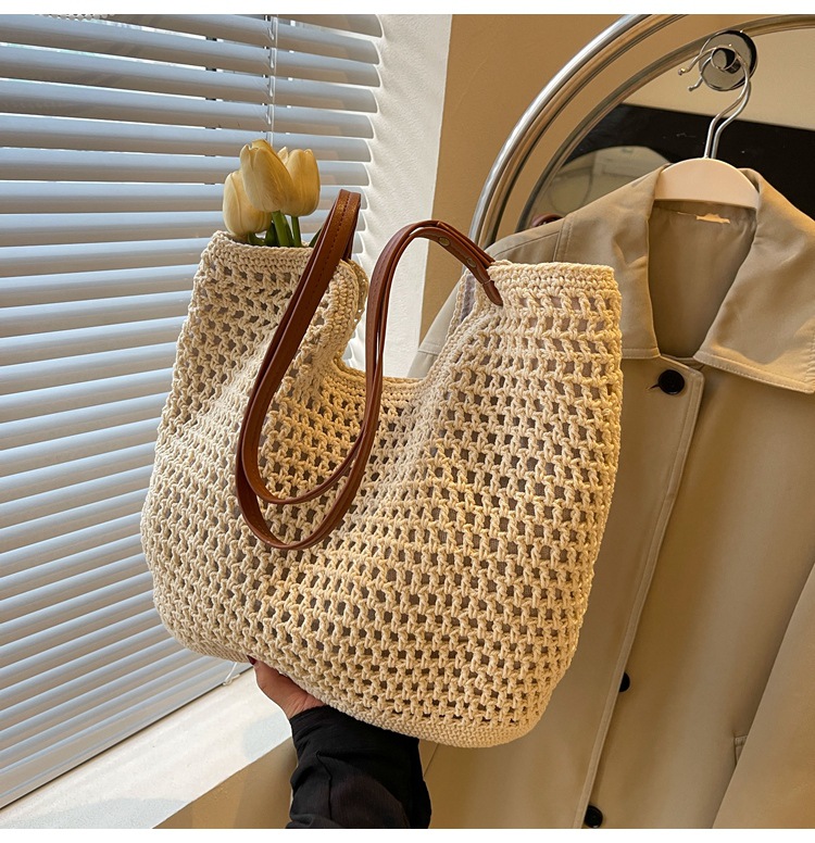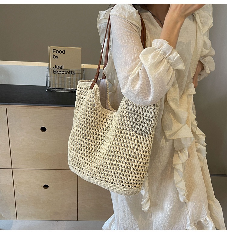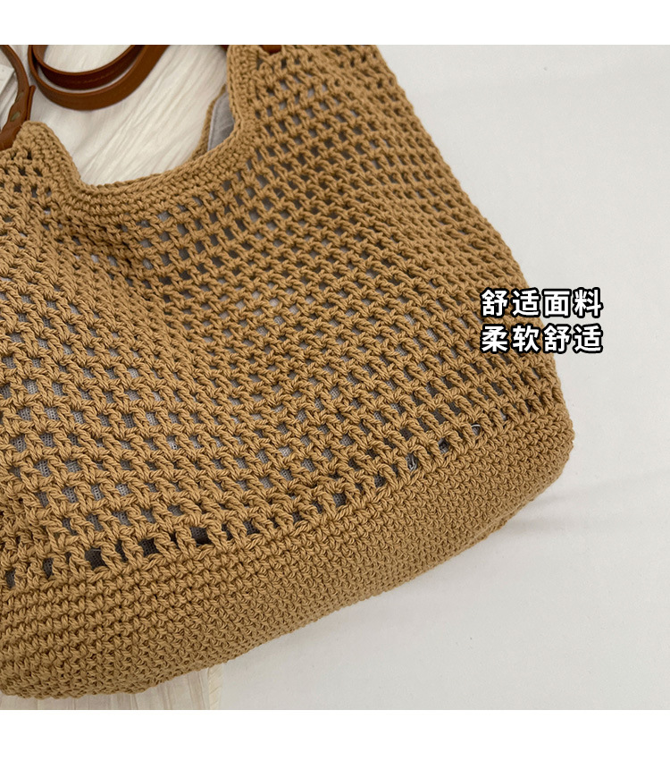 慵嬾大容量編織包包女2025新款針織鏤空單肩托特包休閒度假沙灘包