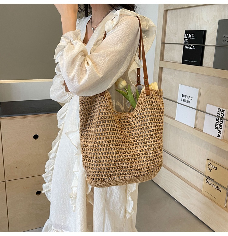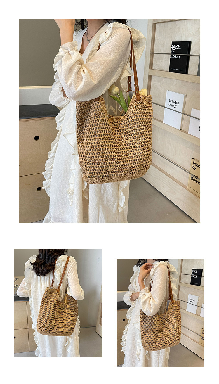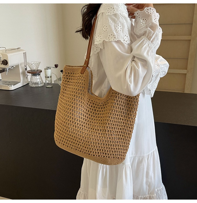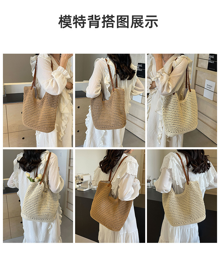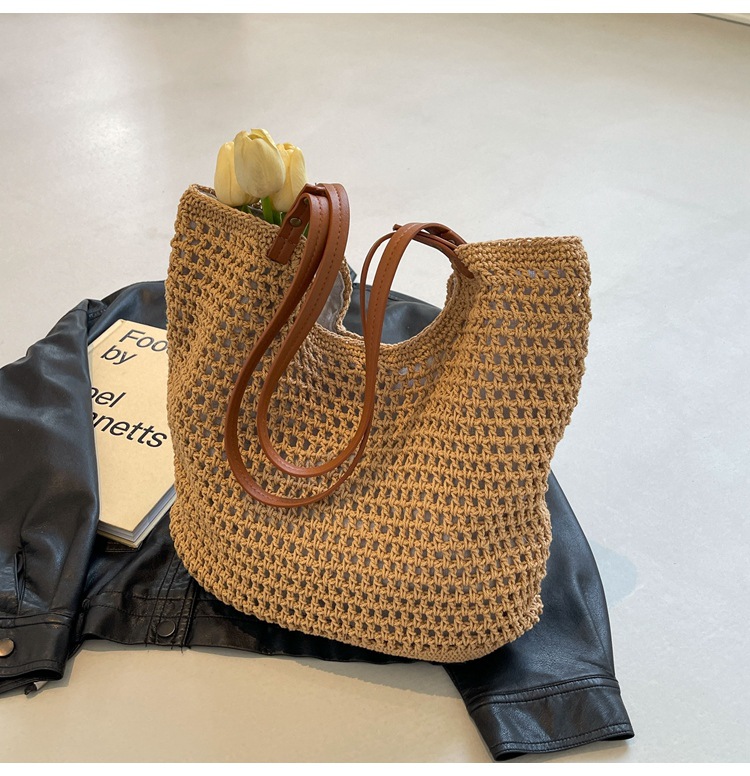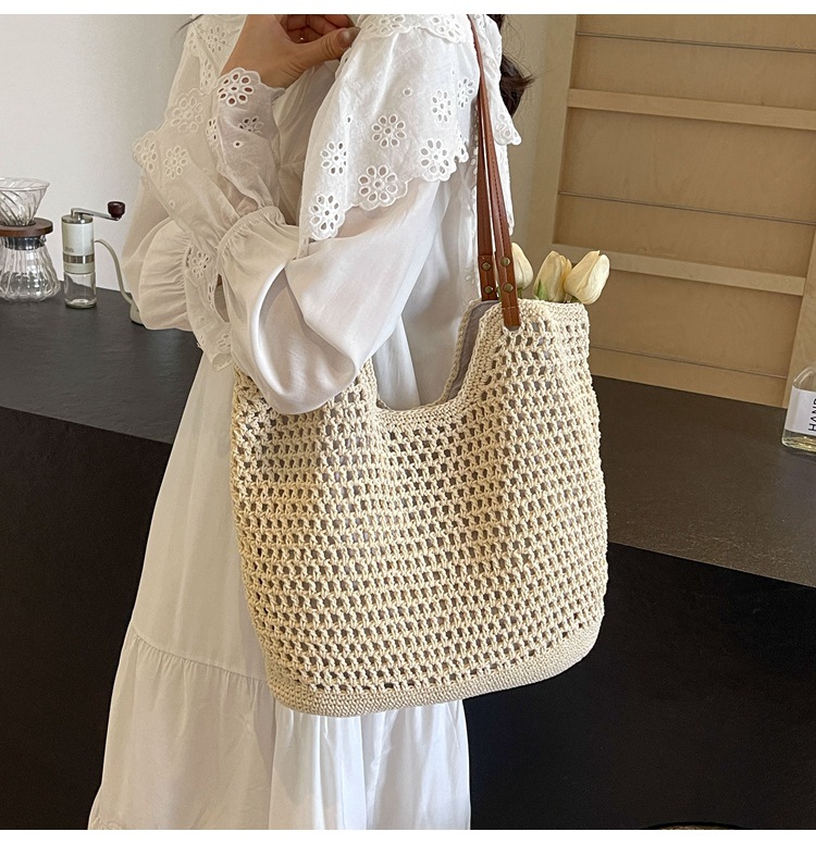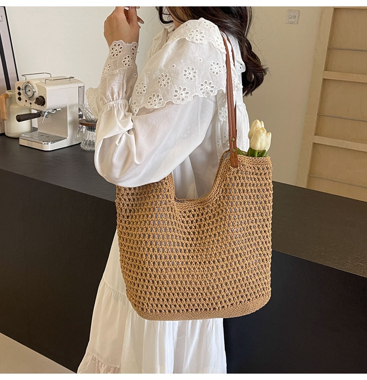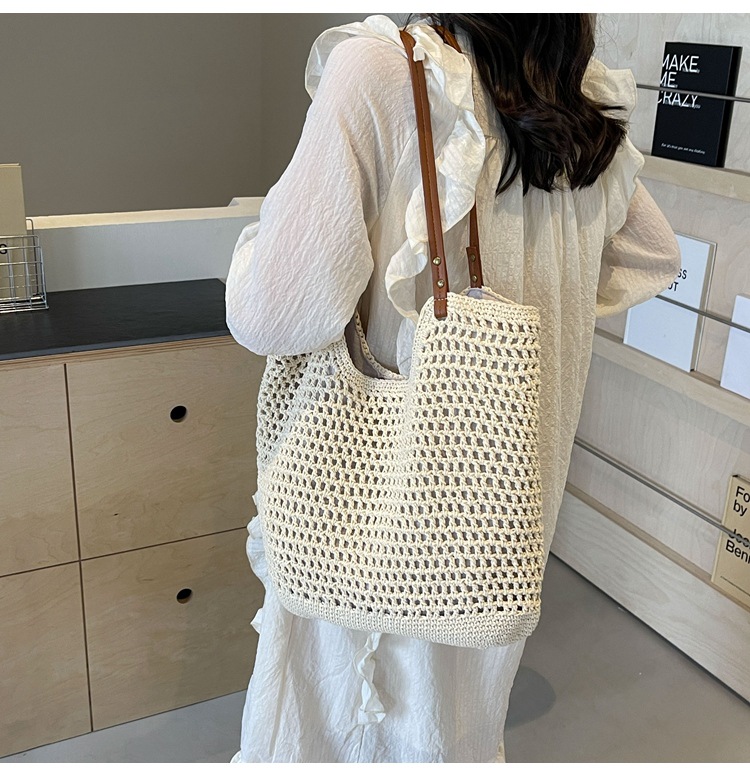 慵嬾大容量編織包包女2025新款針織鏤空單肩托特包休閒度假沙灘包