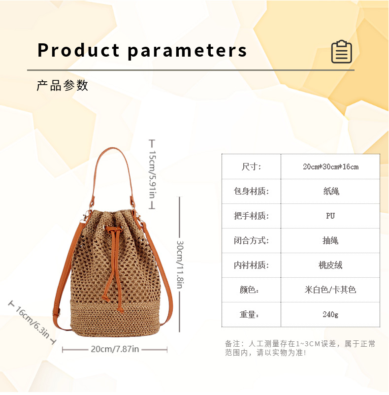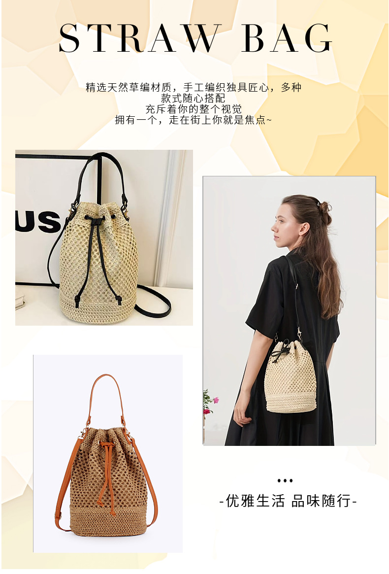 時尚百搭草編包水桶包編織包大容量沙灘包旅行包包女單肩斜後背包