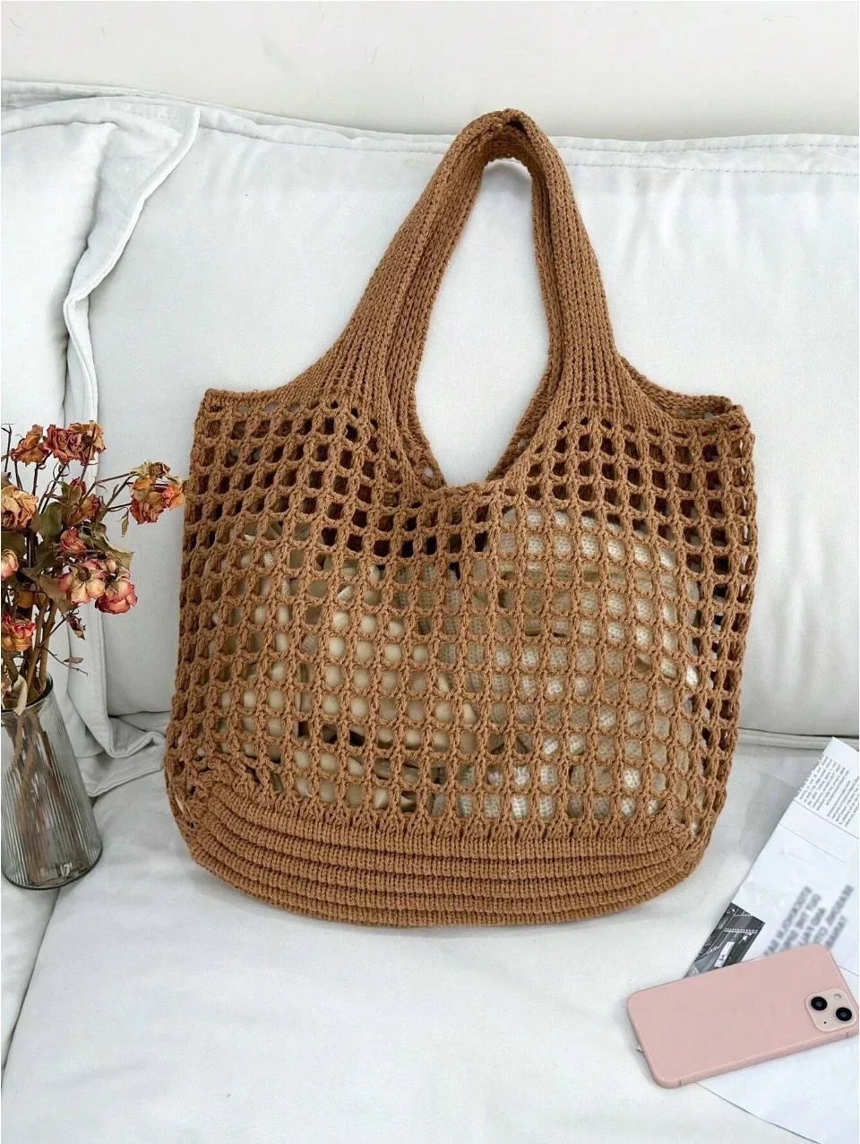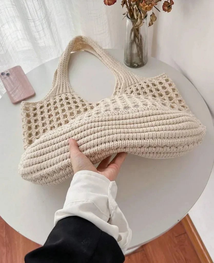 2024新款手提包沙灘度假無性別風簡約大容量針織女包編織包