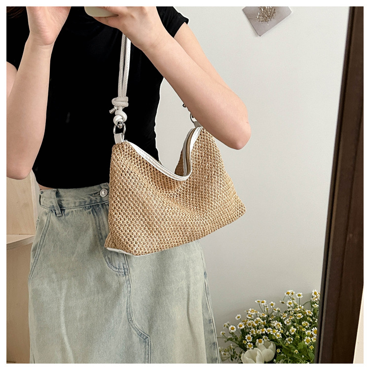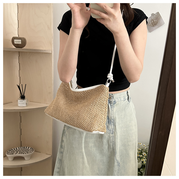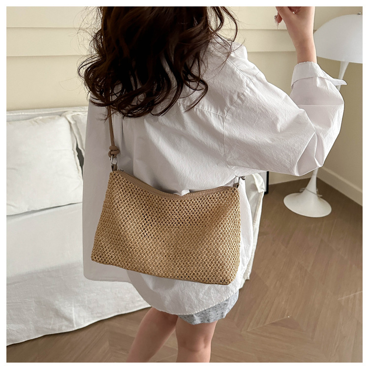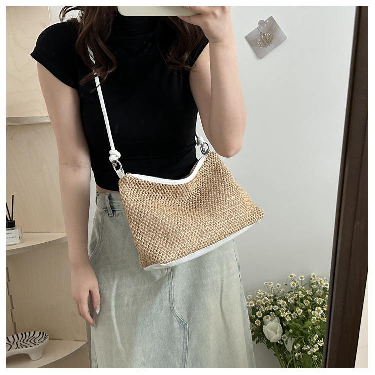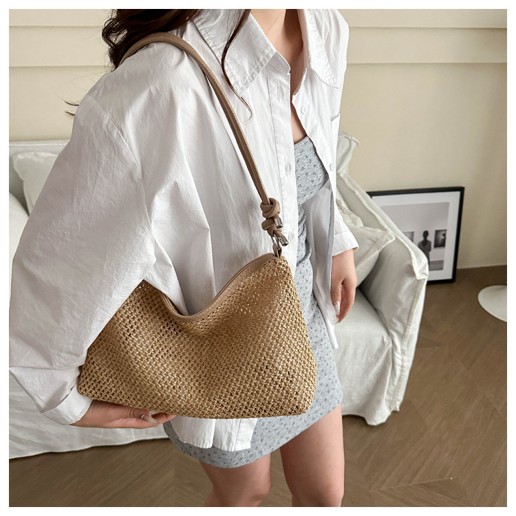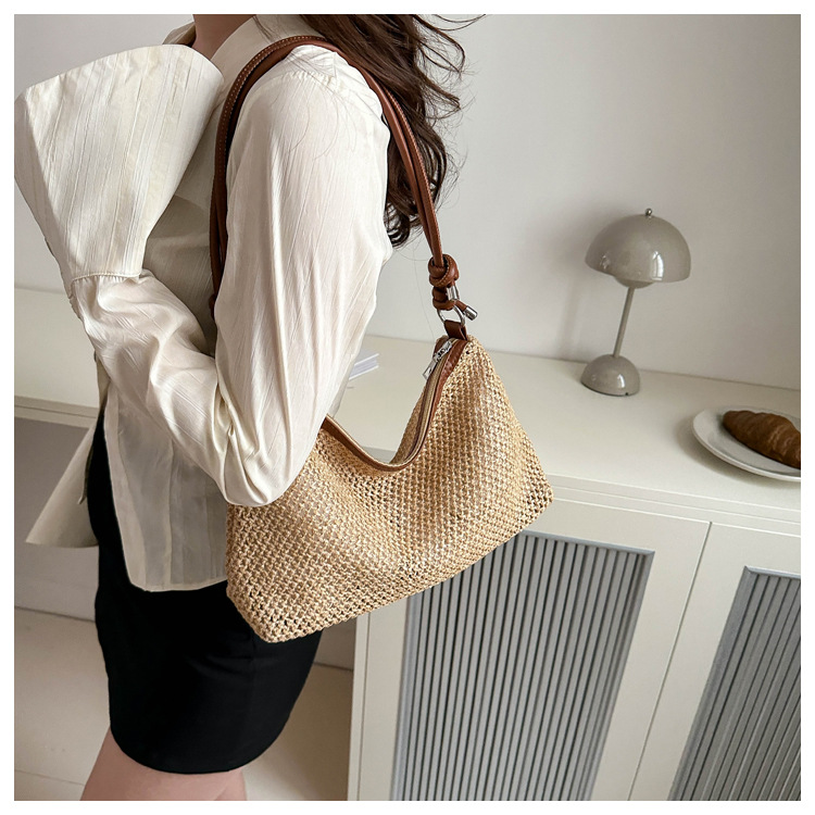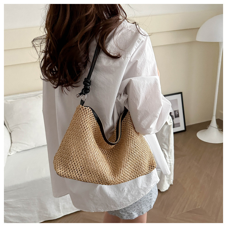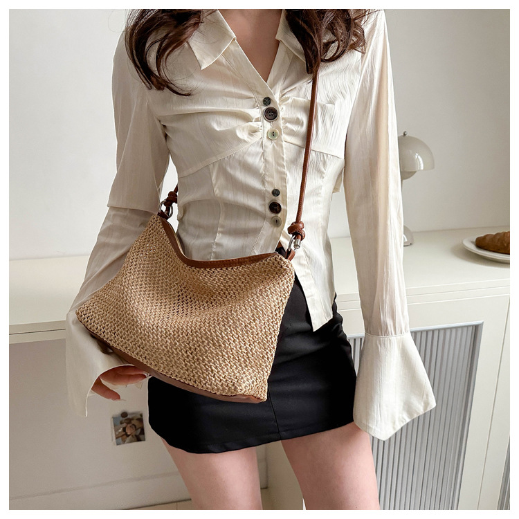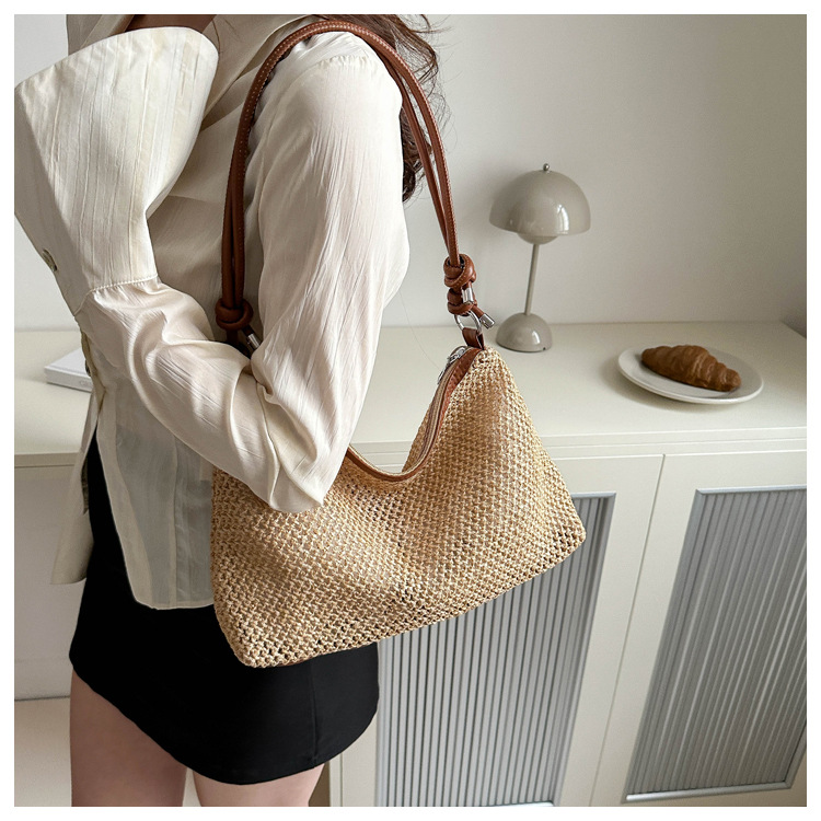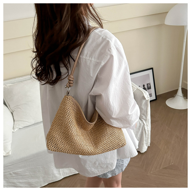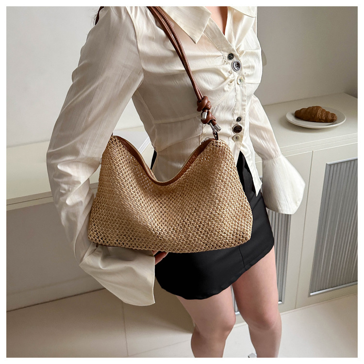 手工編織包包女2024新款潮時尚復古草編托特包百搭大容量單肩包女