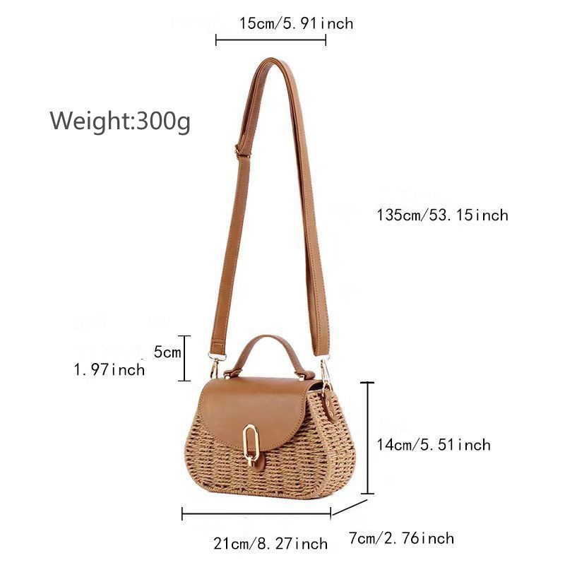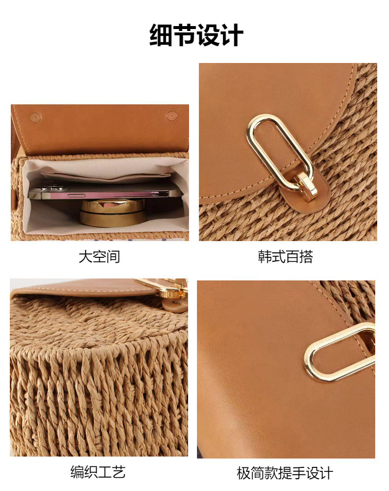 INS時尚海灘斜後背包休閒女包文藝範草編包手提小方包女包包編織包
