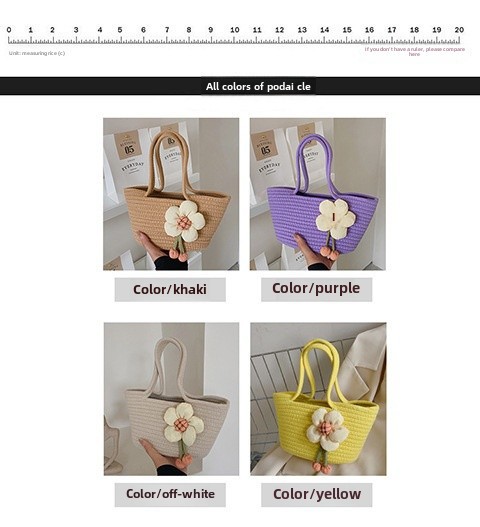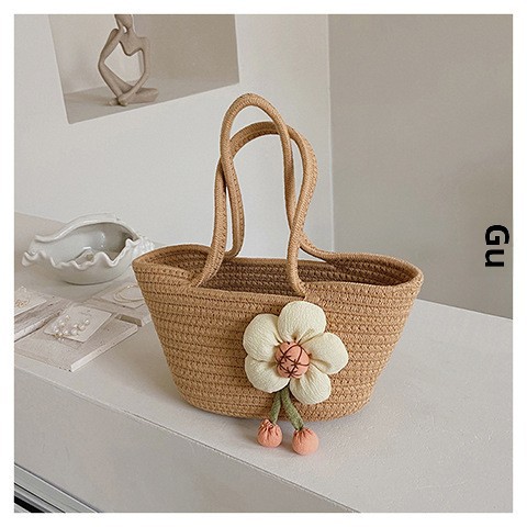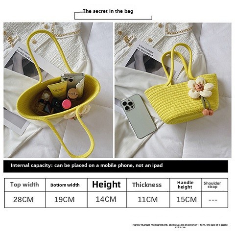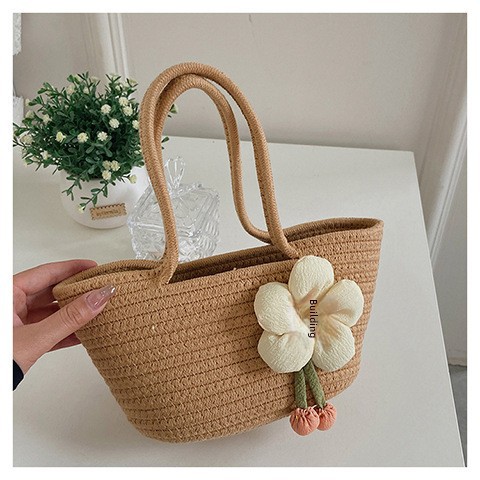 女包休閒棉線肩包草編包可愛花朵斜背手提包編織包拎包度假沙灘包