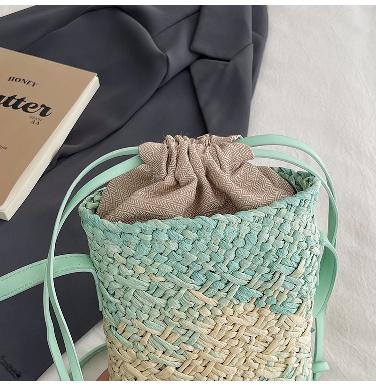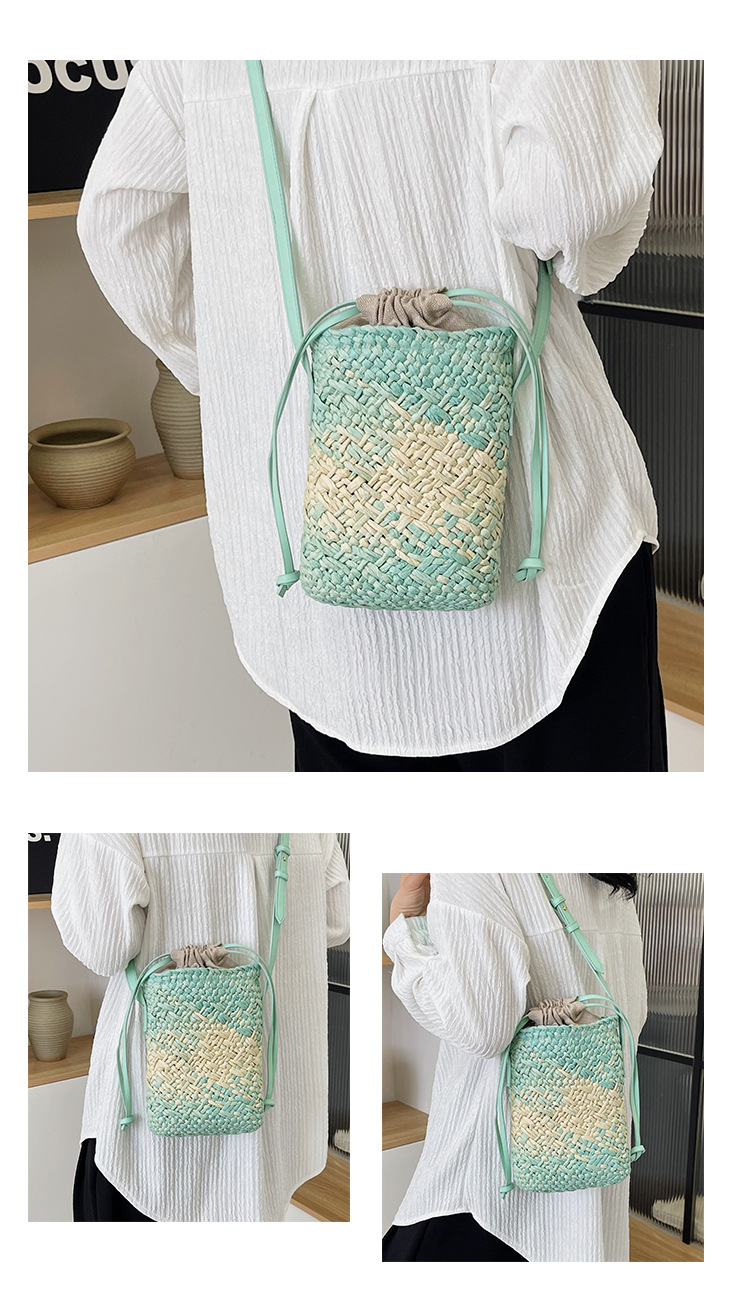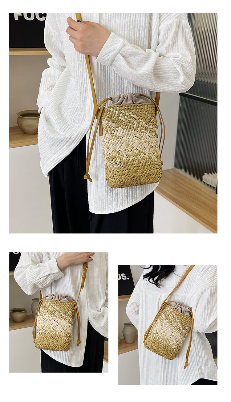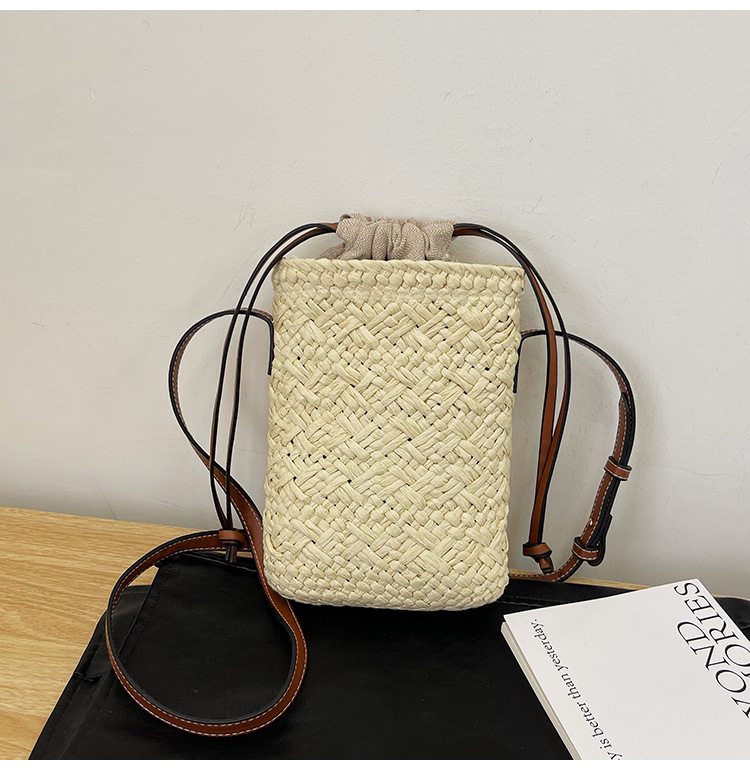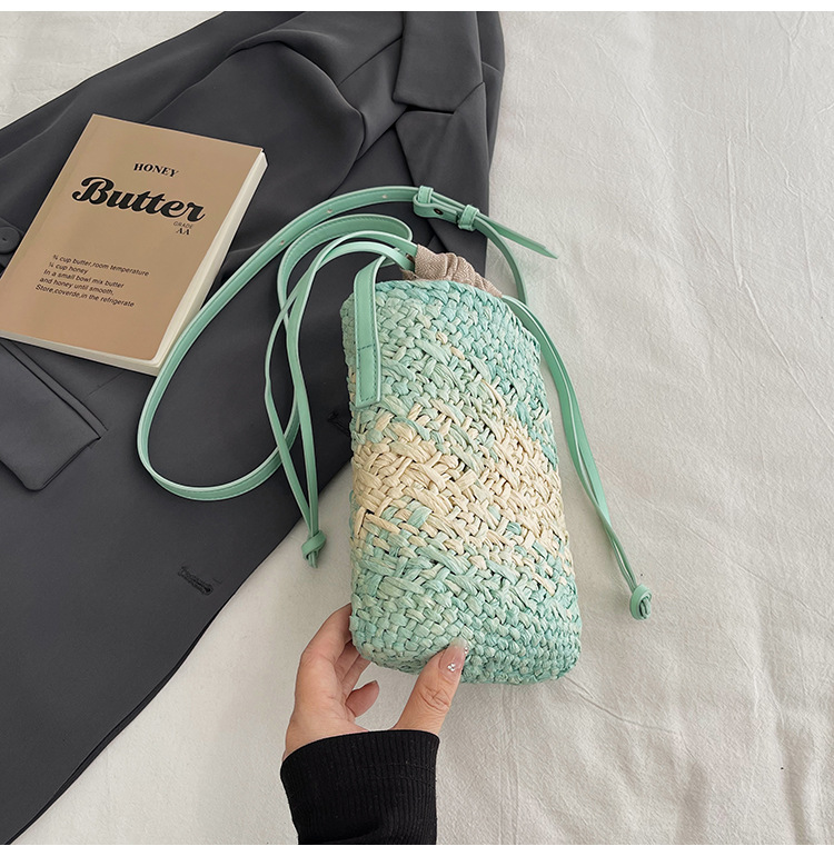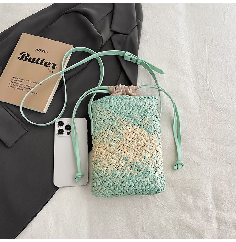 羅家同款斜背手機包手工編織包時尚沙灘度假草編包單肩包包包女