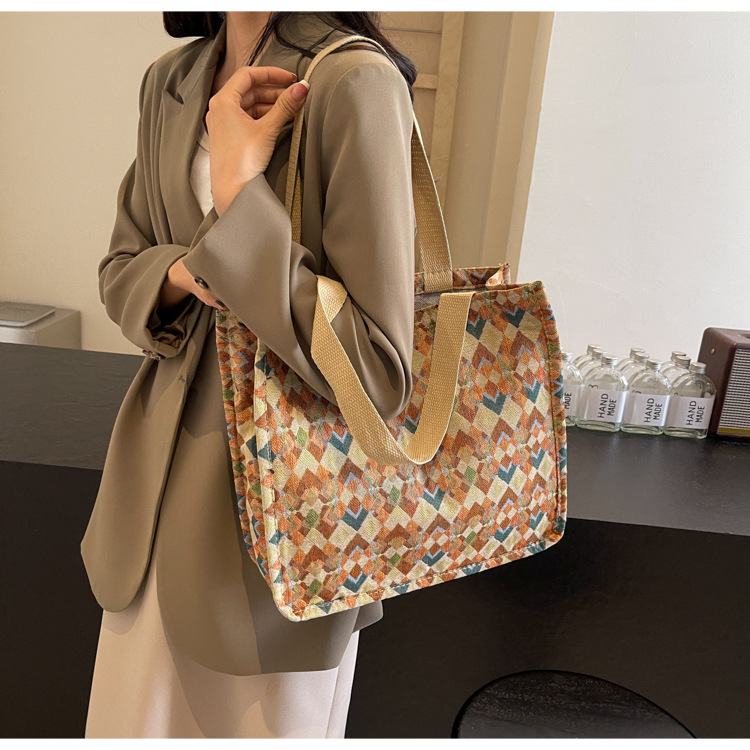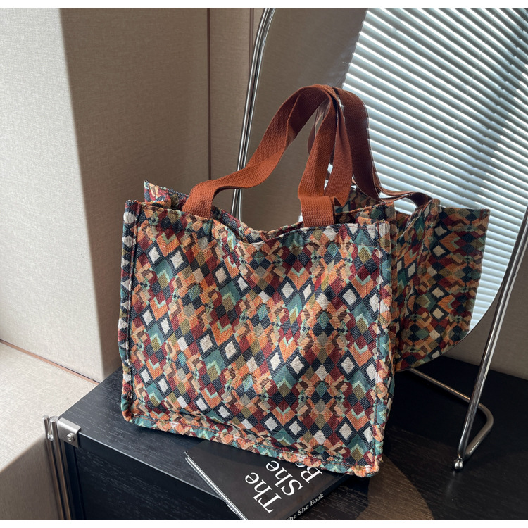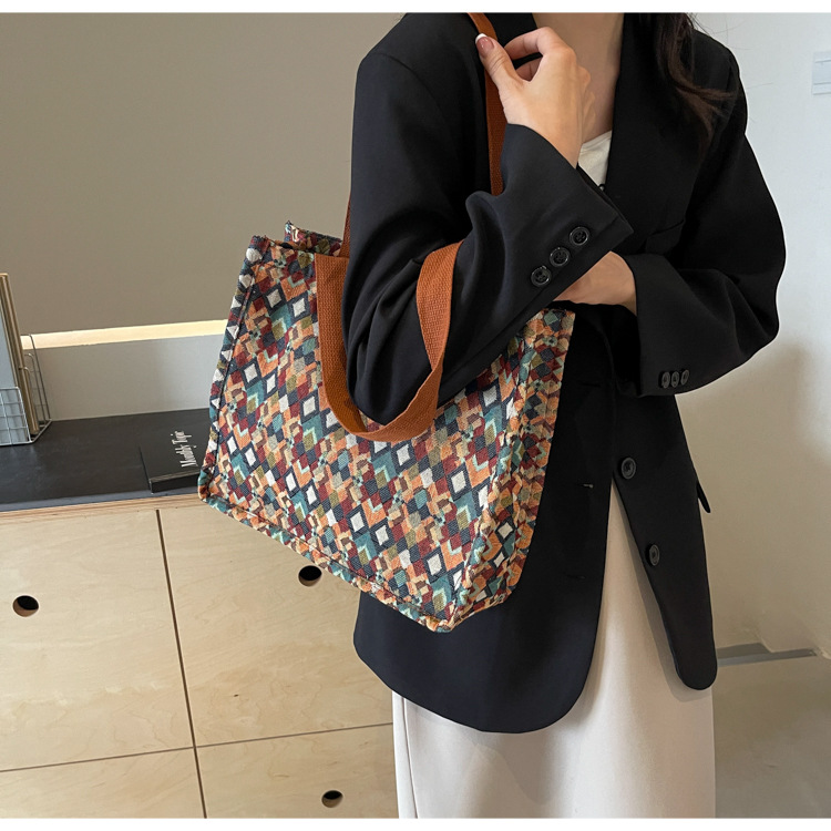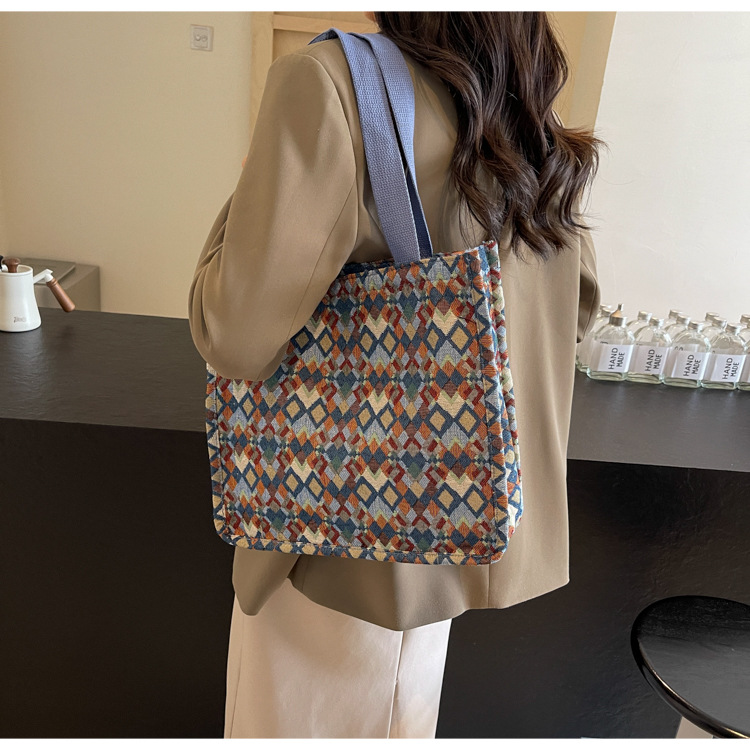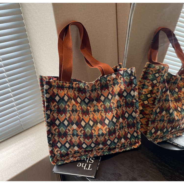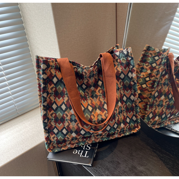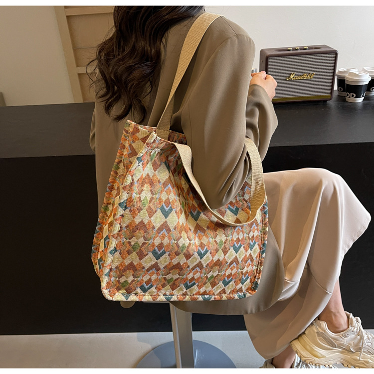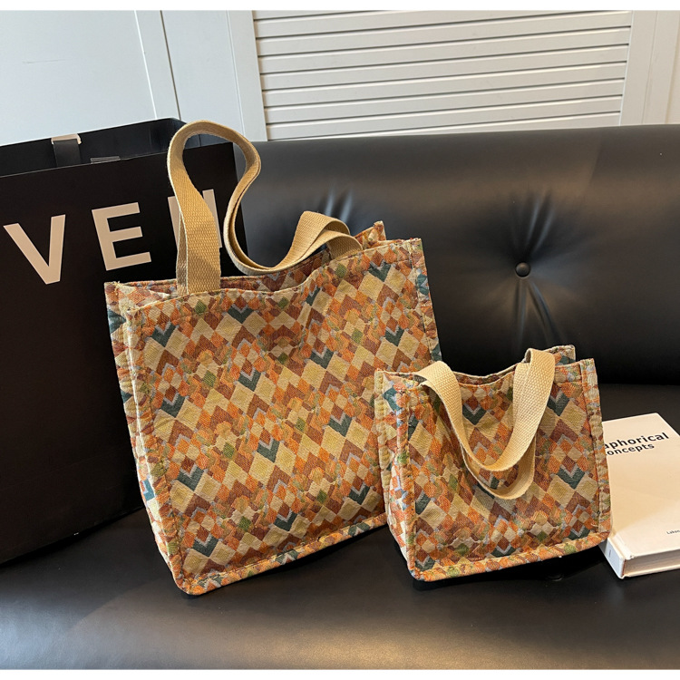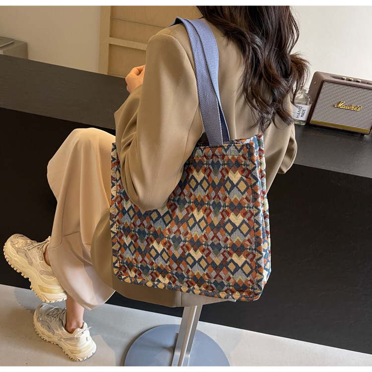 小衆西米亞托特包女ins2024新款網紅帆布包大容量通勤單肩斜後背包