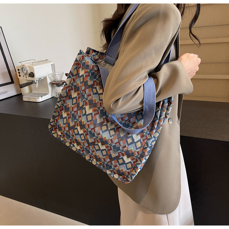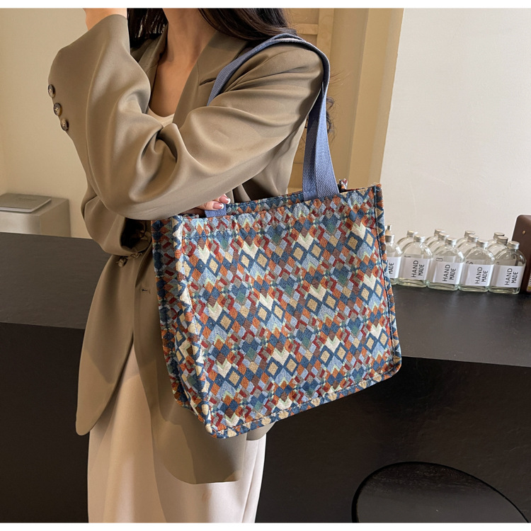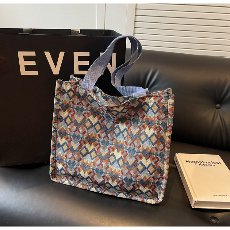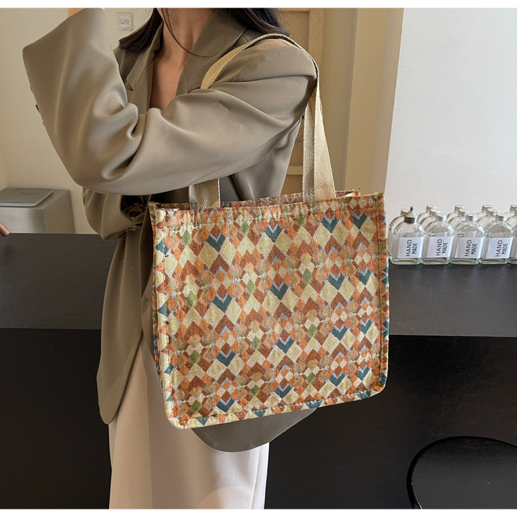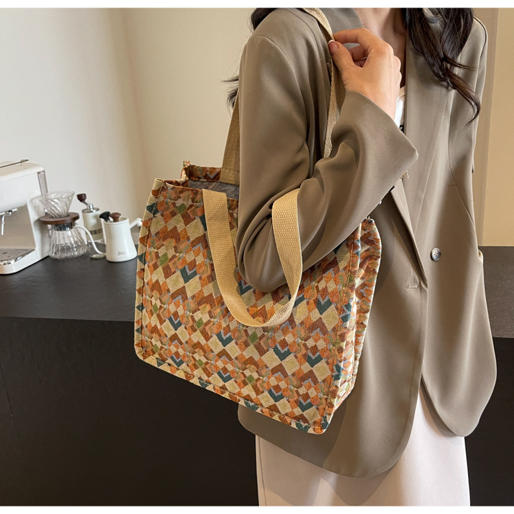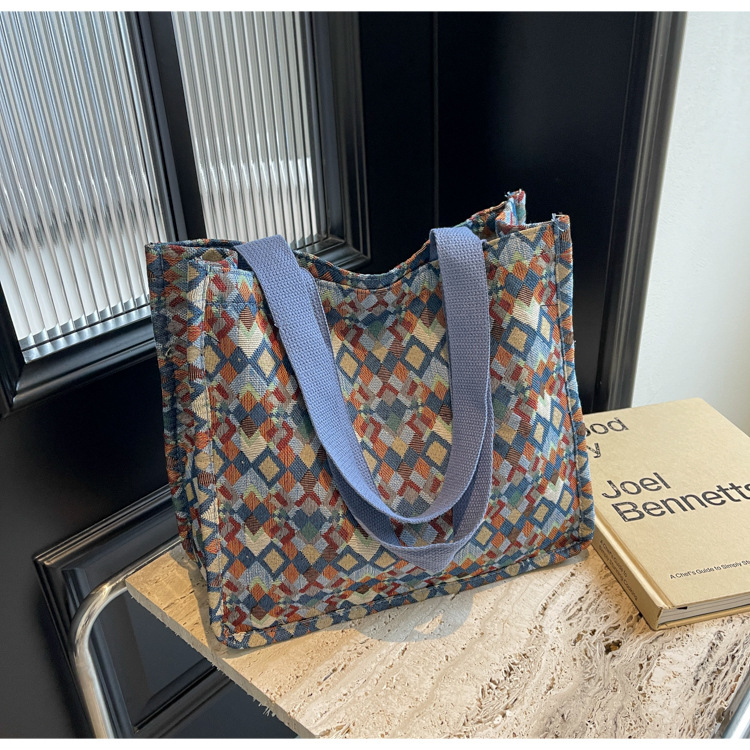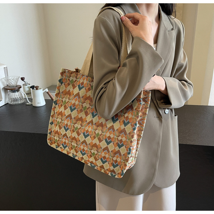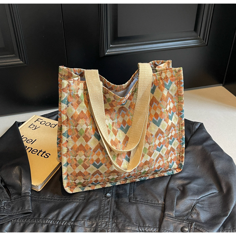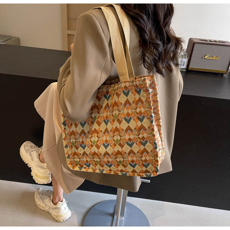 小衆西米亞托特包女ins2024新款網紅帆布包大容量通勤單肩斜後背包