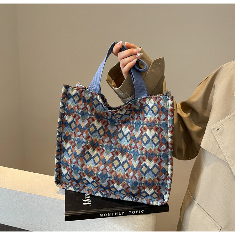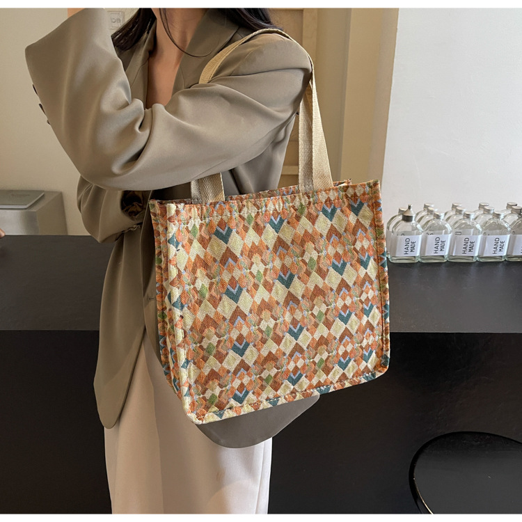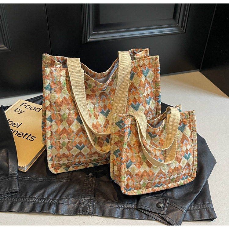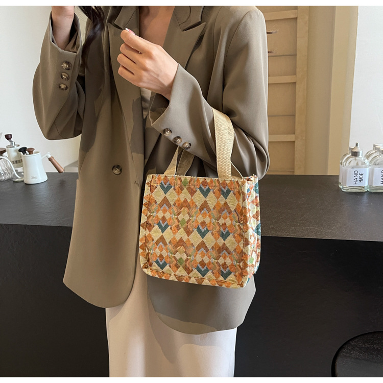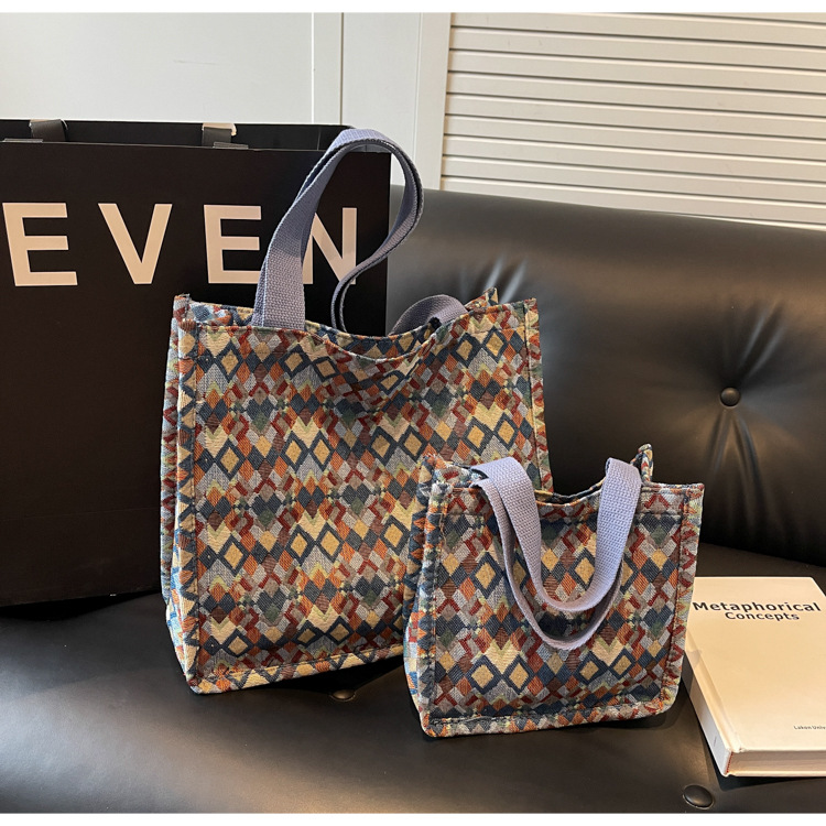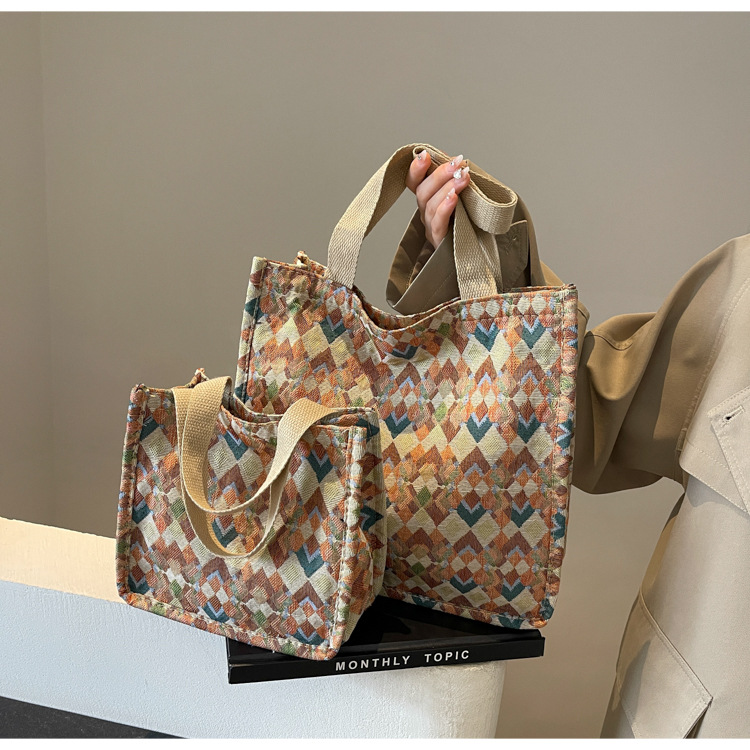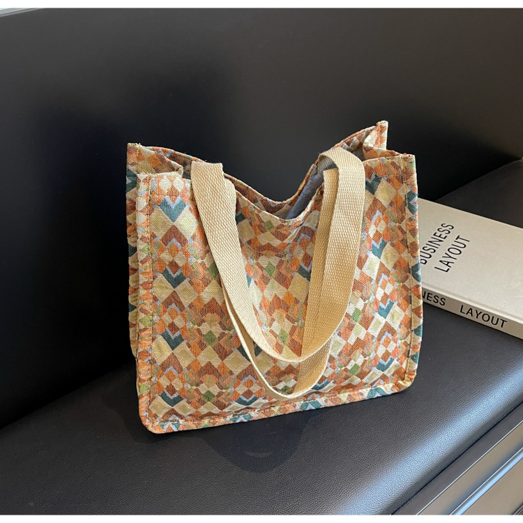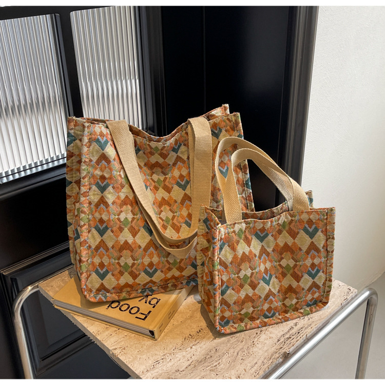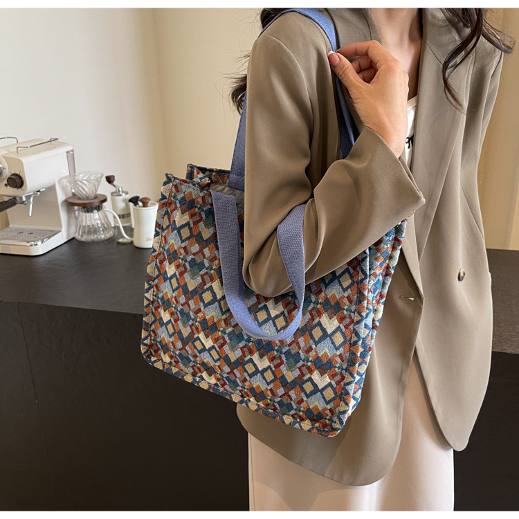 小衆西米亞托特包女ins2024新款網紅帆布包大容量通勤單肩斜後背包