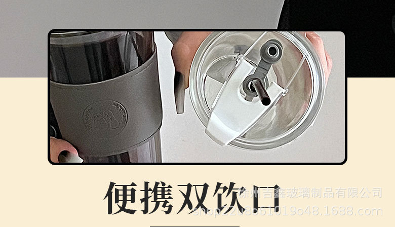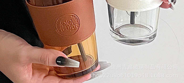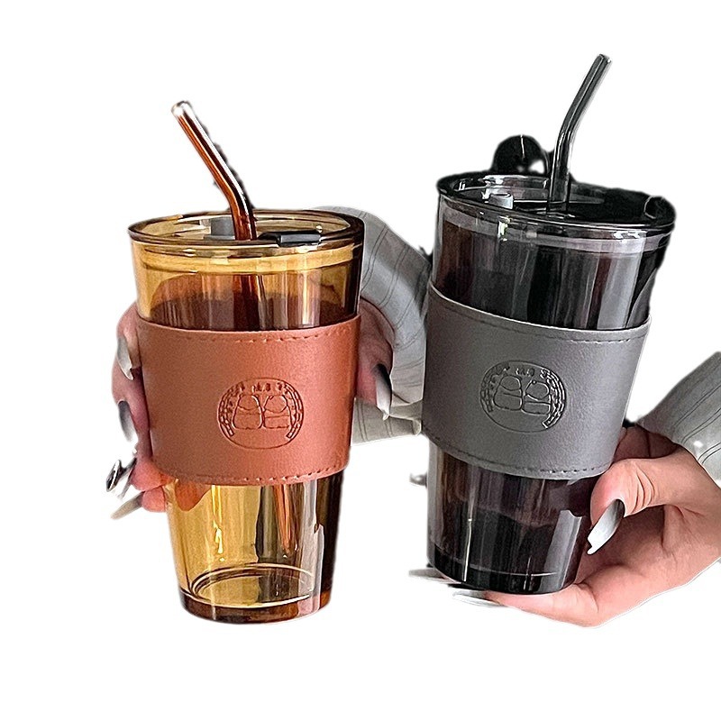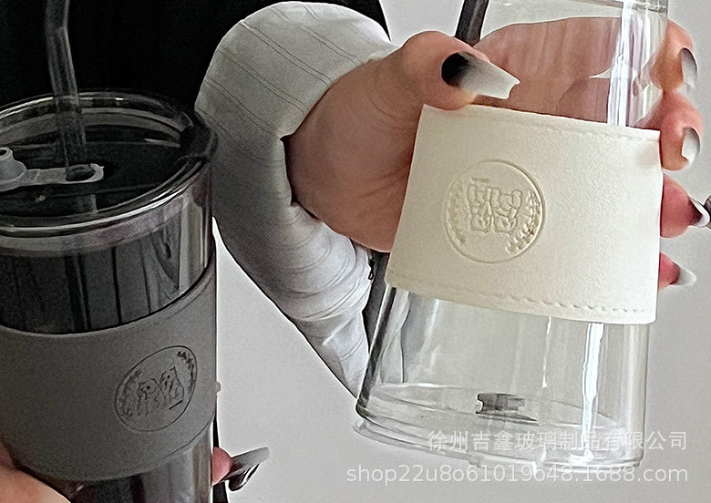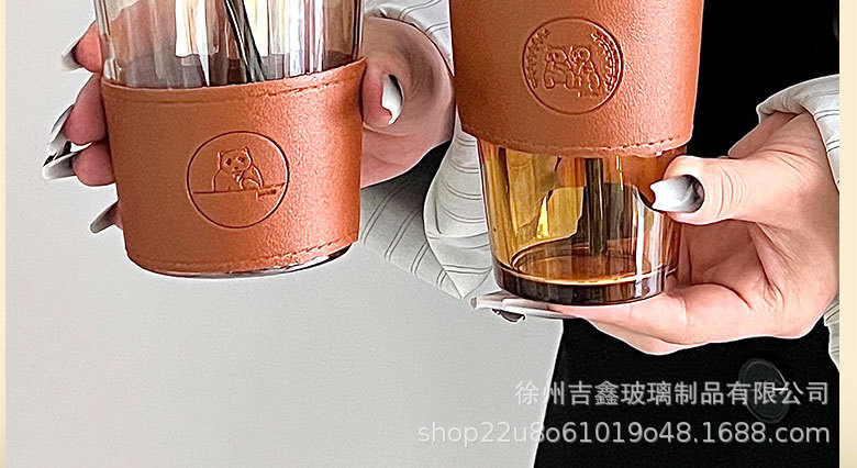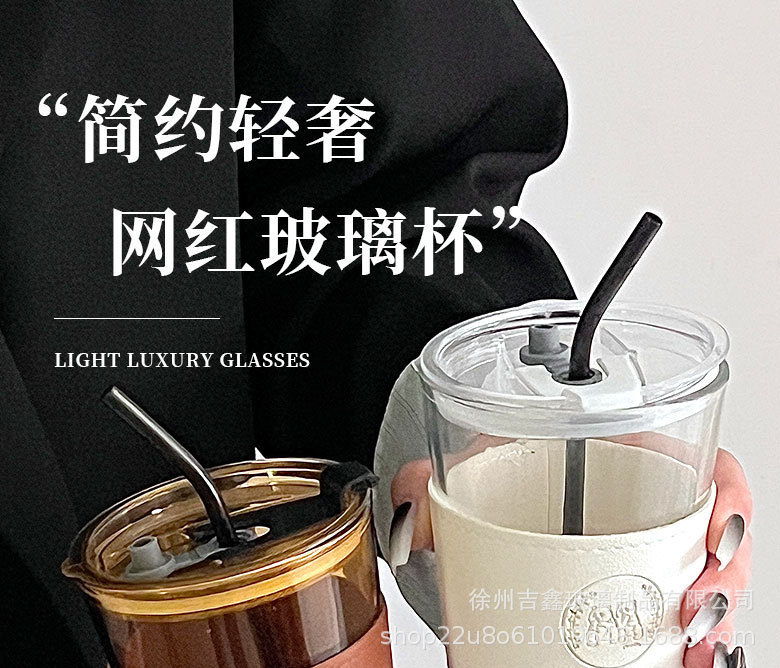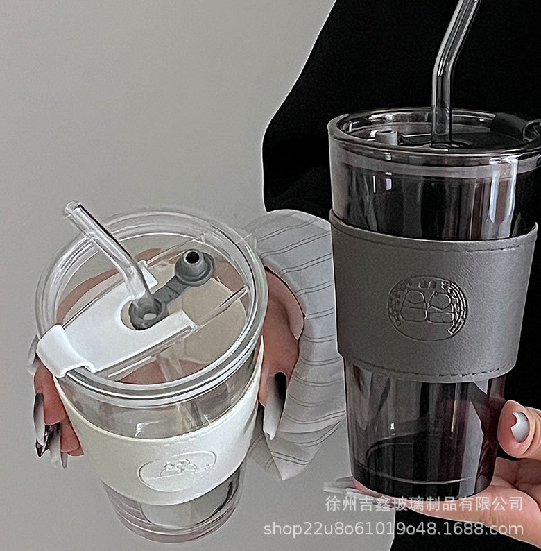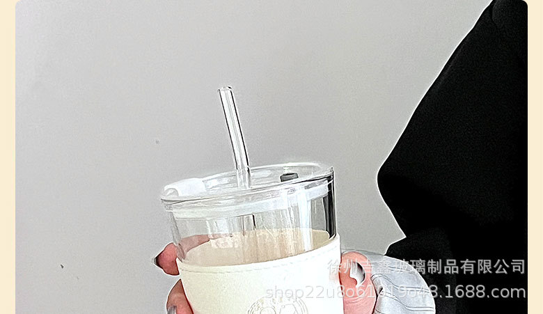 竹節杯吸琯吸水杯女熊貓玻璃杯大容量隔熱果汁飲料咖啡杯