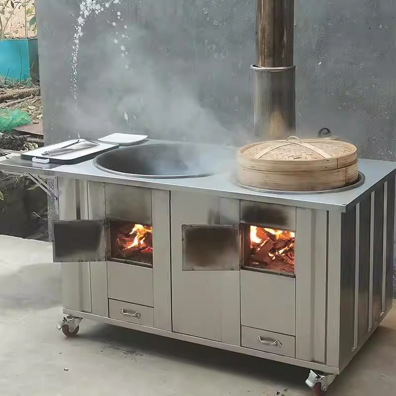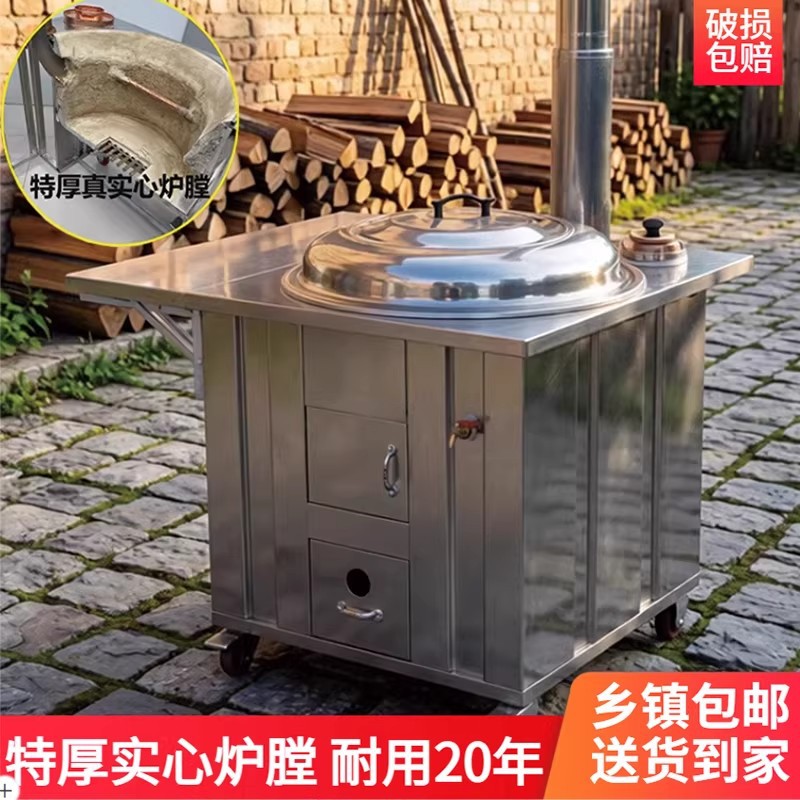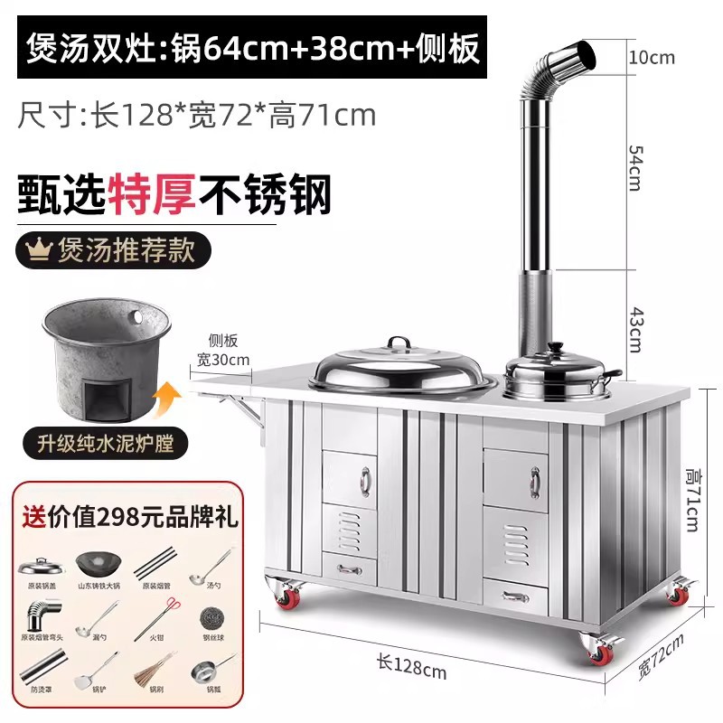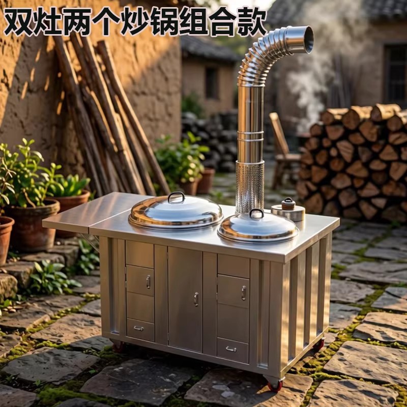 柴火灶農村家用燒木柴不鏽鋼土灶大鍋台鐵鍋地鍋灶戶外移動雙灶爐