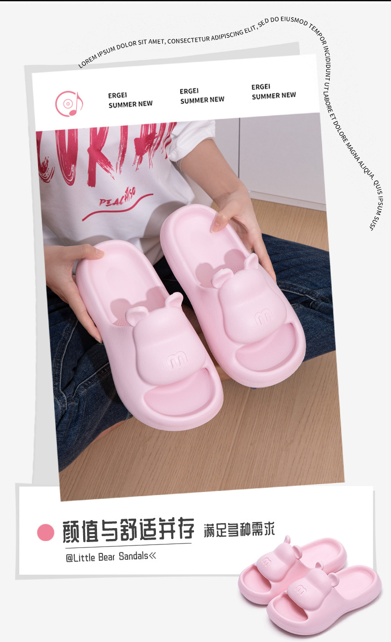 減震耐磨一字拖涼拖鞋外穿EVA踩屎感厚底拖m熊防滑家居拖鞋小熊