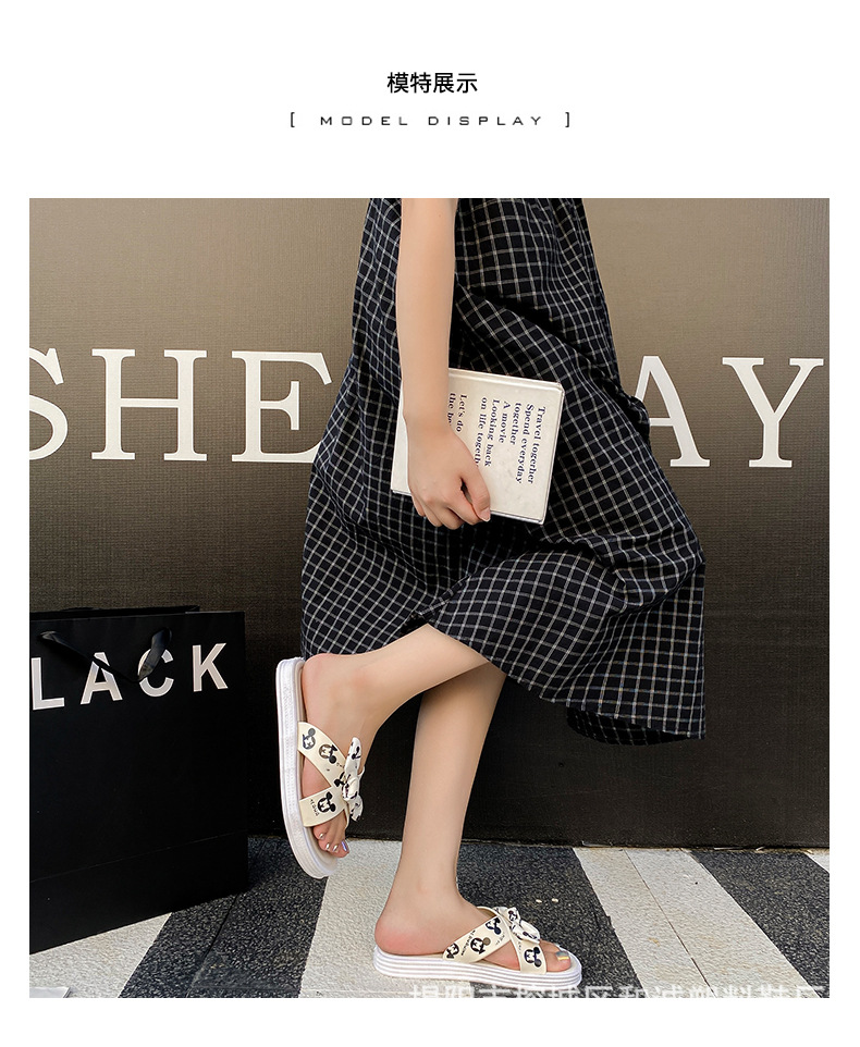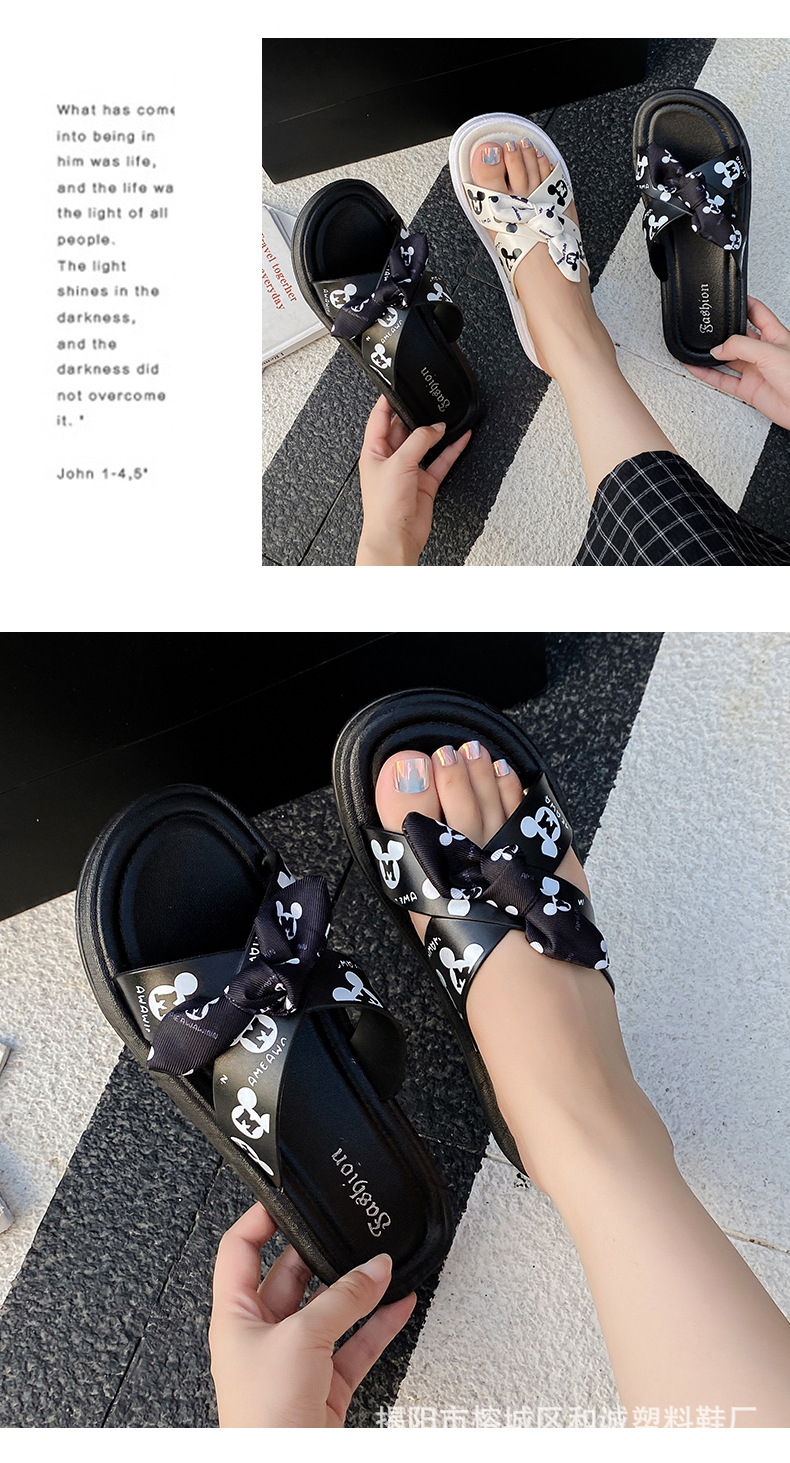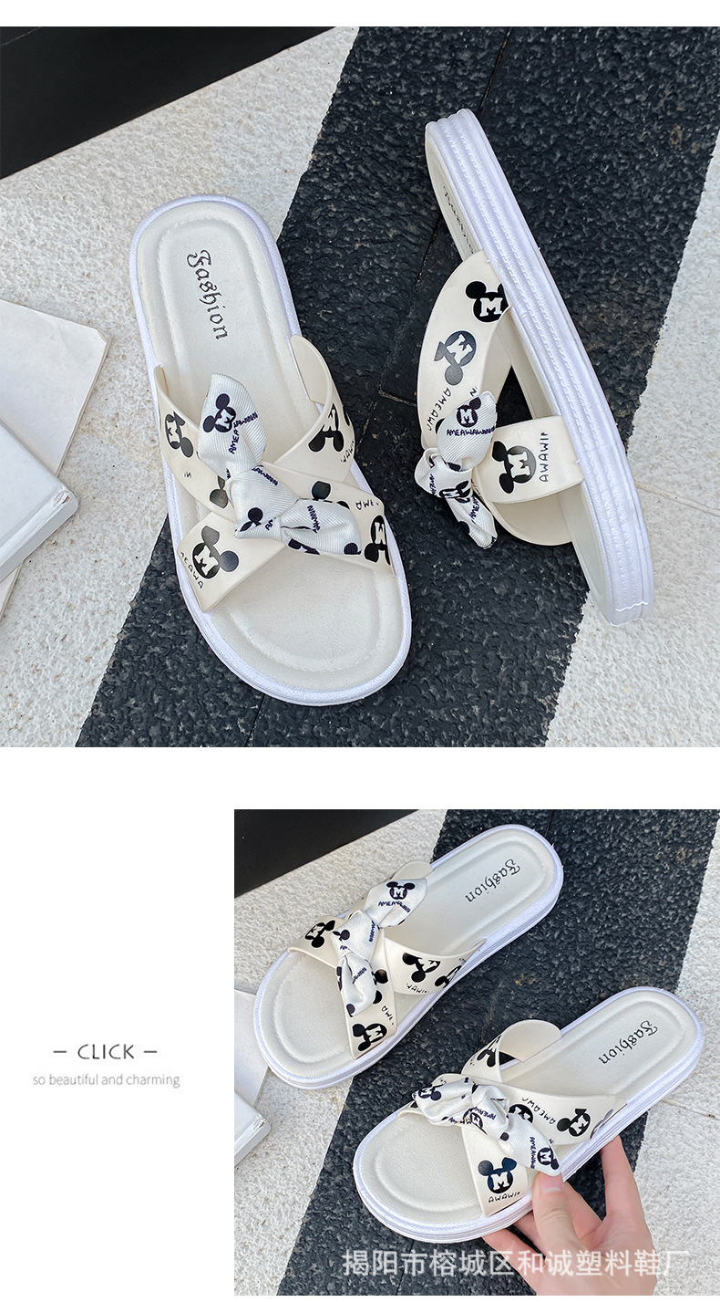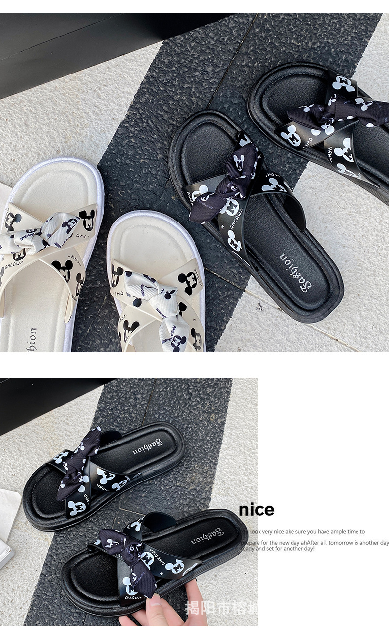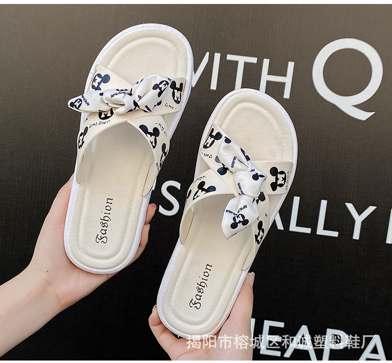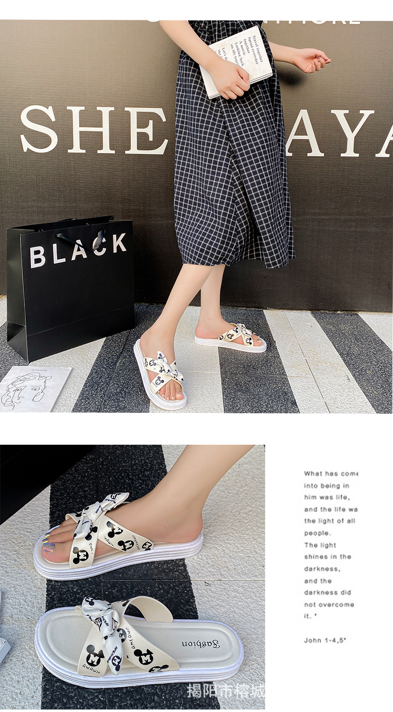 蝴蝶結拖鞋女新款夏季百搭女士平底防滑卡通外穿女學生時裝涼拖鞋
