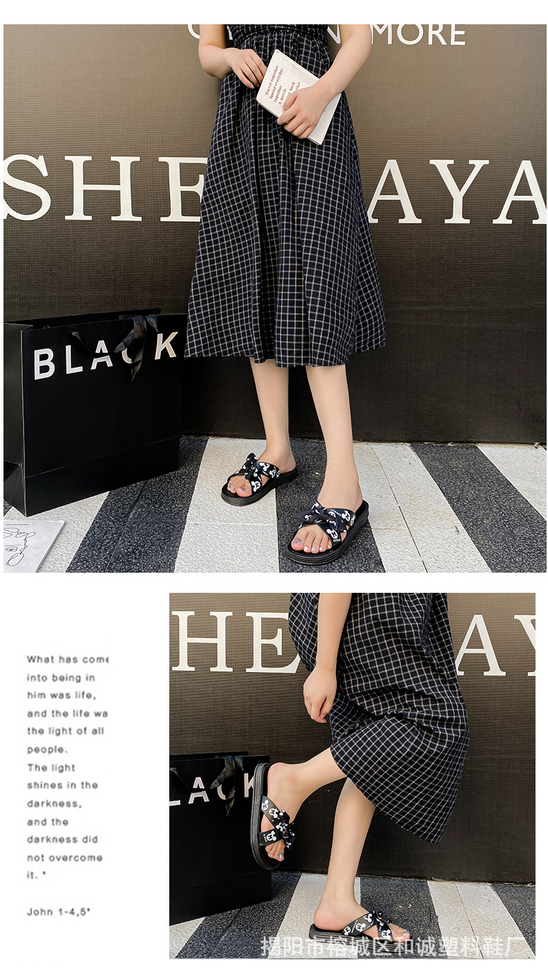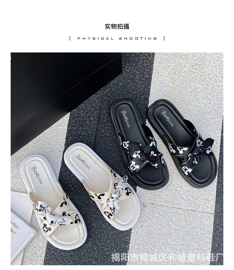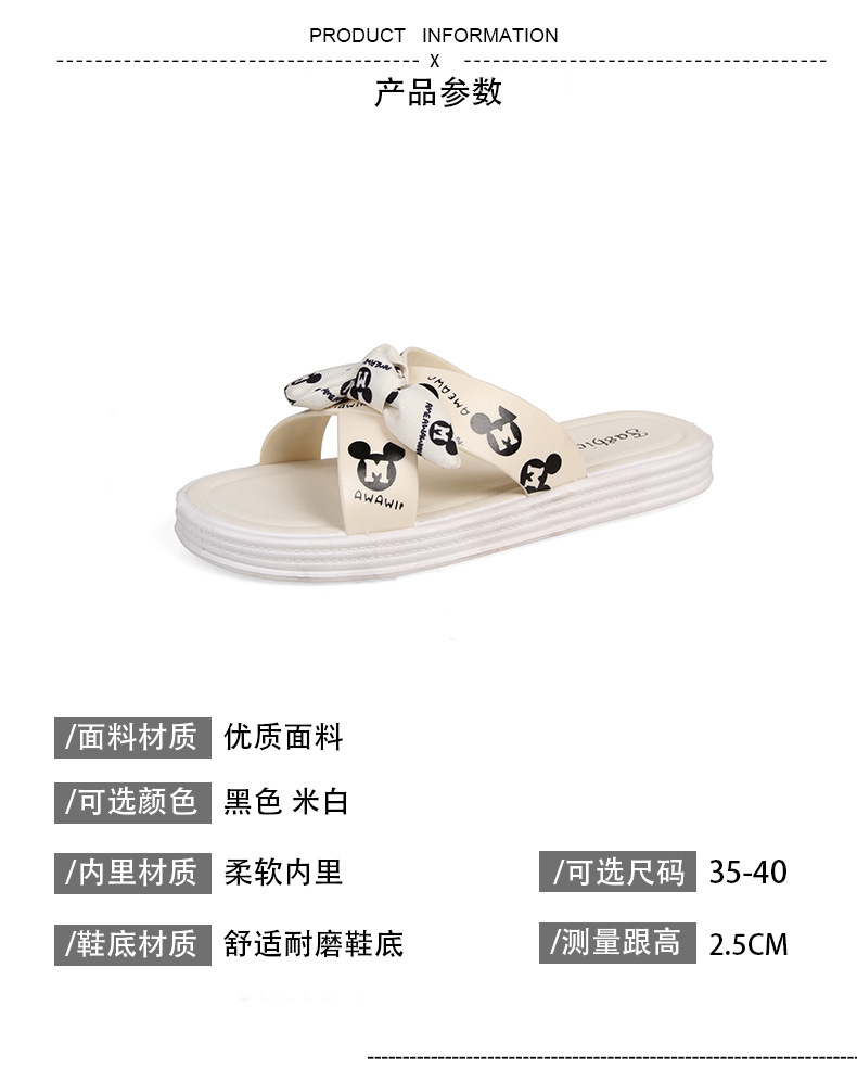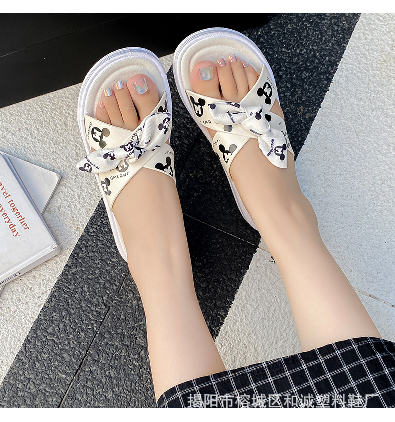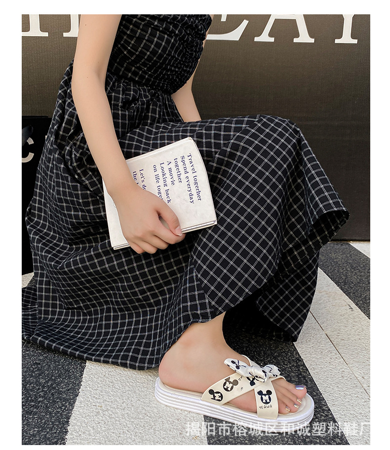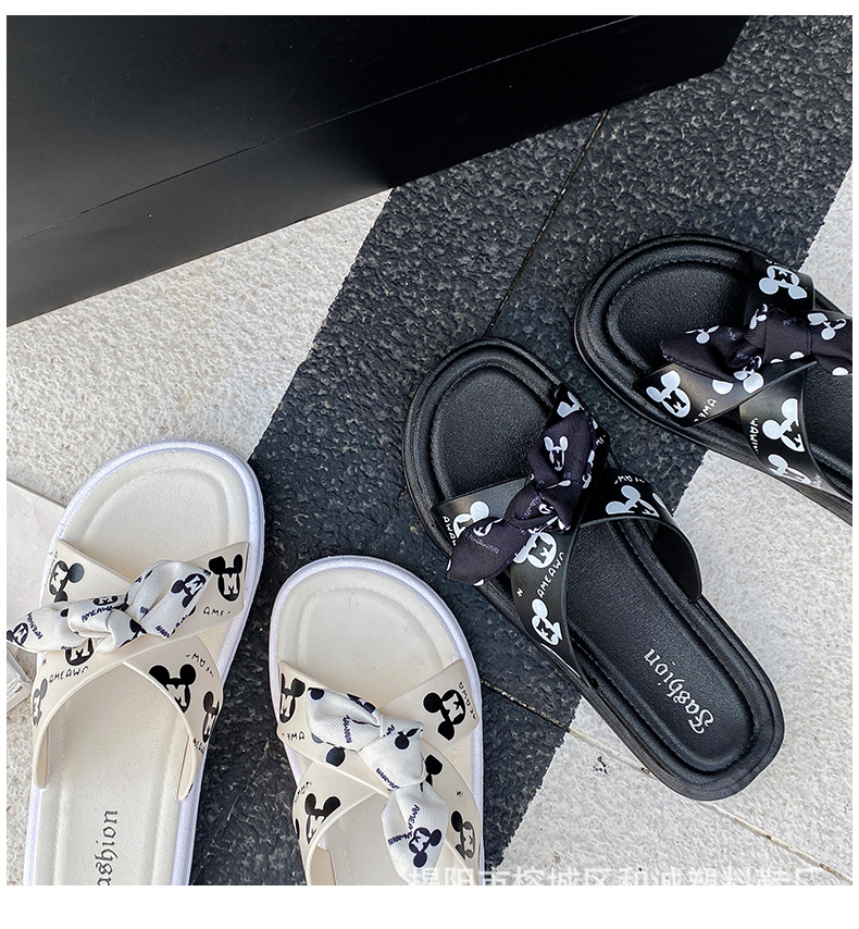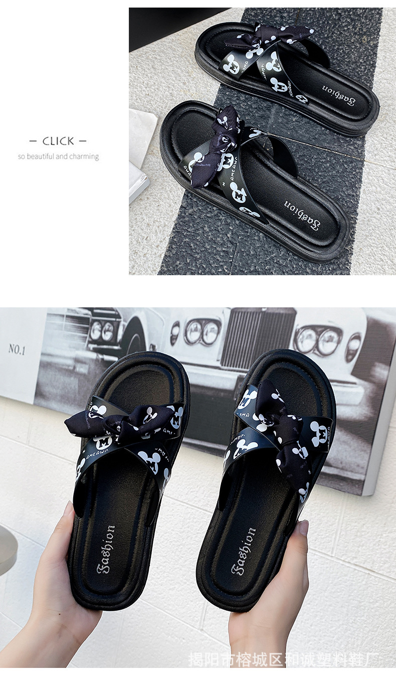 蝴蝶結拖鞋女新款夏季百搭女士平底防滑卡通外穿女學生時裝涼拖鞋