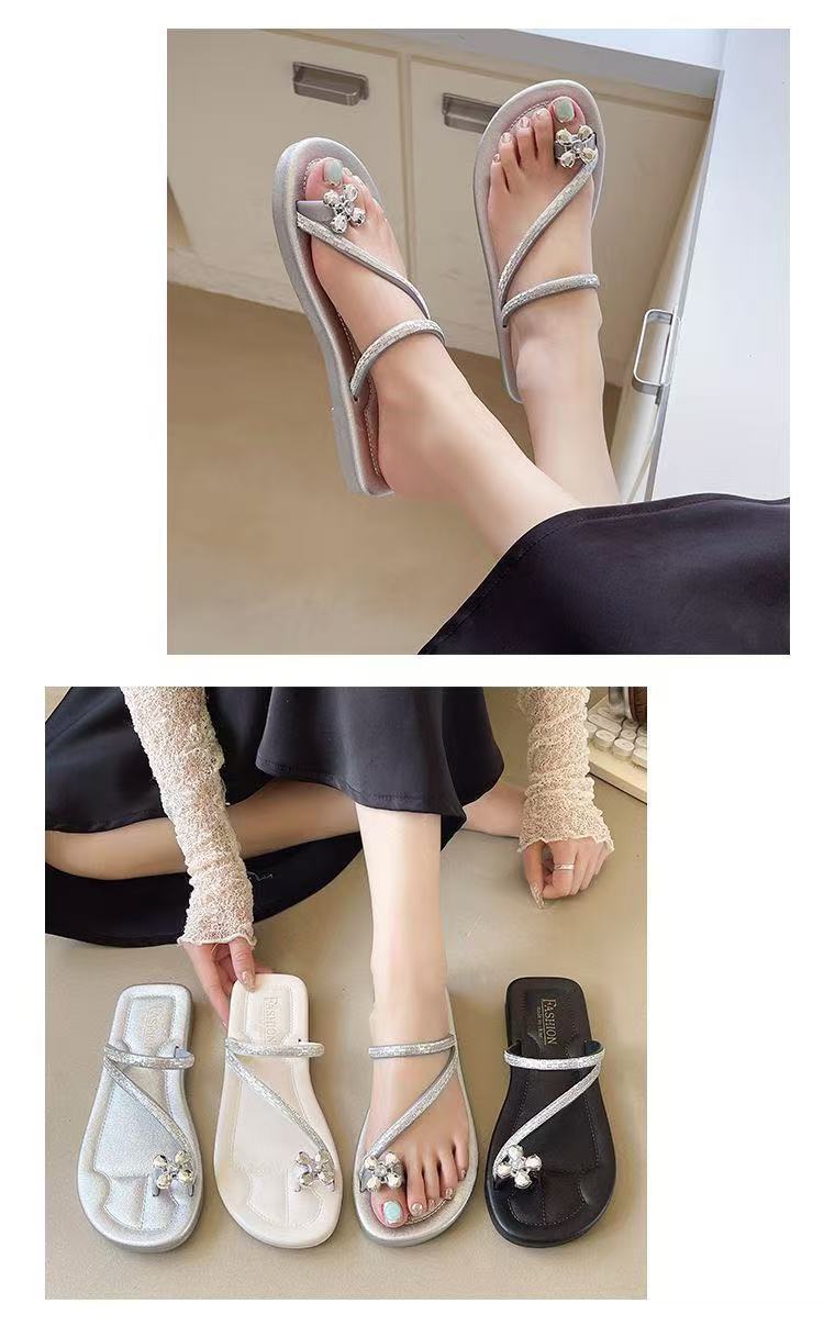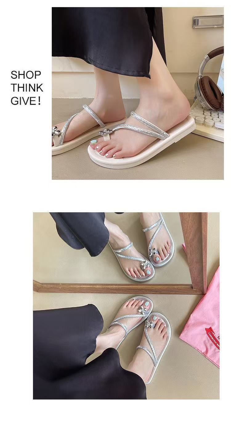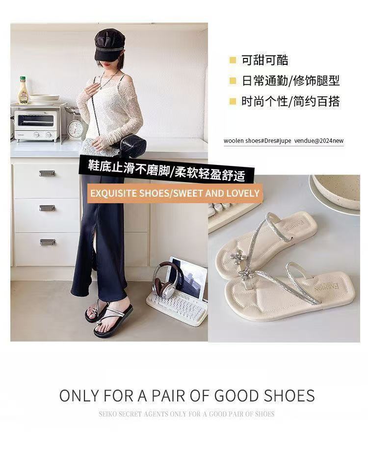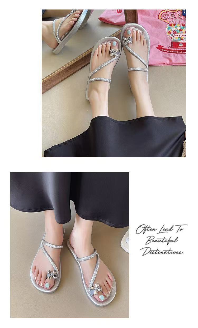 2025新款夏季外穿平底網紅羅馬水鑽人字夾趾拖鞋高顔值涼拖鞋女