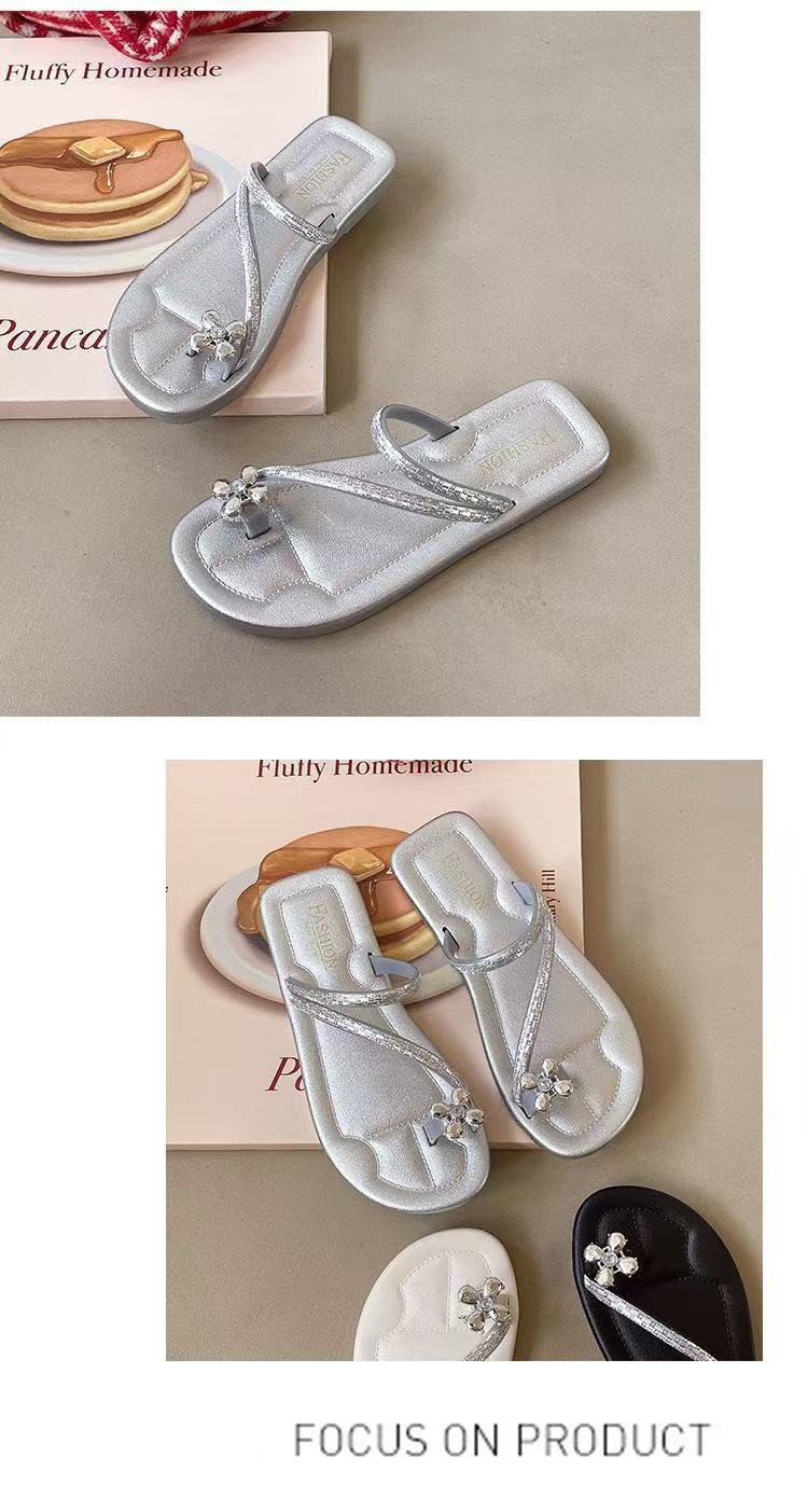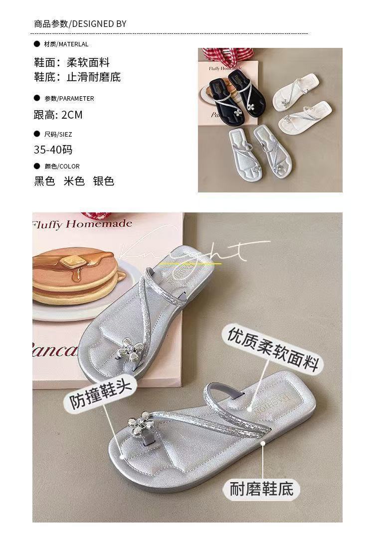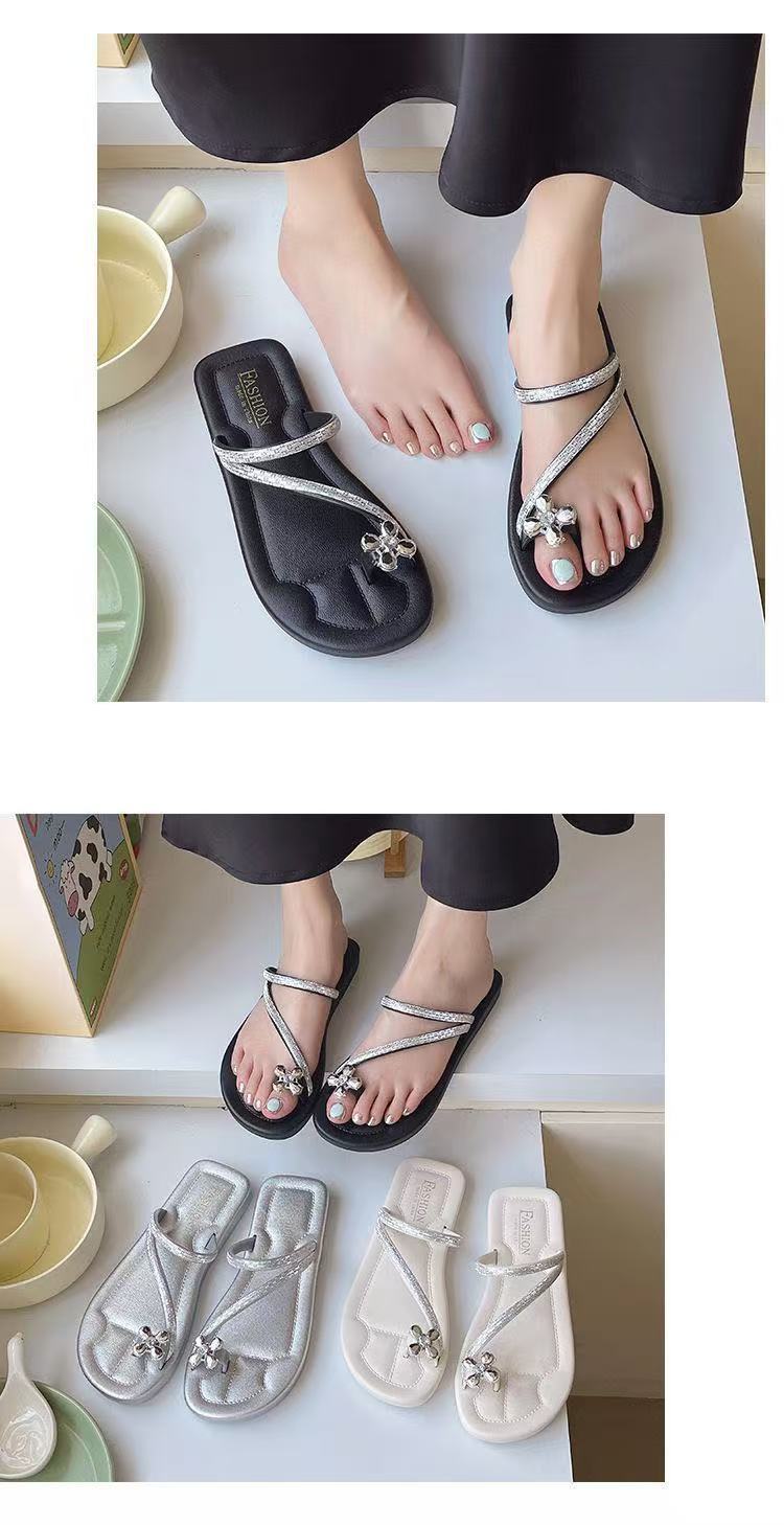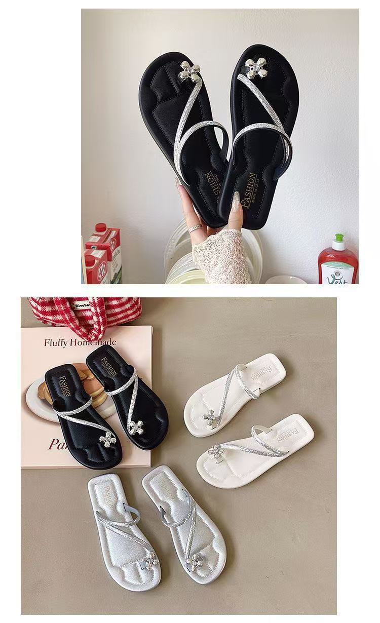 2025新款夏季外穿平底網紅羅馬水鑽人字夾趾拖鞋高顔值涼拖鞋女