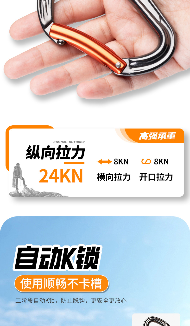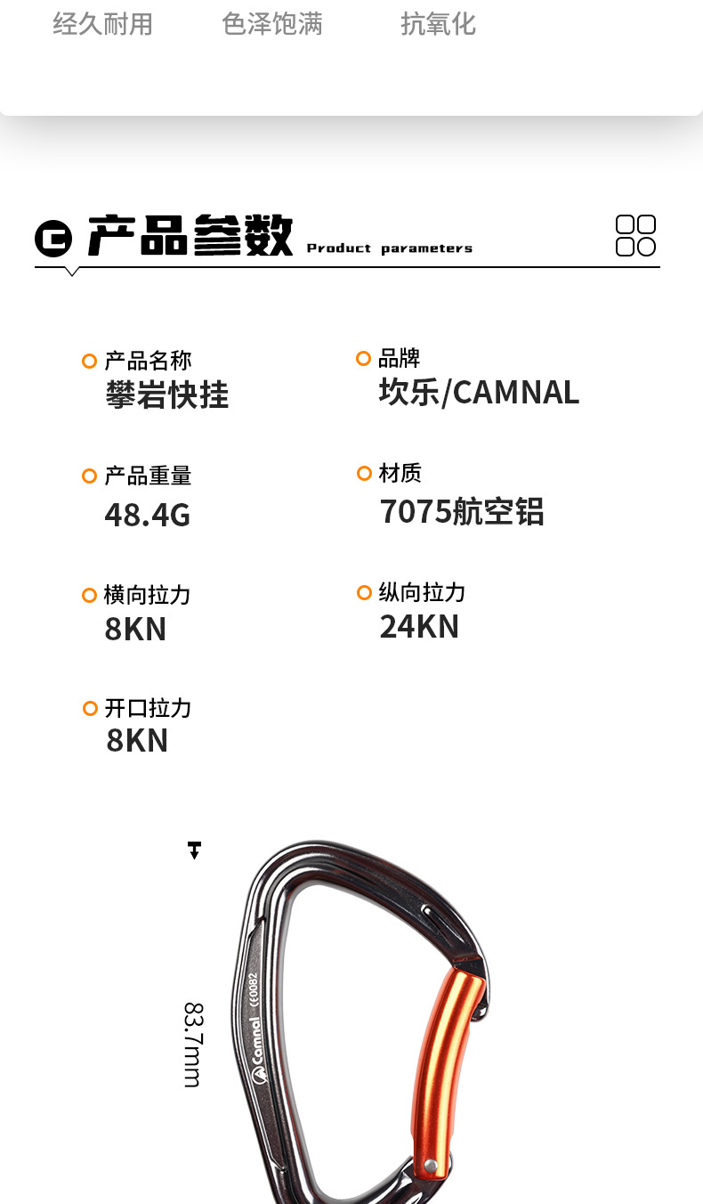 坎樂戶外登山快掛樂系攀巖裝備保護釦主鎖安全快掛組快掛釦直門款
