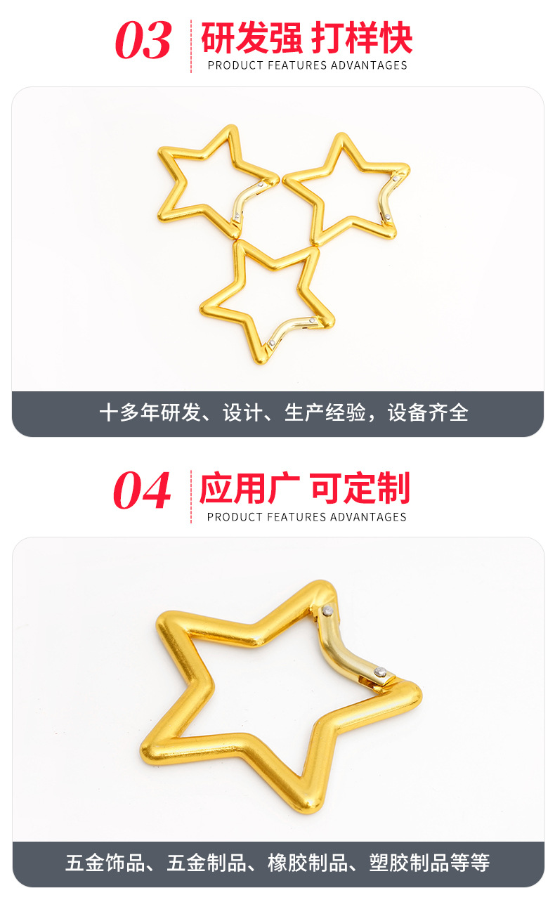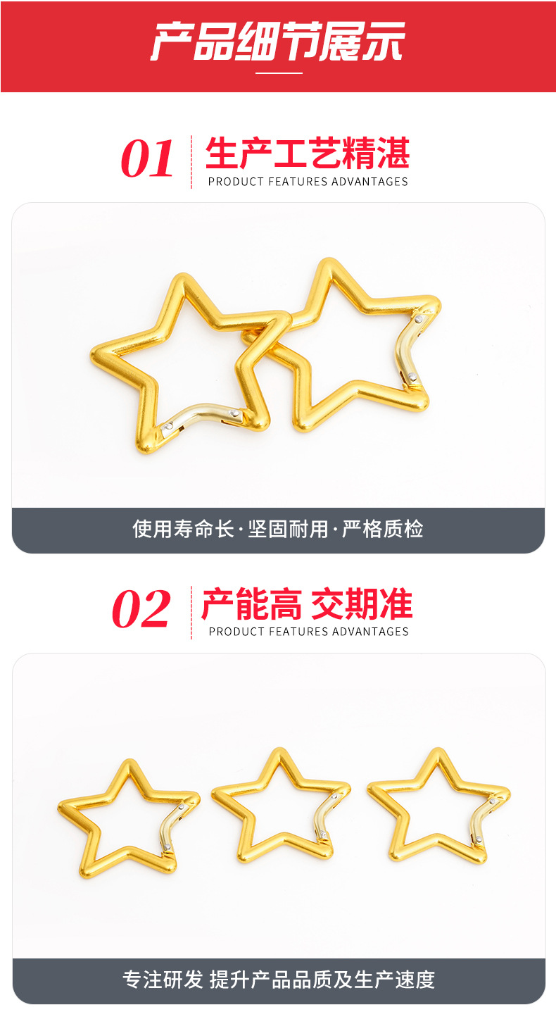 金色五角星登山釦鋁合金戶外星形帶鎖快掛鉤釦多功能異形箱包釦