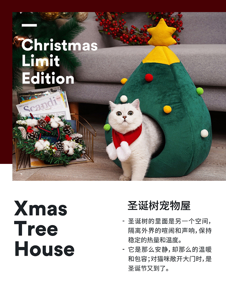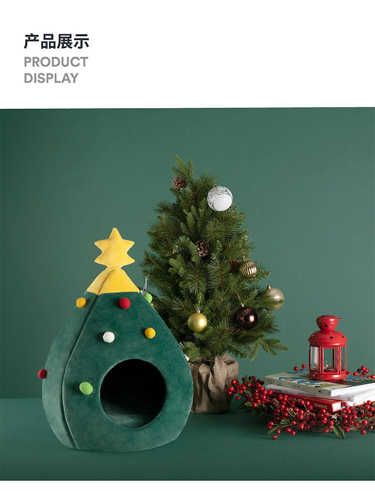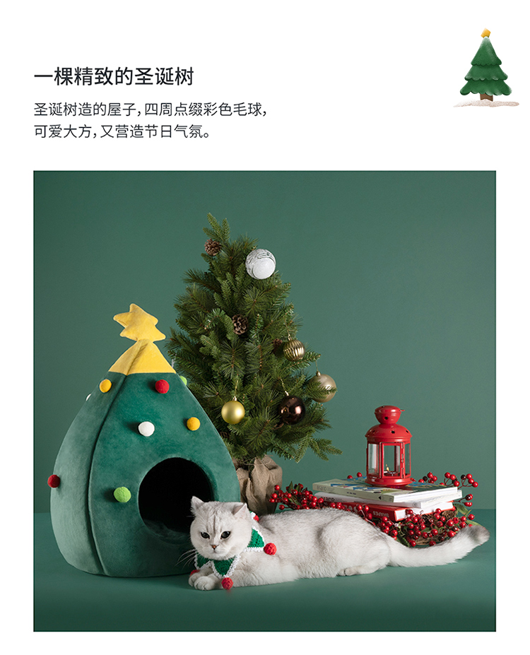 貓窩聖誕樹封閉式貓屋別墅小型犬狗狗窩秋冬季保暖可拆洗聖誕節窩