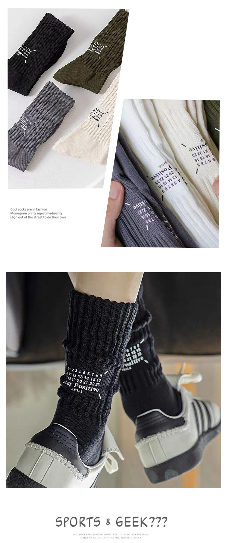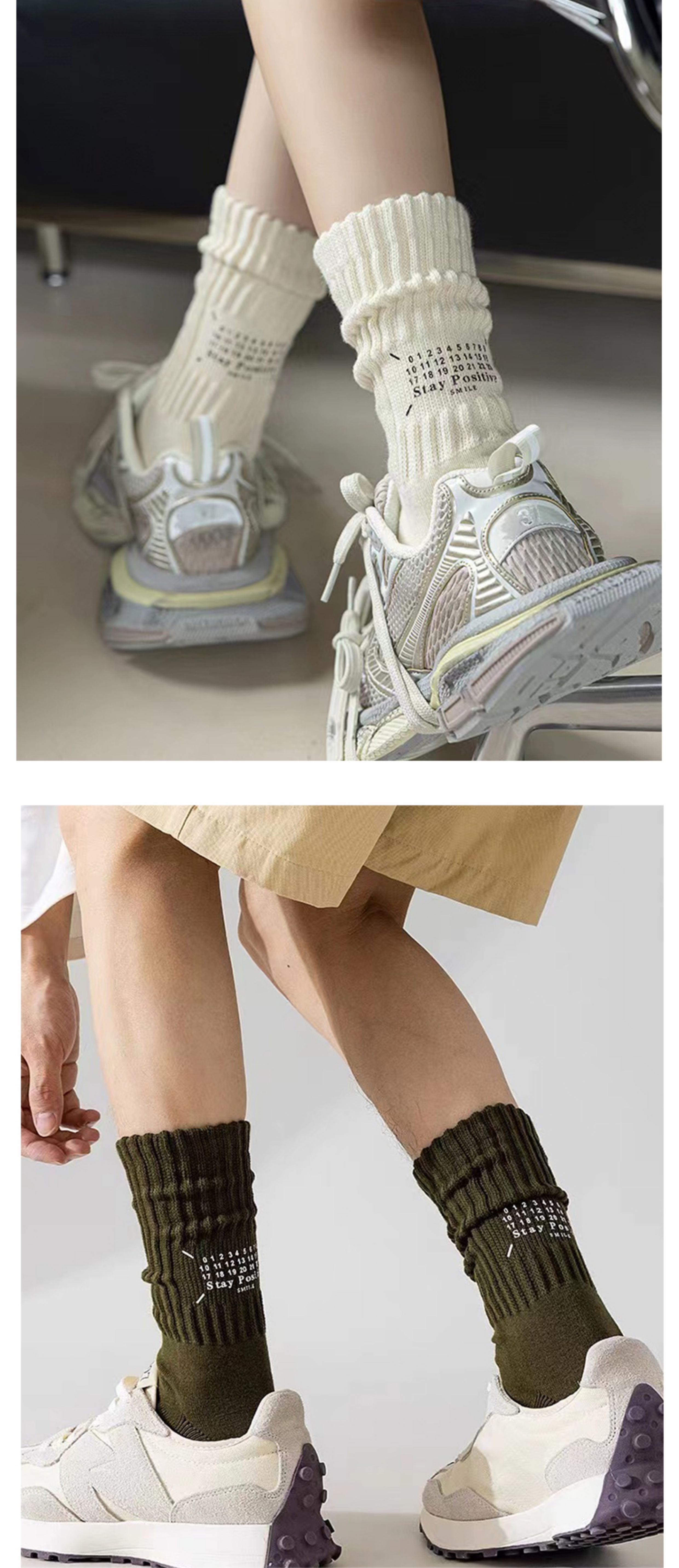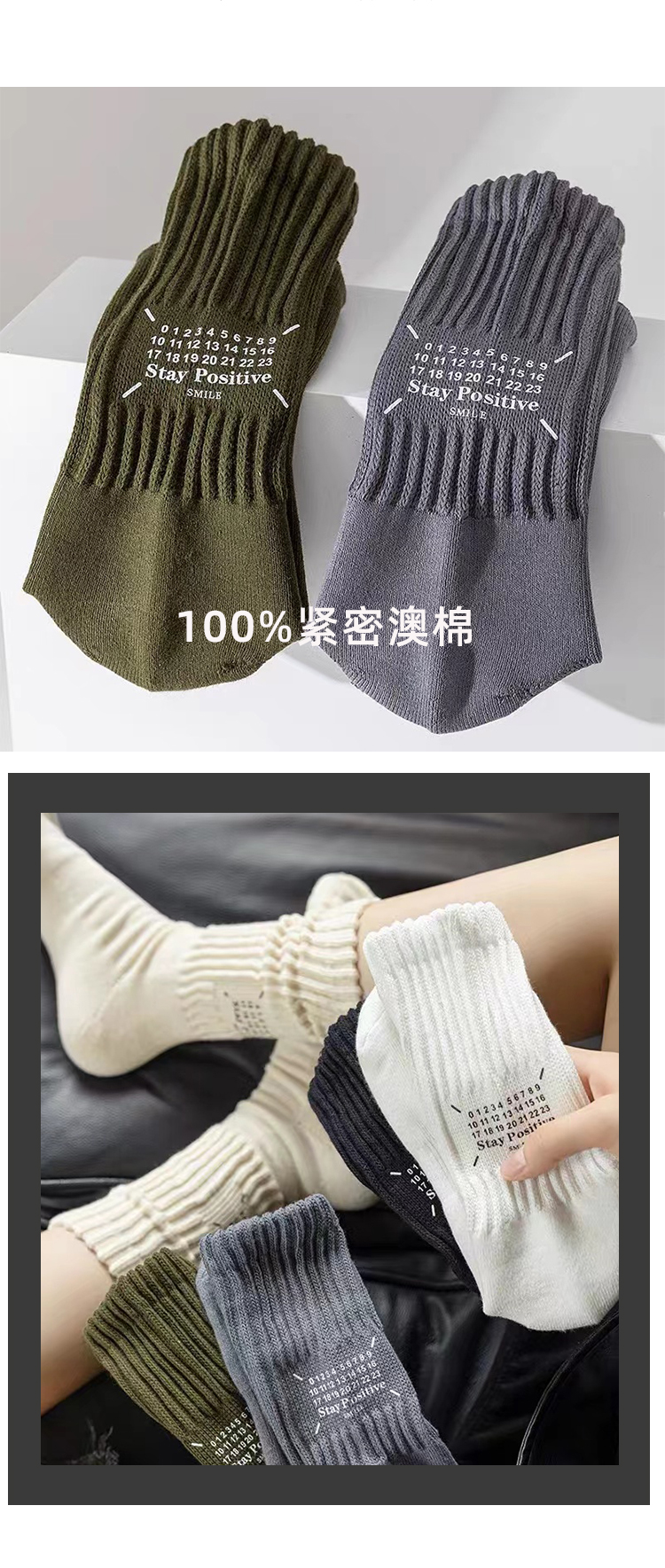 日系粗線襪子男女中長筒復古工裝純棉秋冬季字母ins潮情侶堆堆襪