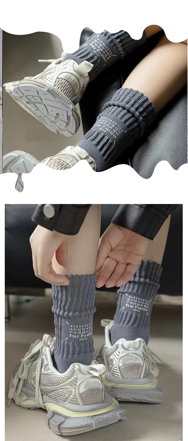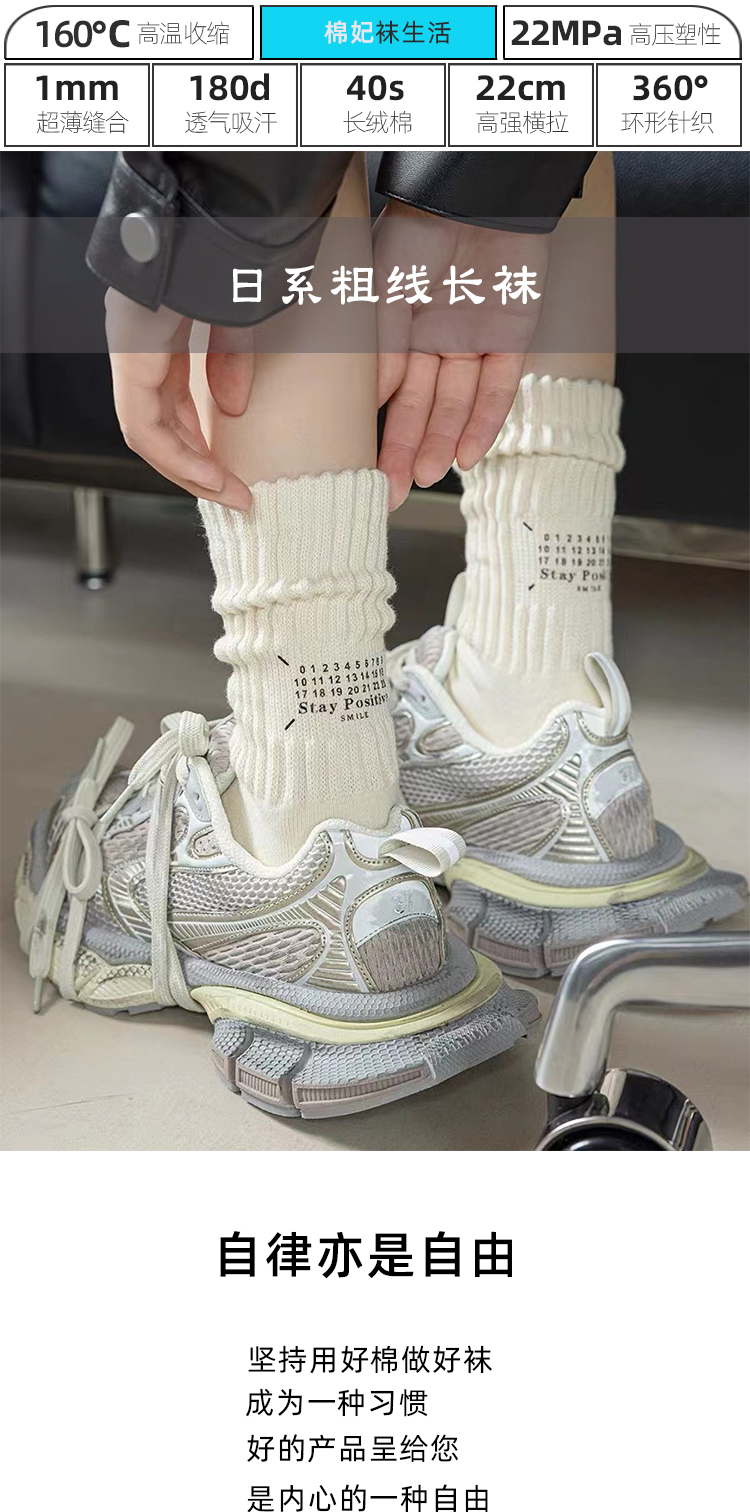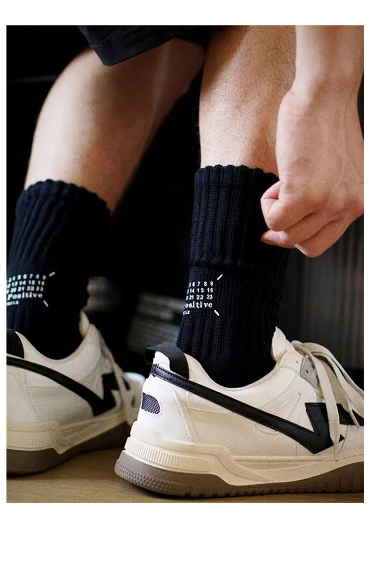 日系粗線襪子男女中長筒復古工裝純棉秋冬季字母ins潮情侶堆堆襪