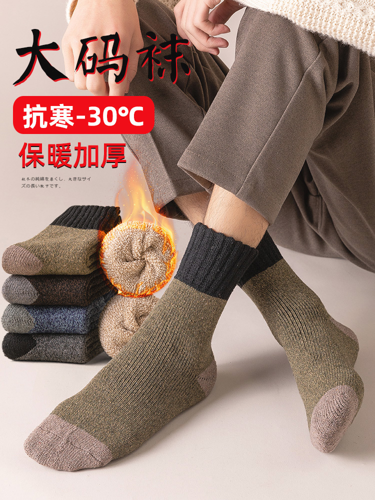 大碼襪子男45碼冬季中筒襪保暖加絨加厚46大腳48加肥加大號長筒襪