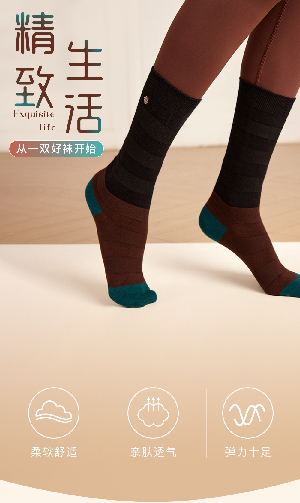 凡聖瑜珈服時尚長筒舒適棉感毛毛蟲彈力棉襪子2雙裝FW039