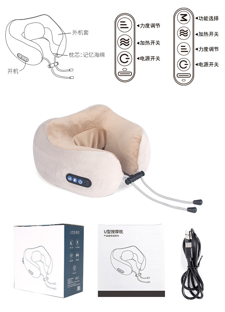 u型按摩枕頸椎按摩器頸腰椎可攜式形枕電動揉捏護頸儀頸部頭