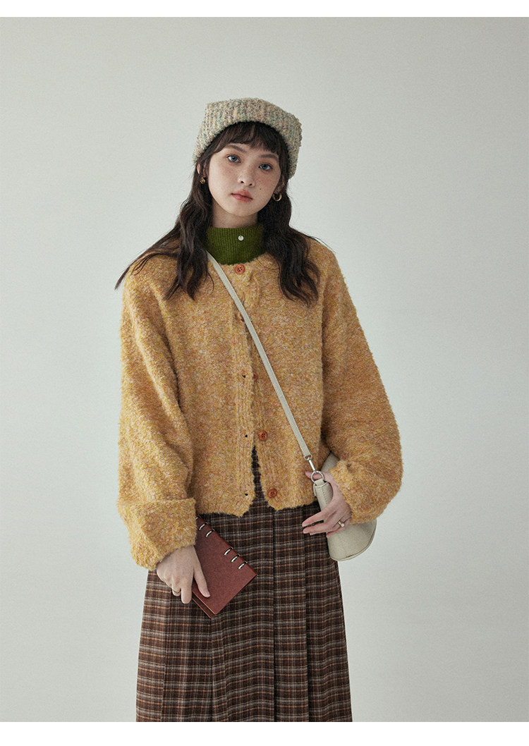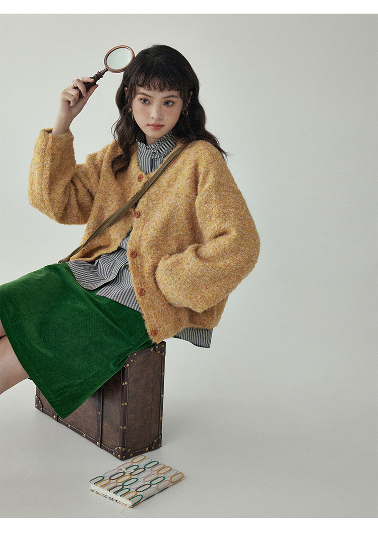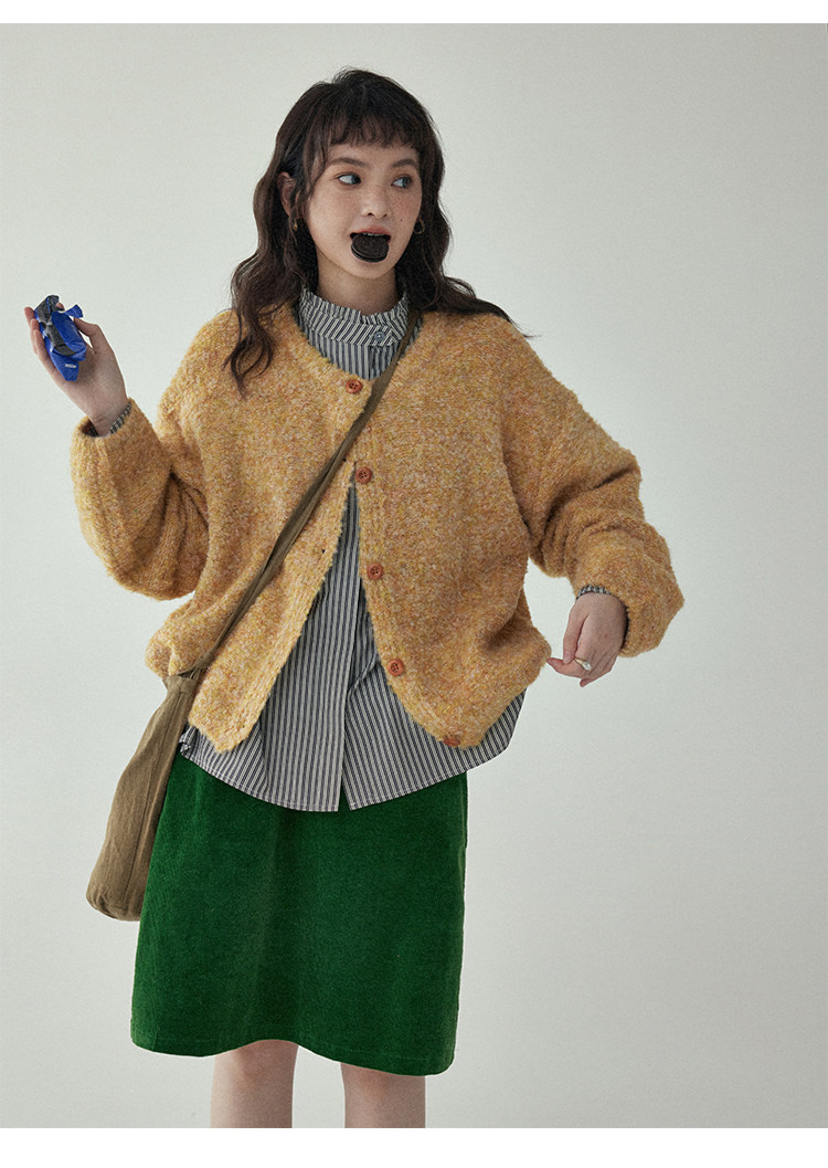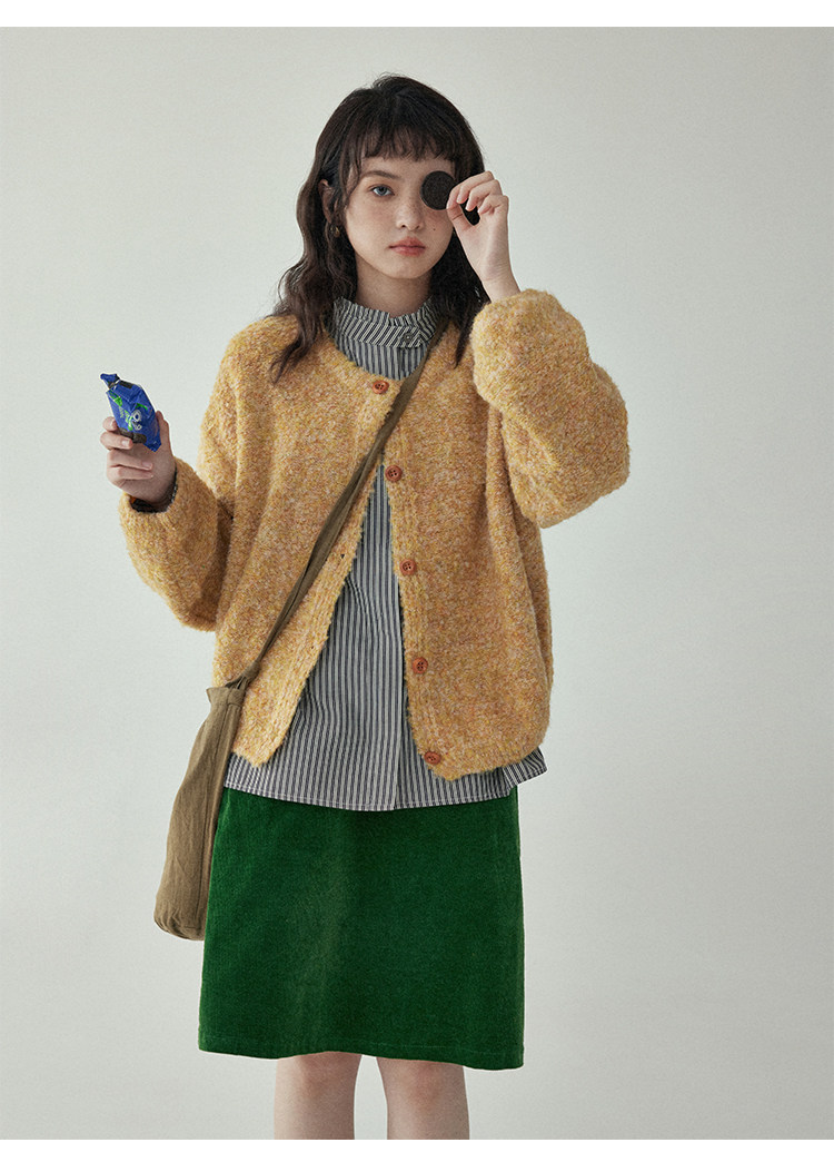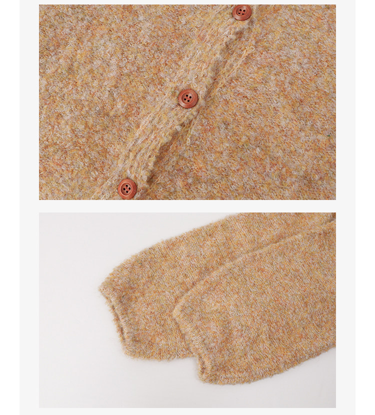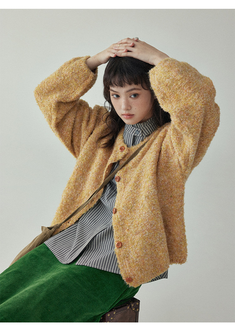 「北島AMUU」黃色短款花雜圈圈針織開衫女春季羊毛毛衣外套上衣