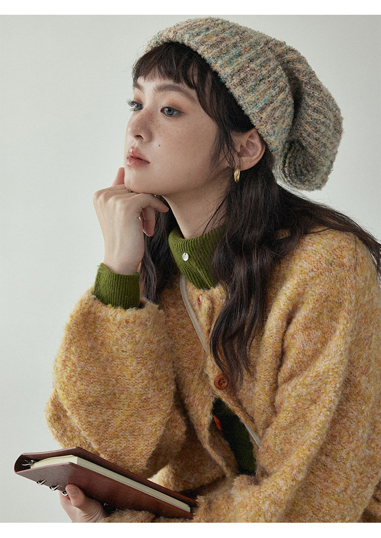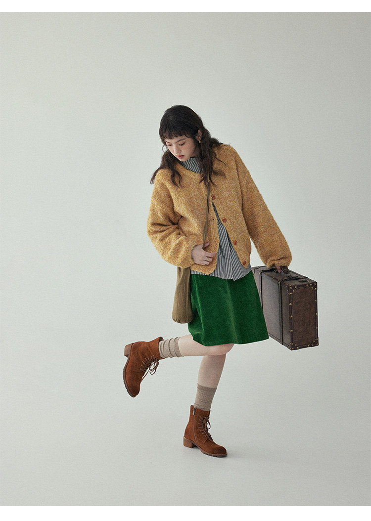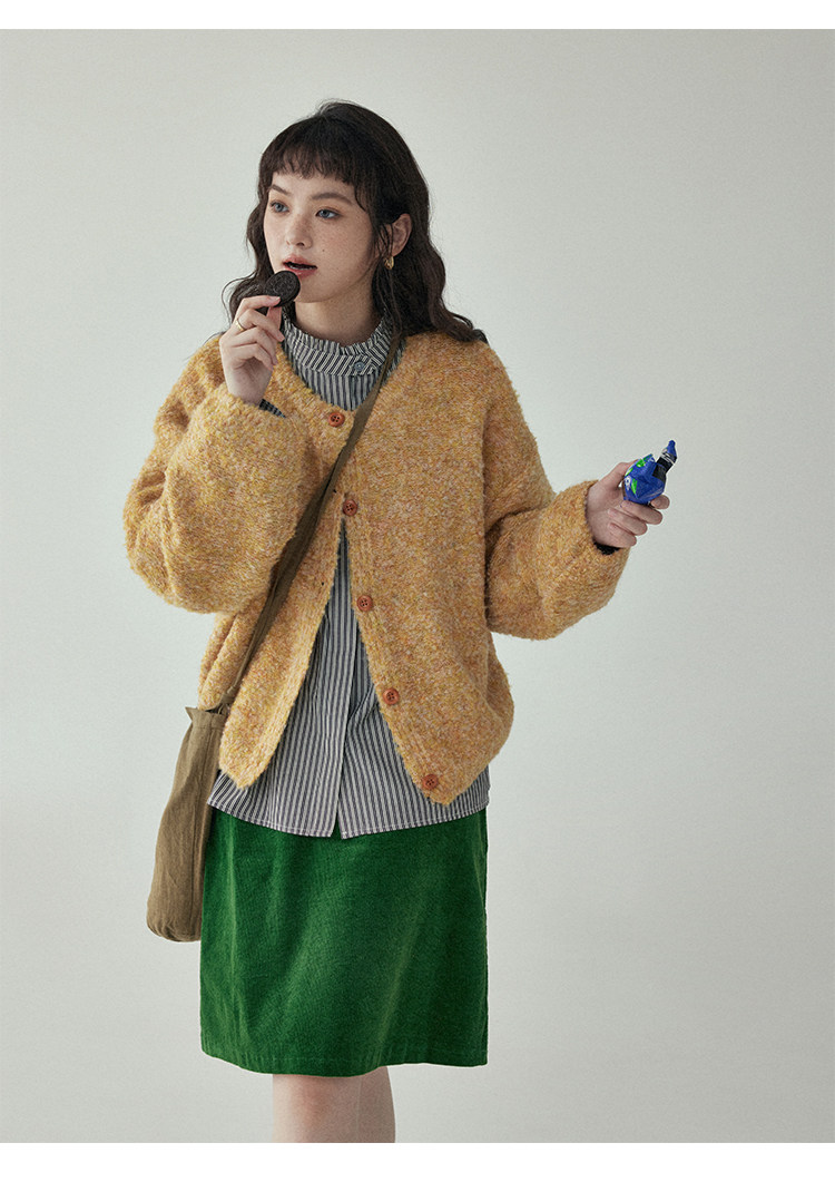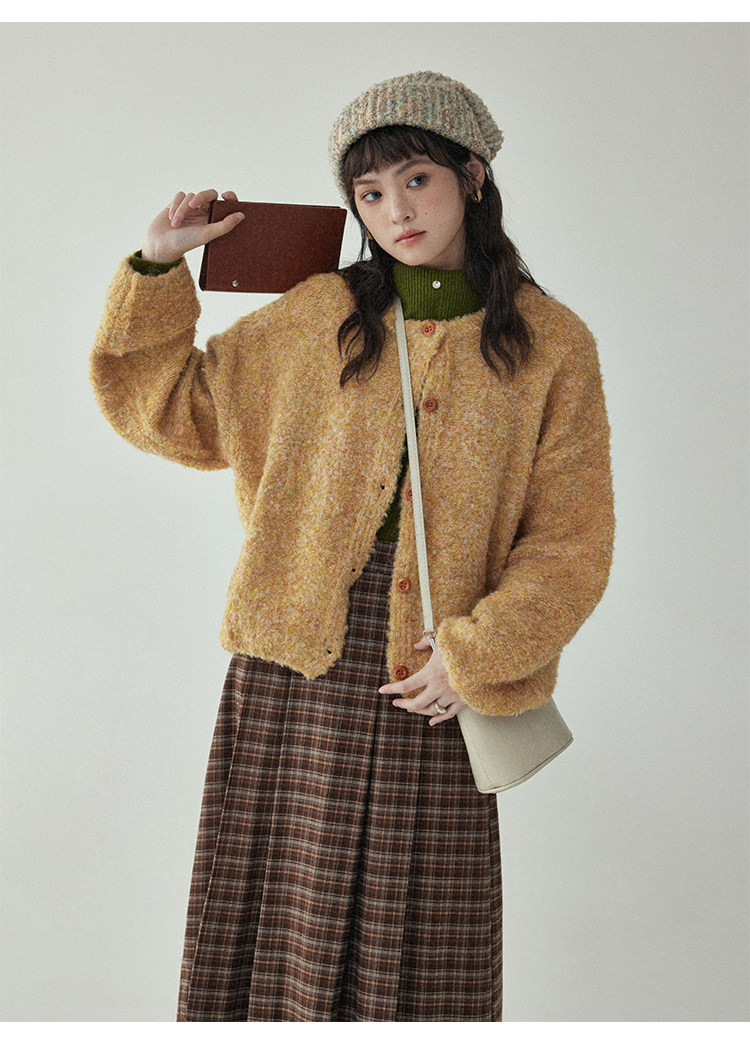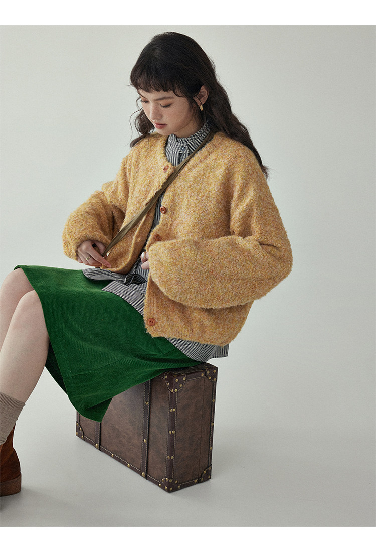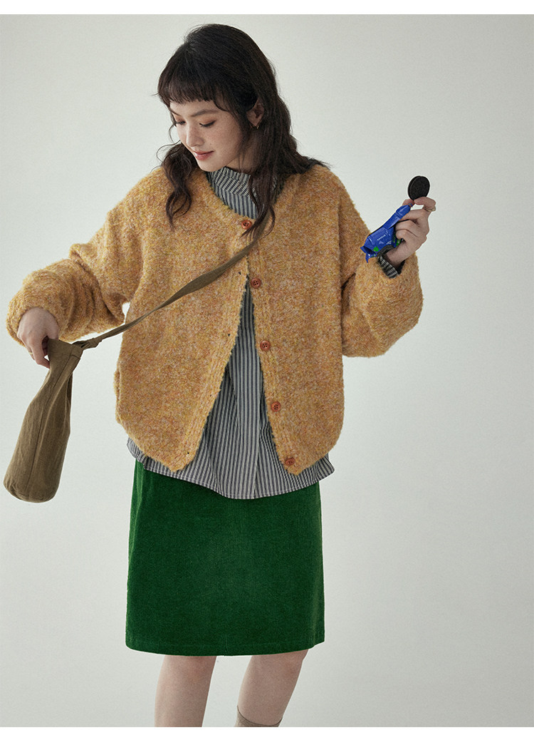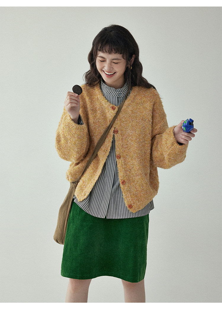 「北島AMUU」黃色短款花雜圈圈針織開衫女春季羊毛毛衣外套上衣