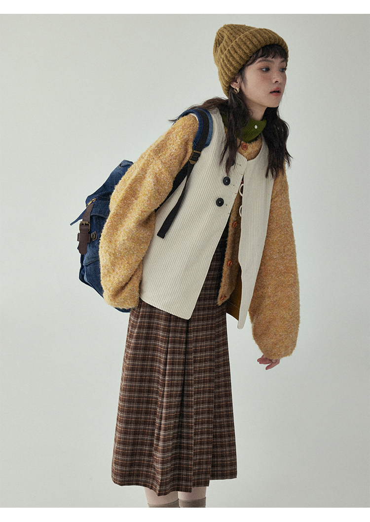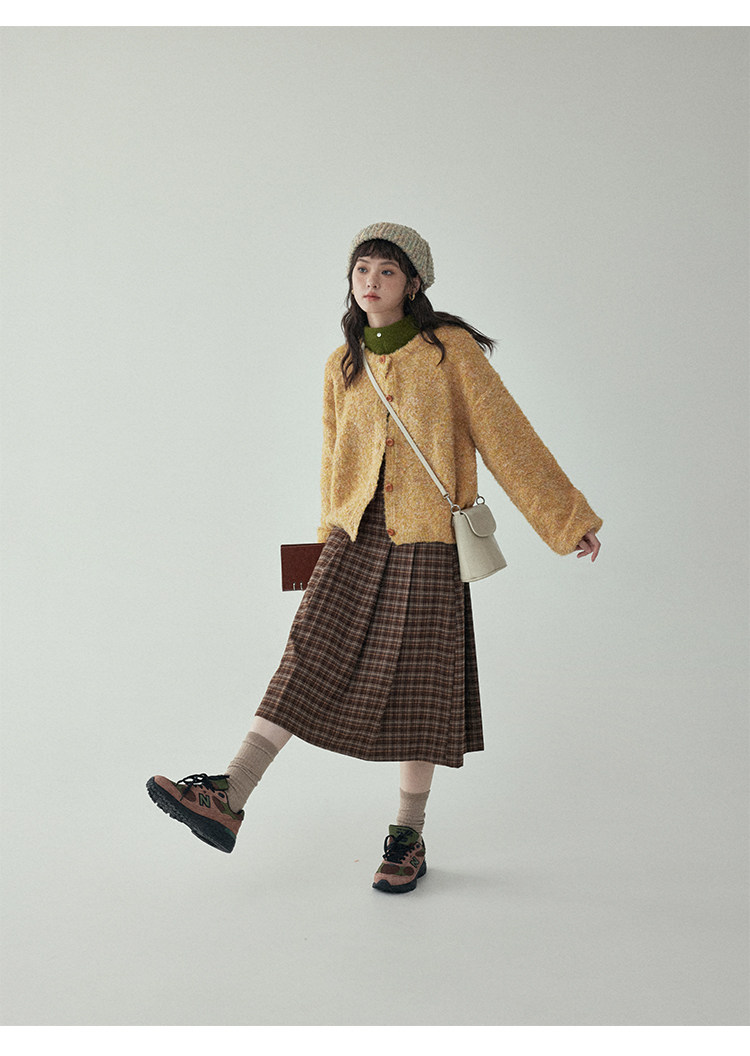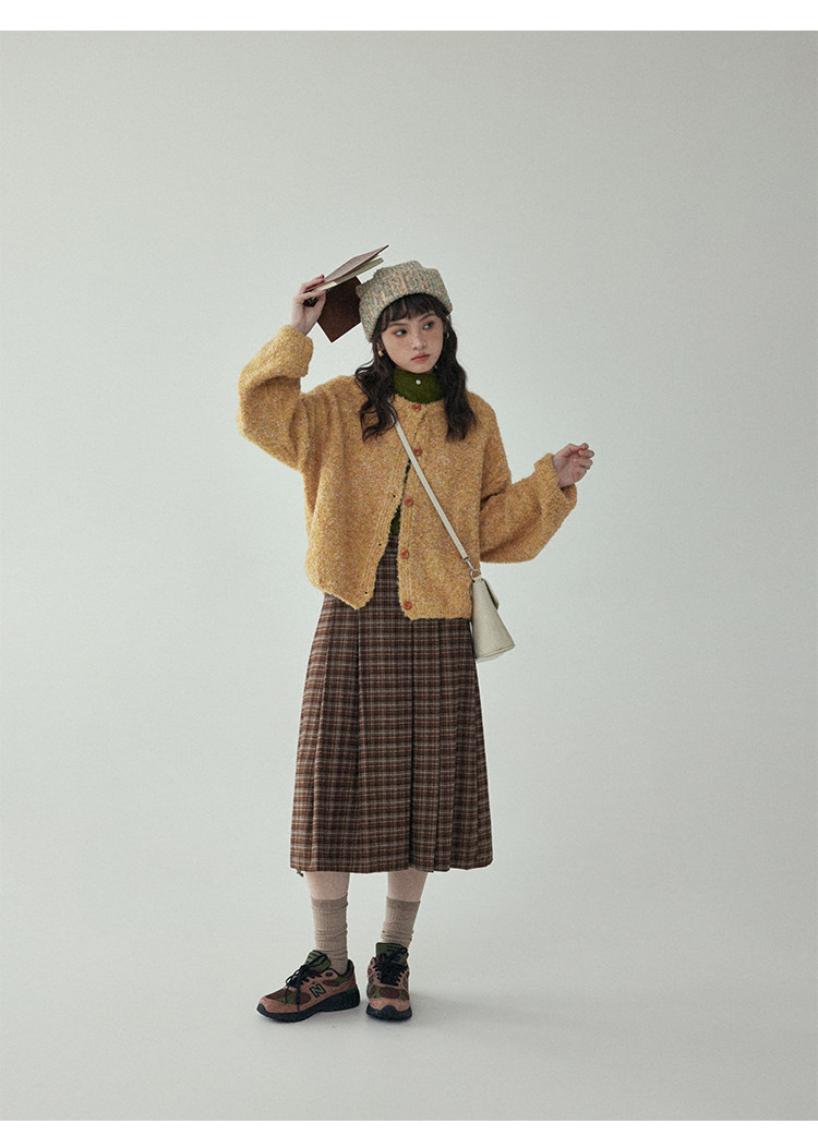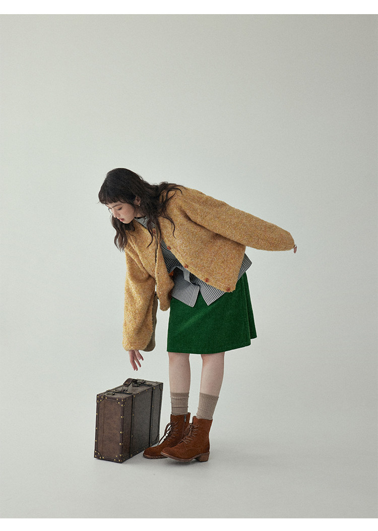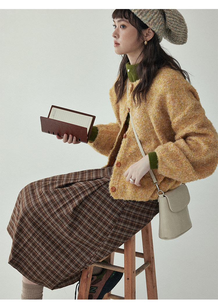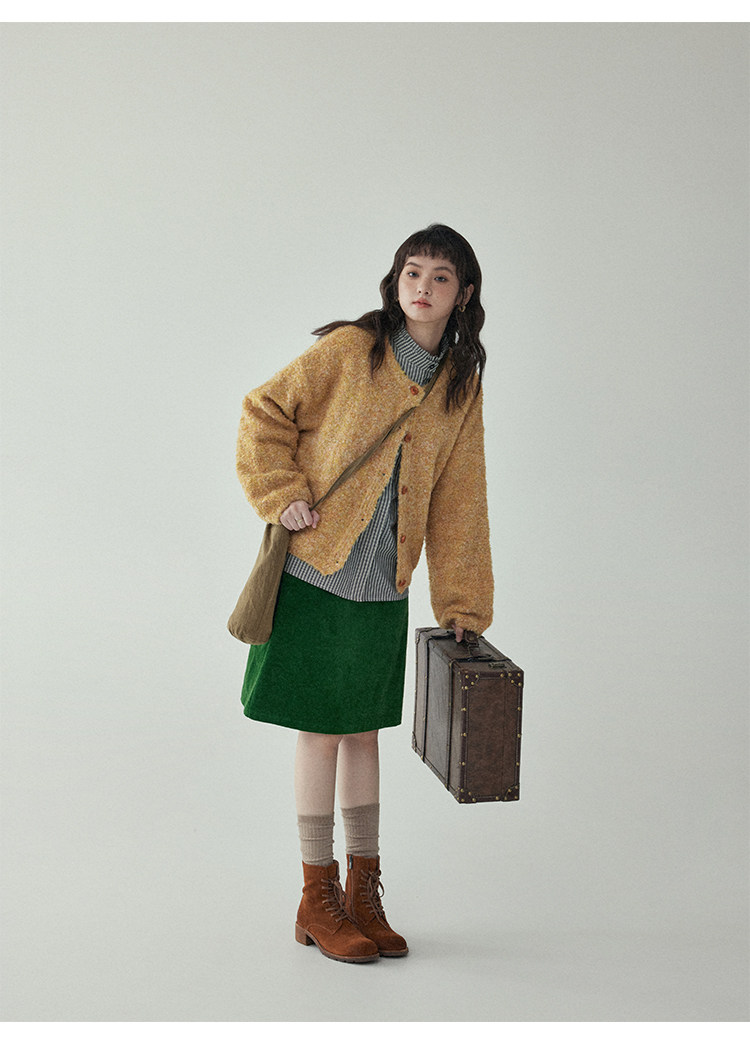 「北島AMUU」黃色短款花雜圈圈針織開衫女春季羊毛毛衣外套上衣
