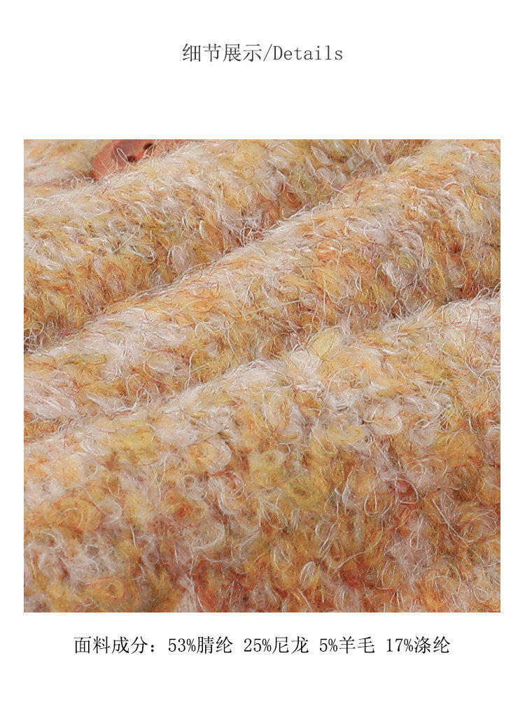 | 材質成分 | 聚丙烯腈纖維(腈綸)53% 聚對苯二甲酸乙二酯(滌綸)17% 羊毛5% 其他25% |