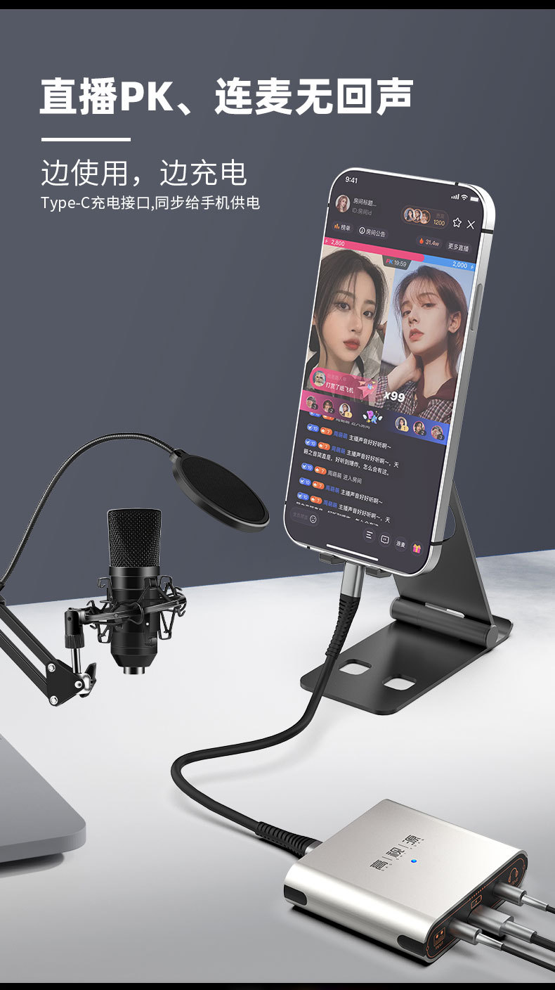 直播一號聲卡調音台內錄轉換器適用蘋果17安卓電腦連麥PK多接口