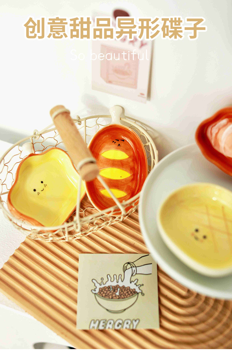 網紅創意麵包牛角包碟子居家陶瓷調料碟蘸料碟可愛甜品盤異形蝶子