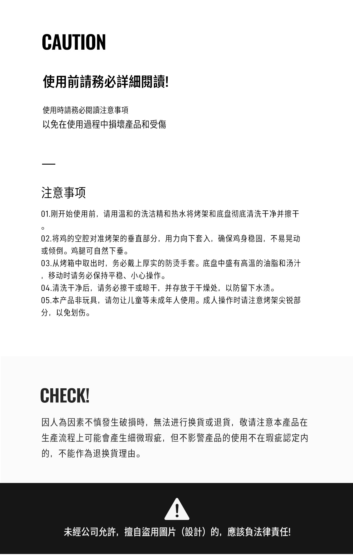 | 烤架/盤規格 | 不鏽鋼加大號烤雞架 |