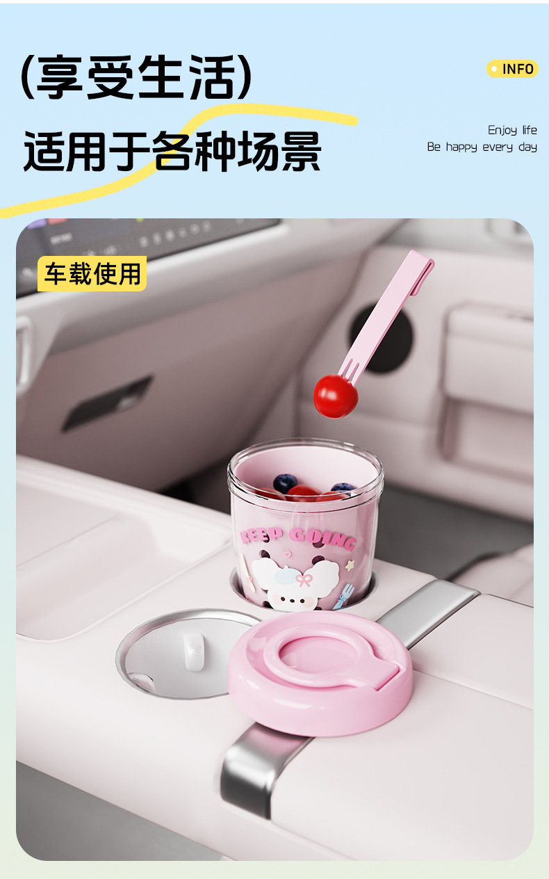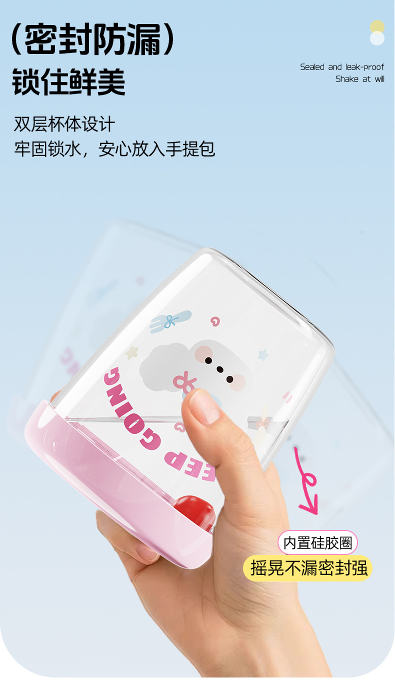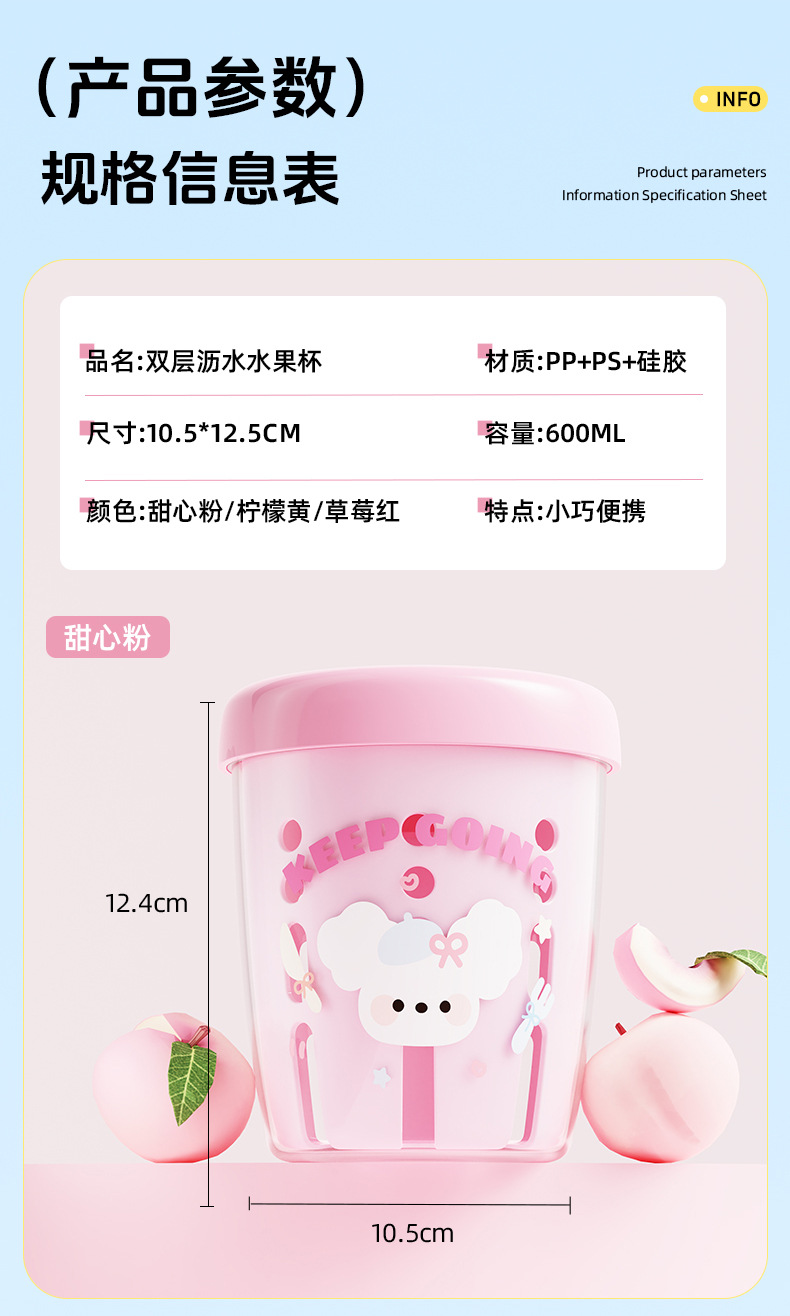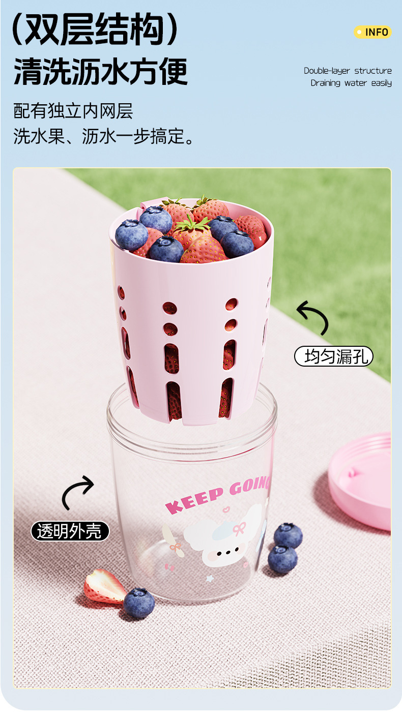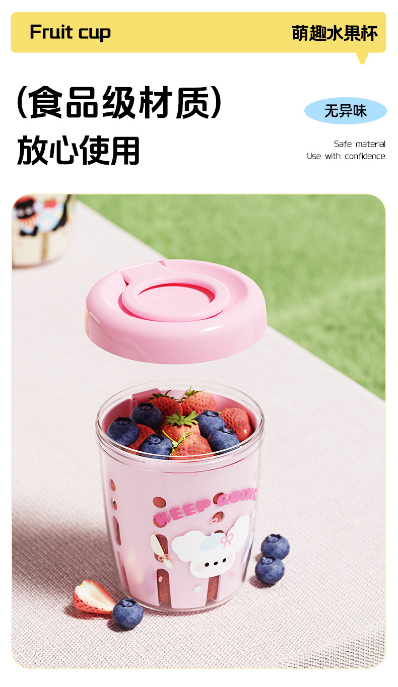 水果杯帶叉子可愛高顔值家用可瀝水外帶可攜式沙拉杯上班族早餐杯